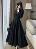 LBSFY -Vintage Elegant Solid Knitted Midi Dresses Women Korean Casual Long Sleeve Slim A-Line Black Birthday Party Robe Autumn Clothing