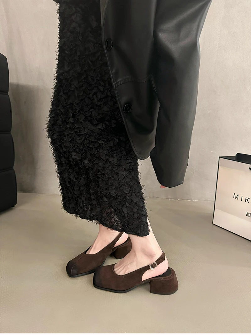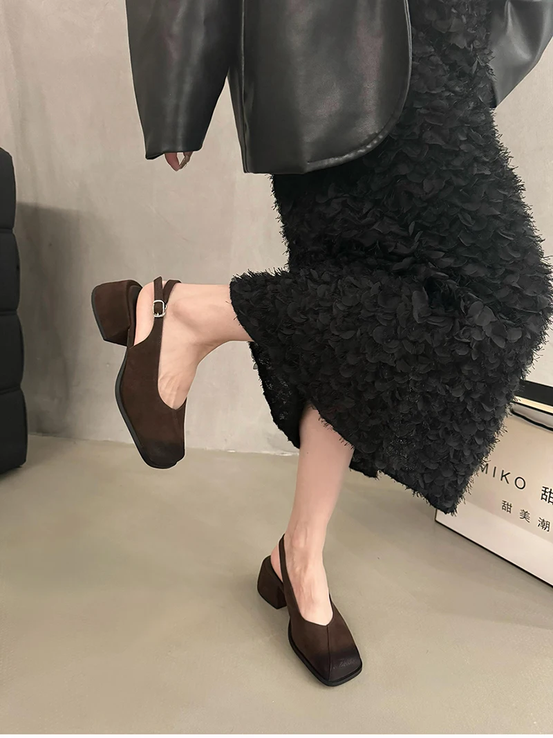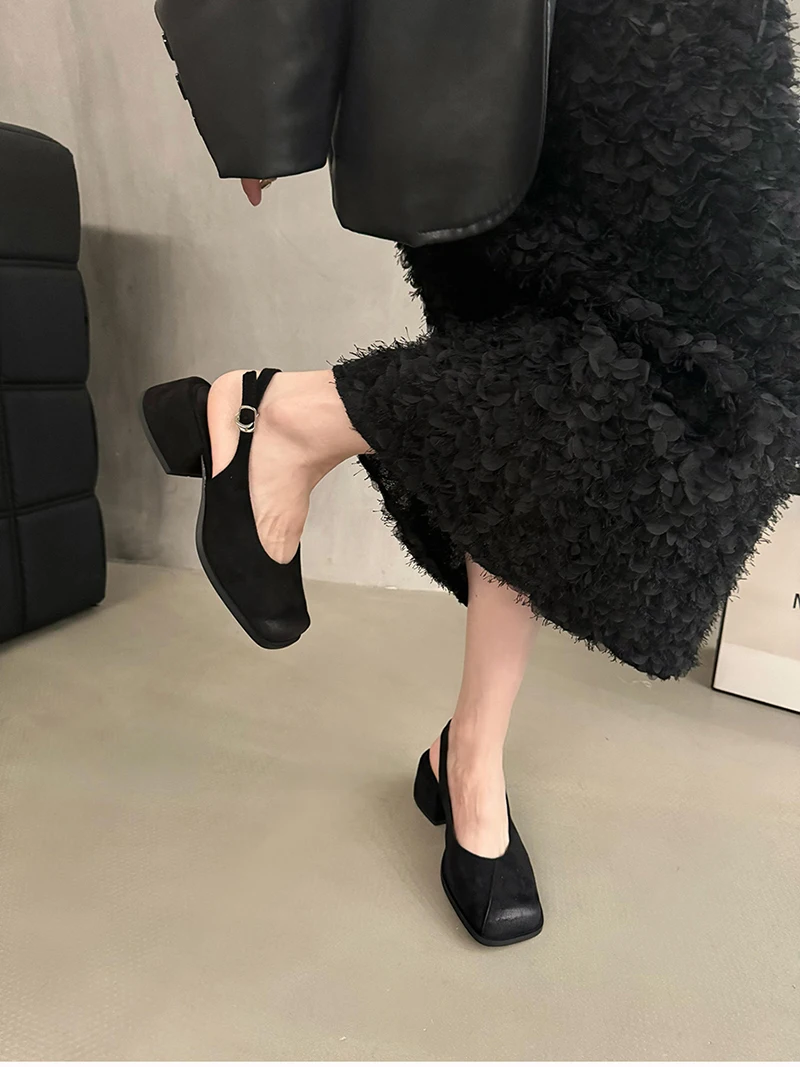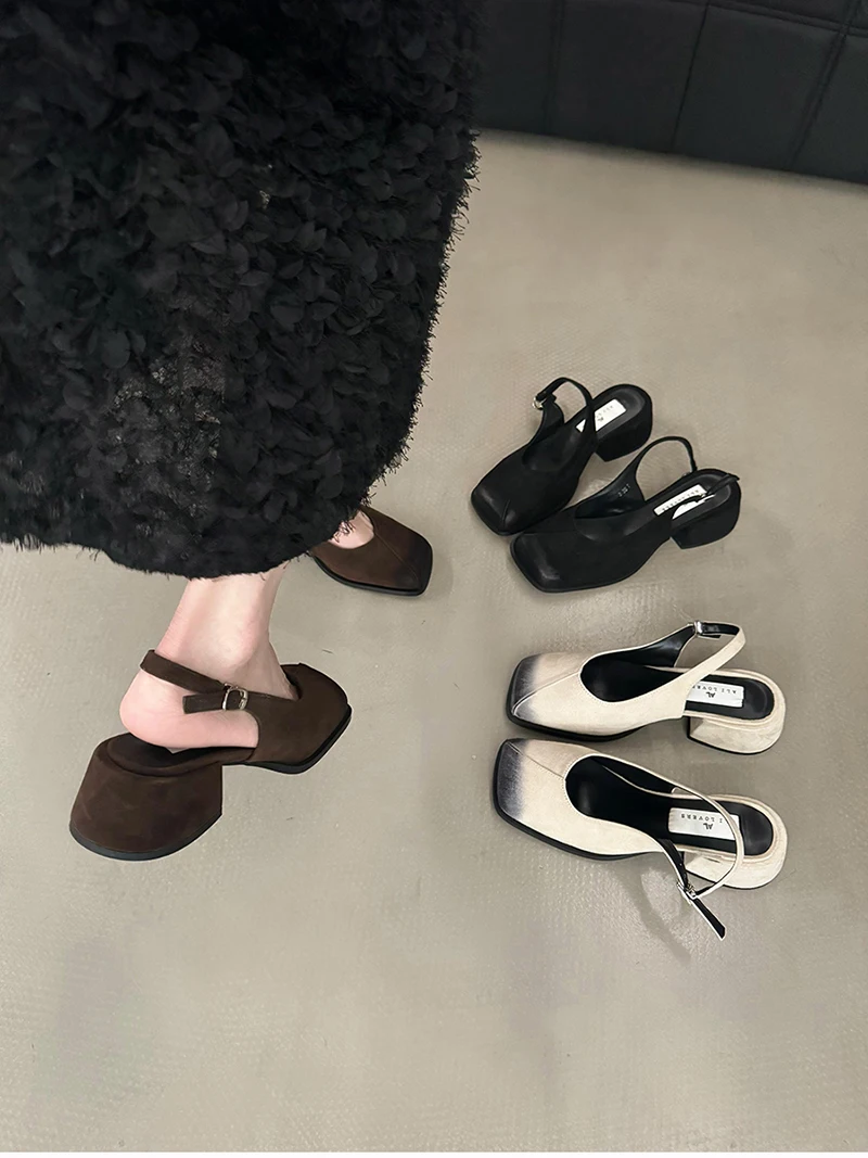 LBSFY - Vintage Women Mary Jane Shoes Fashion Elegant Shallow Singbacks Mules Shoes Ladies Casual Outdoor Thick Heel Sandalias