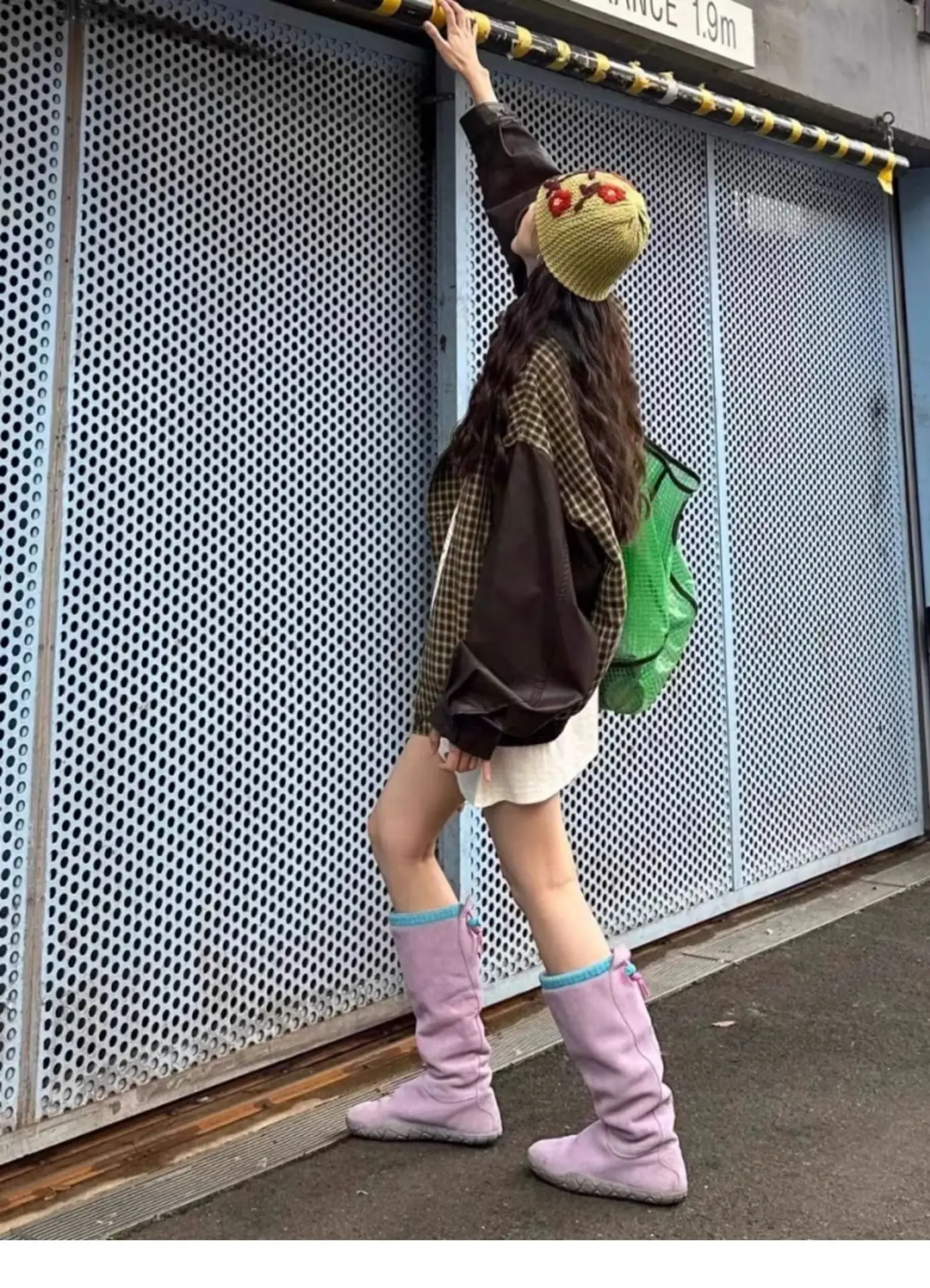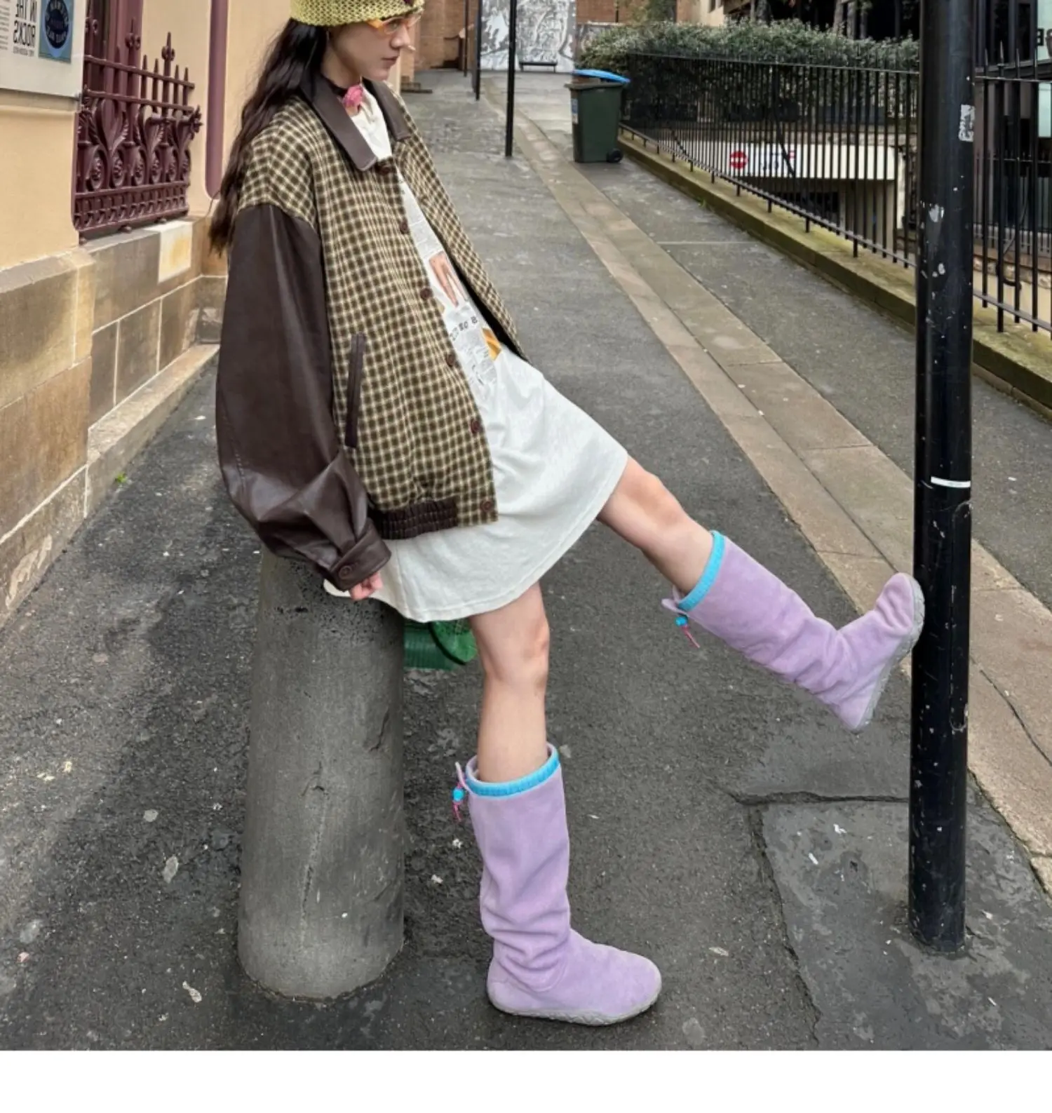 LBSFY - Violet Long Boots, Women's Retro Style Round Toe Versatile with Velvet Flat Bottomed Sleeve High Boots, Knight Boots