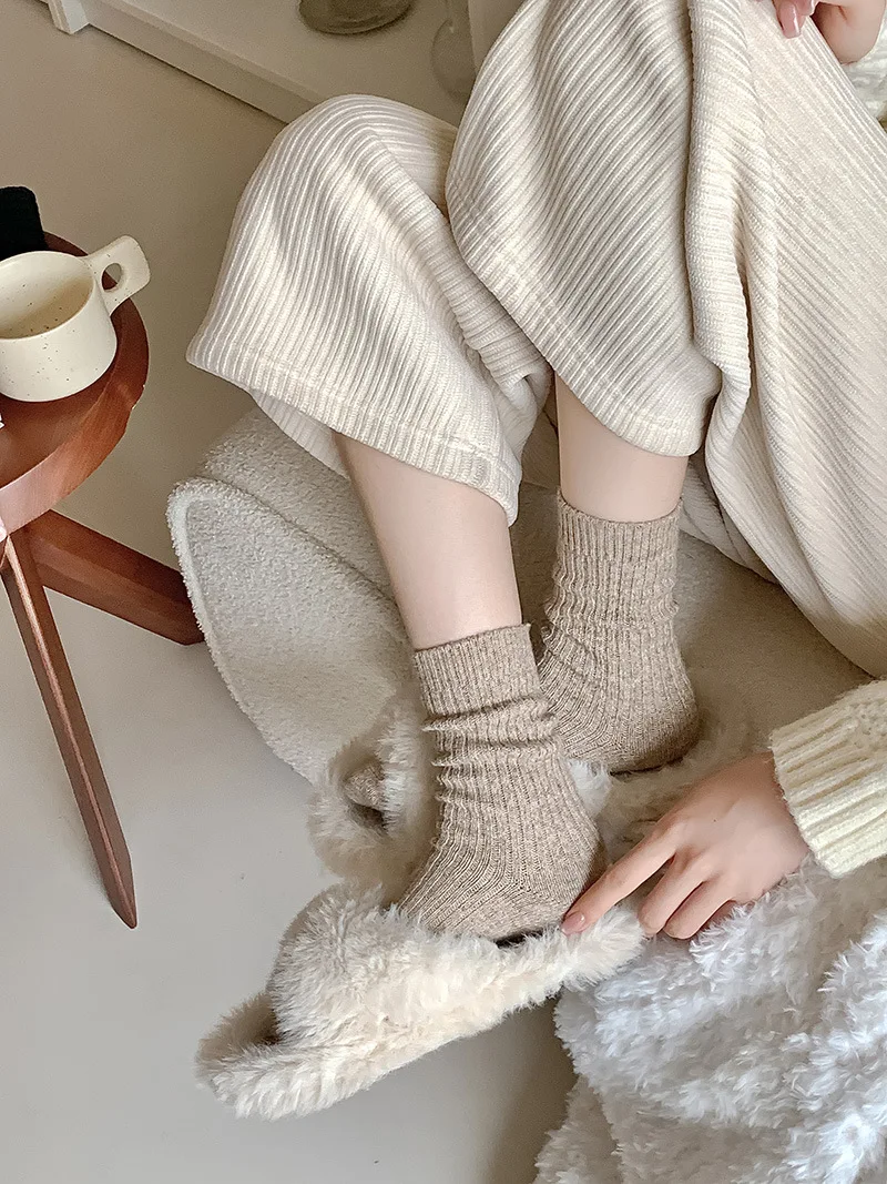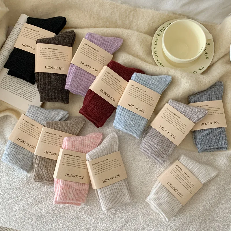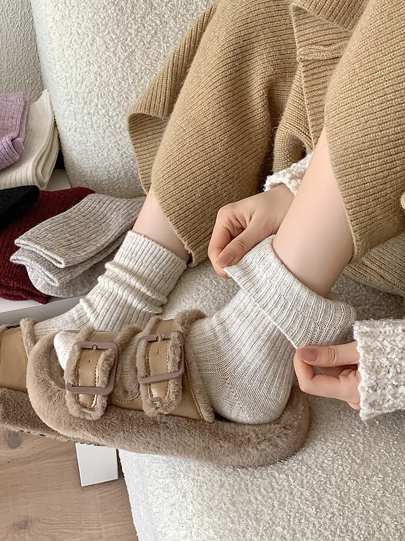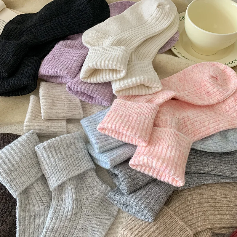 Lbsfy Warm Autumn Cashmere Thick Wool White Socks Women Winter Thicken Warm Harajuku Socks Cute Thermal Japanese Fashion Solid Color