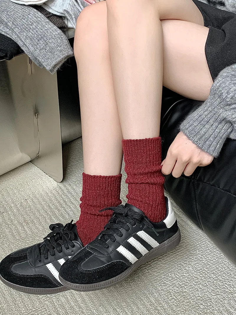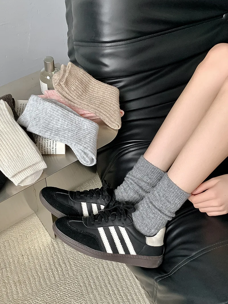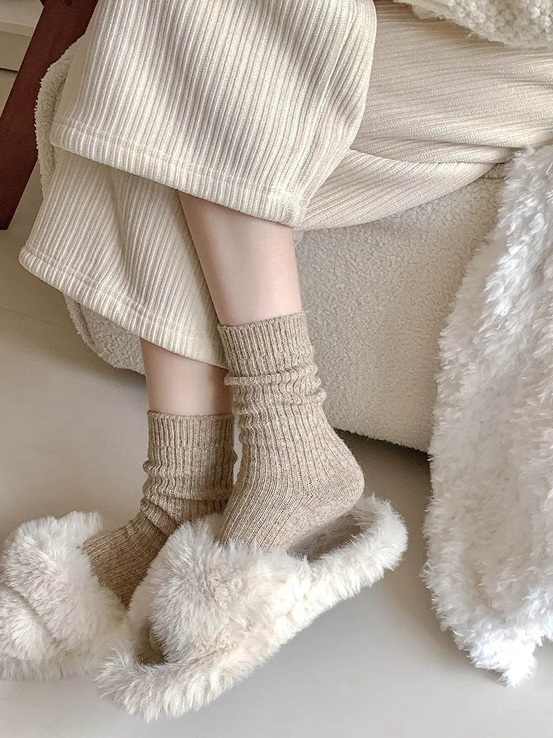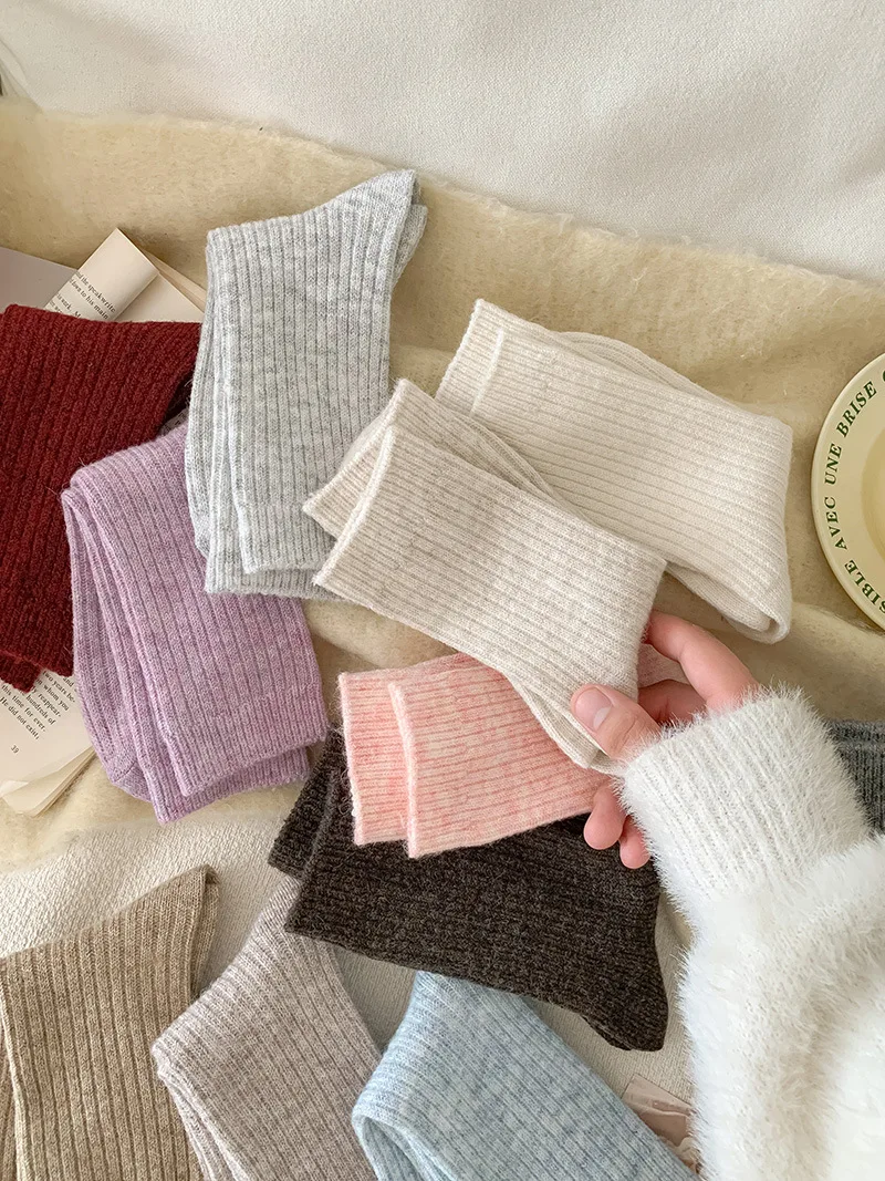 Lbsfy Warm Autumn Cashmere Thick Wool White Socks Women Winter Thicken Warm Harajuku Socks Cute Thermal Japanese Fashion Solid Color