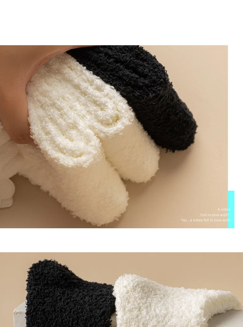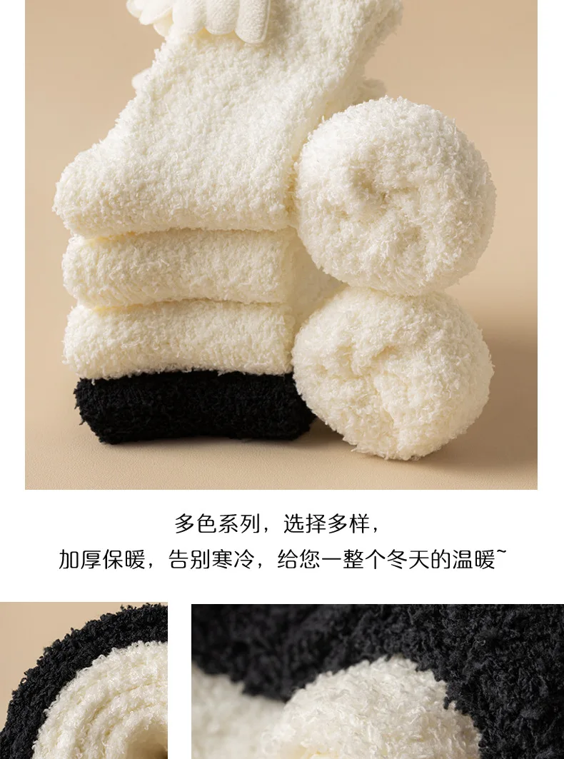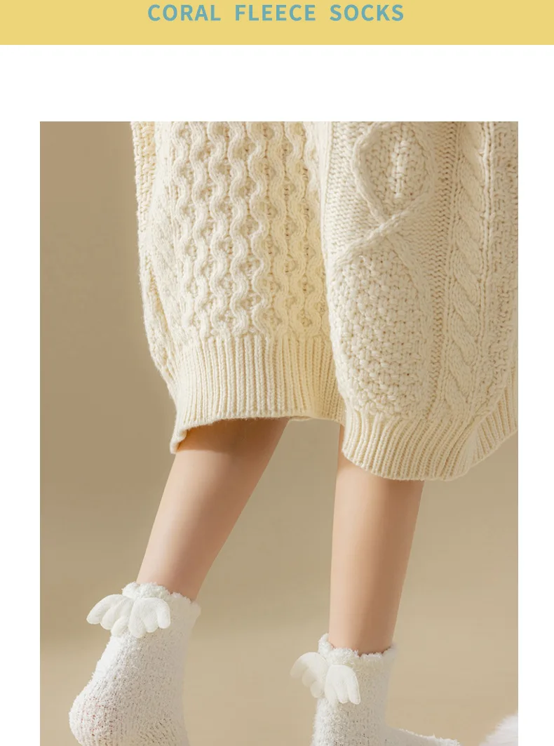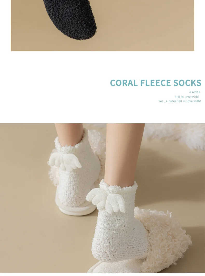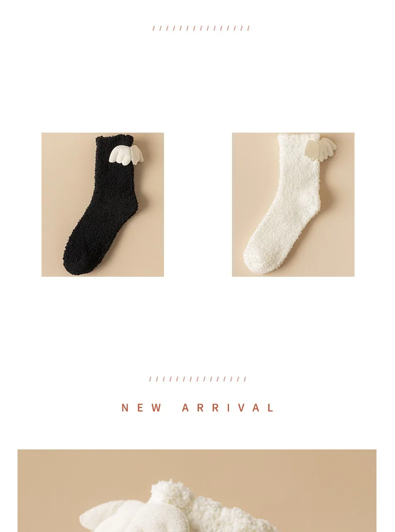 Lbsfy Wing Woman Sock Thicken Crew White Black Cotton Soft Coral Fleece Kawaii Cute Hosiery Autumn Winter Warm Casual Ladies Stockings