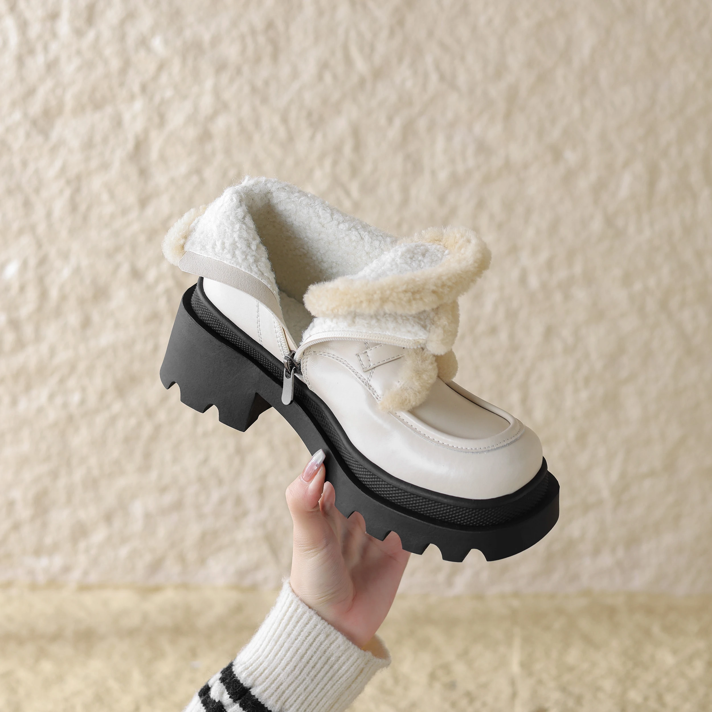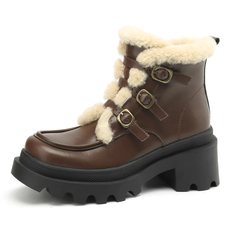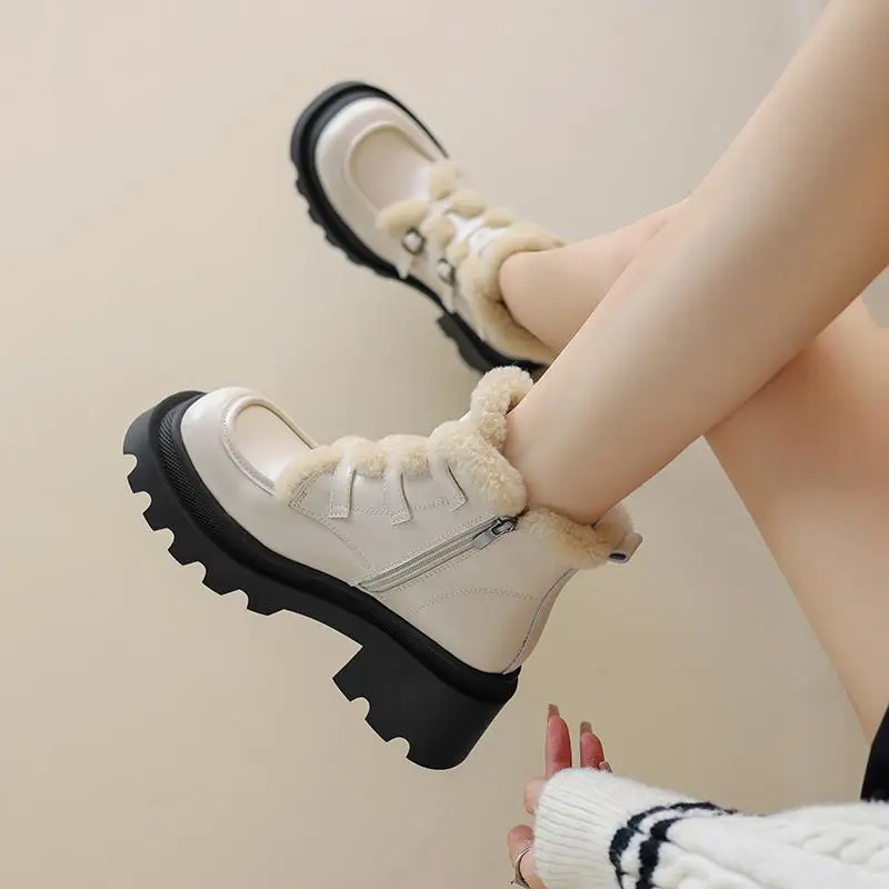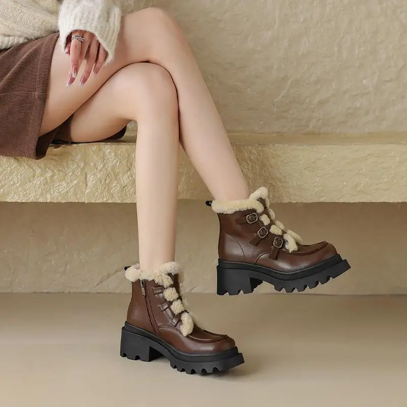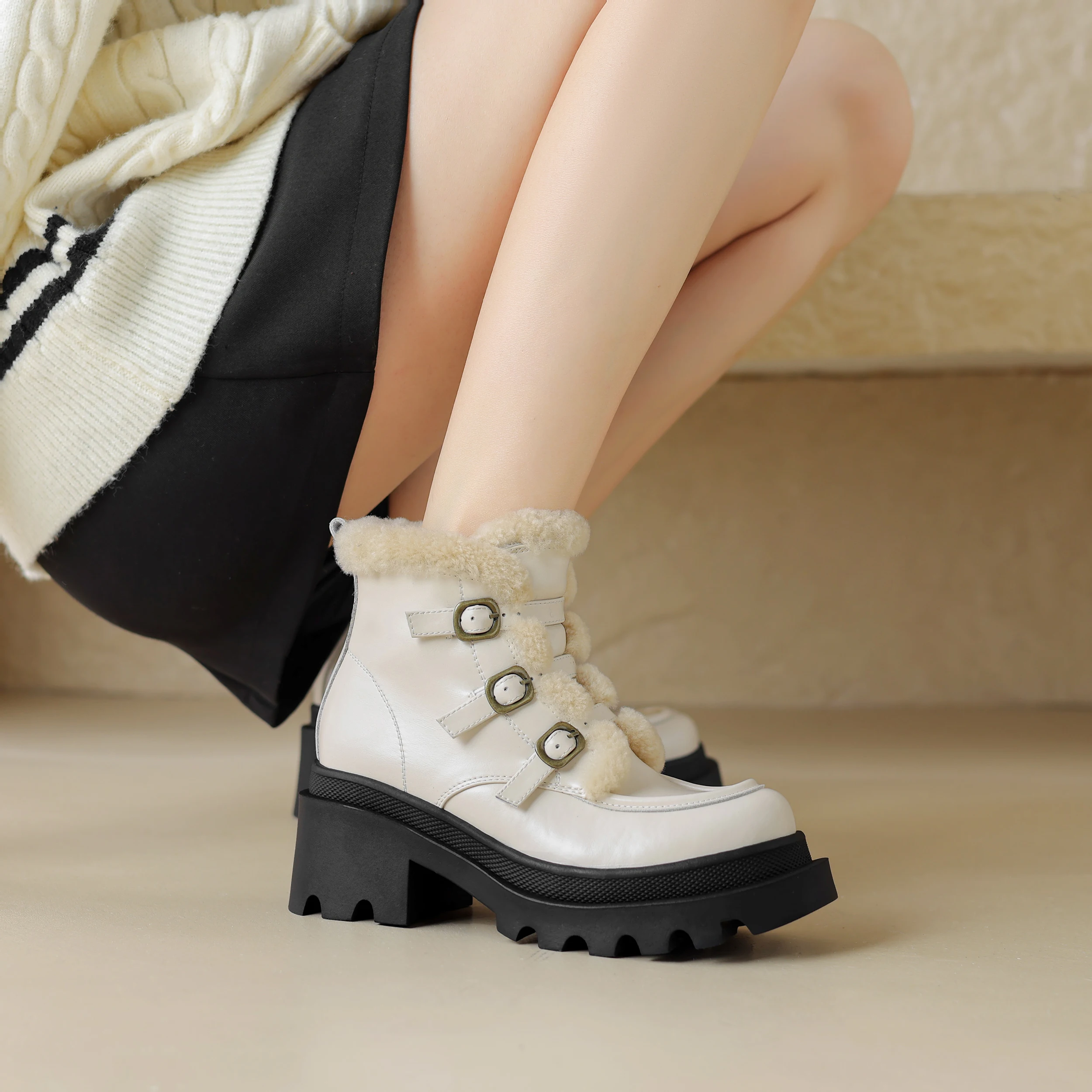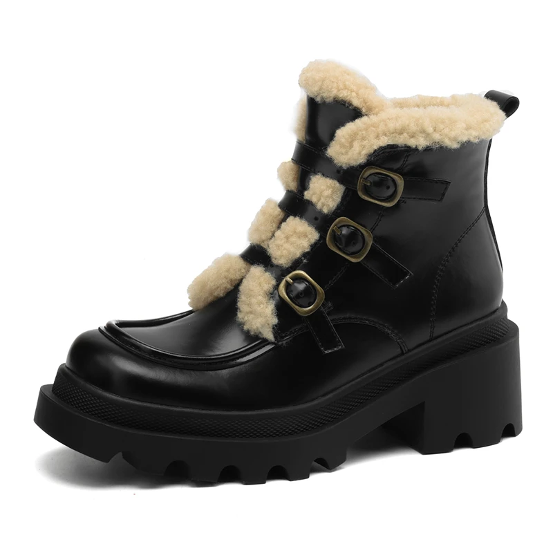 LBSFY - Winter Boots Women Buckle Zipper Platform Ankle Booties Punk Round Toe Buckle Punk Handmade Ladies Snow Booties