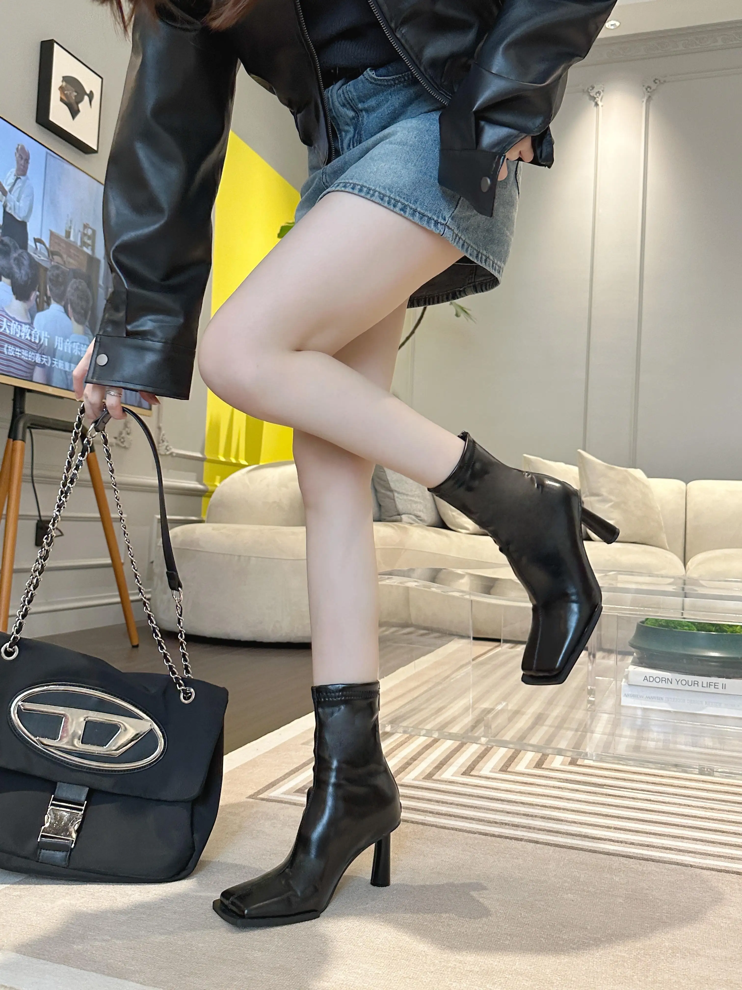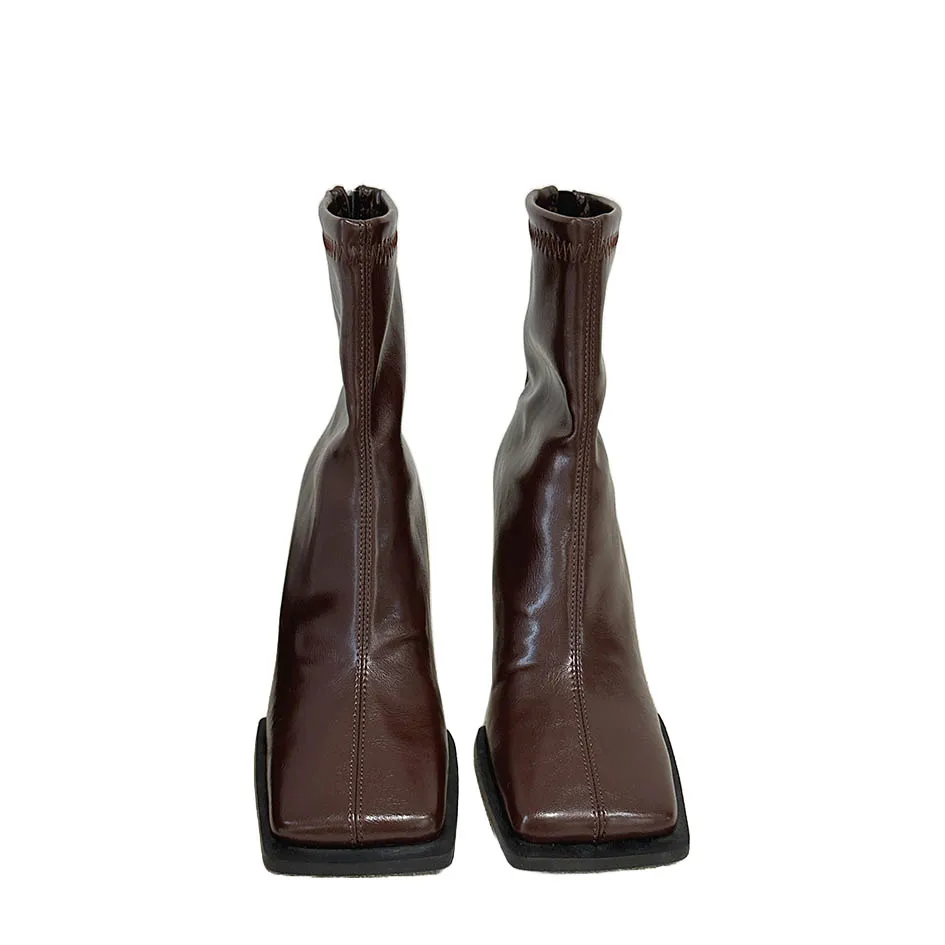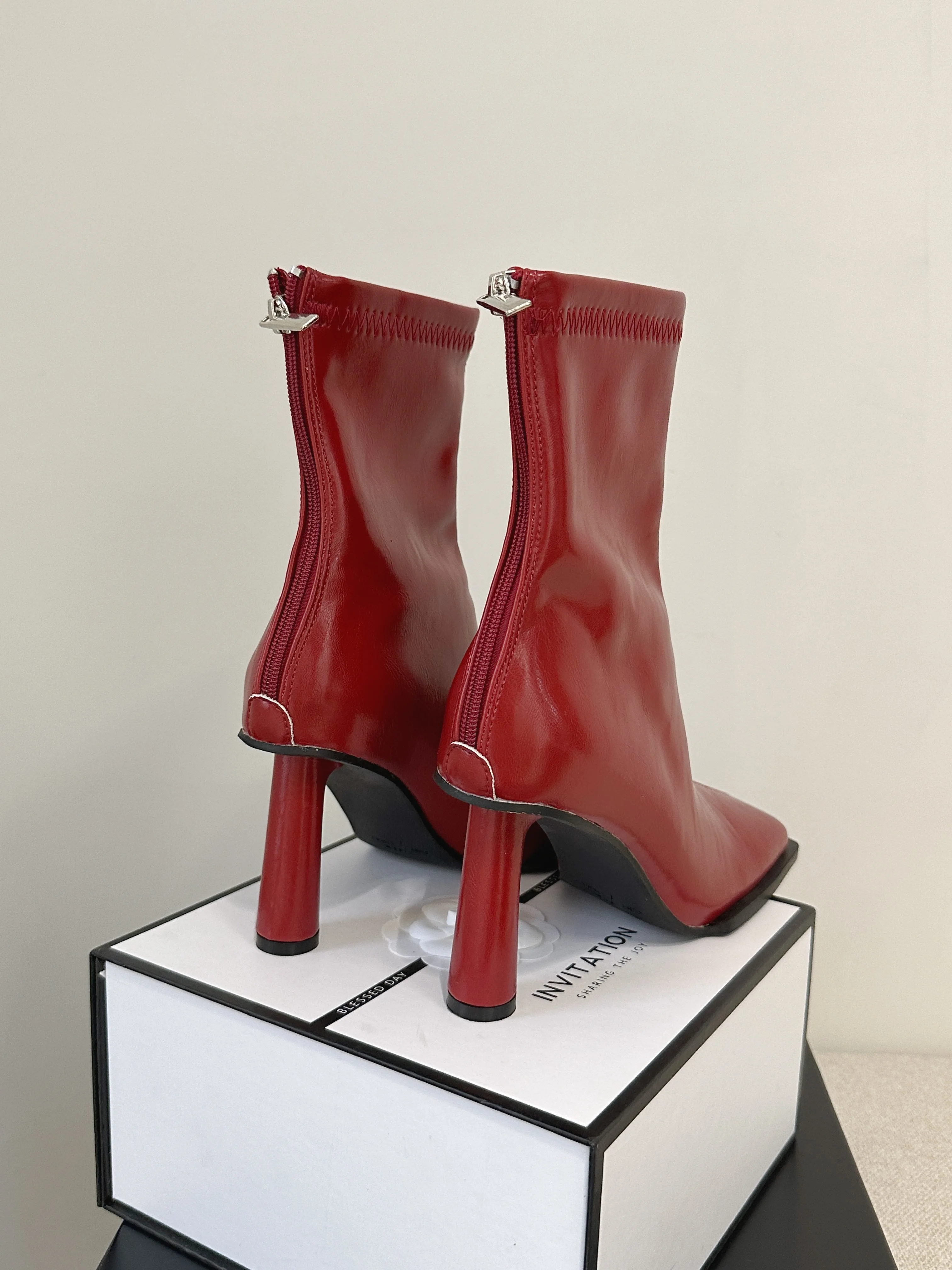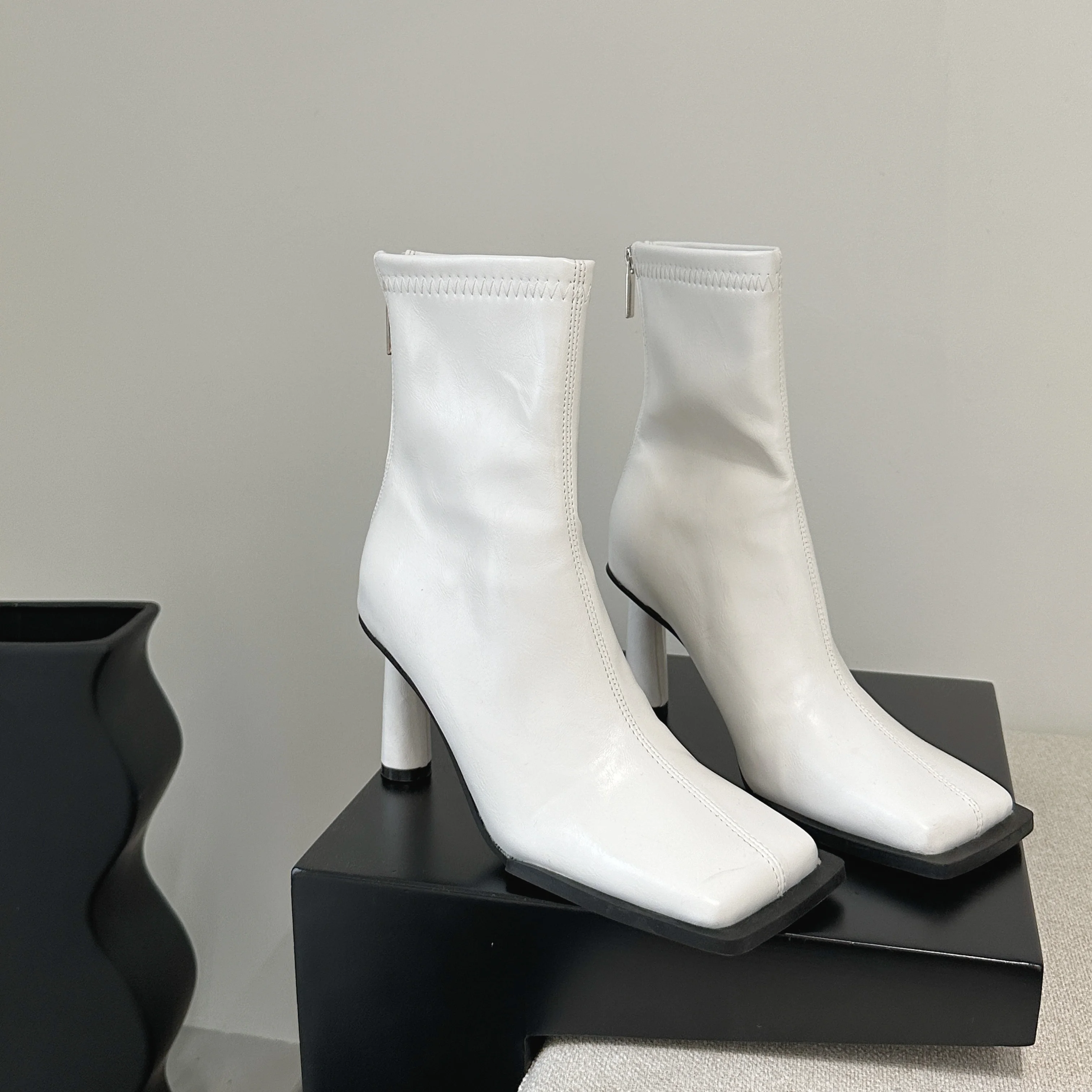 LBSFY - Winter Cozy Soft PU Leather Ankle Boots Women Elegant Square Toe Stiletto Heels Fashion Zip Ladies Party Modern Shoes