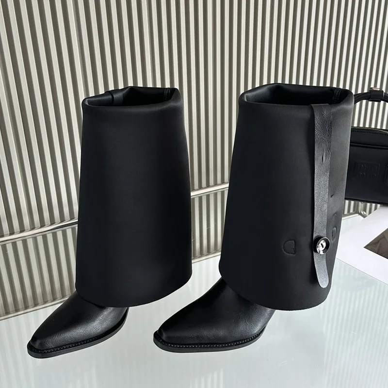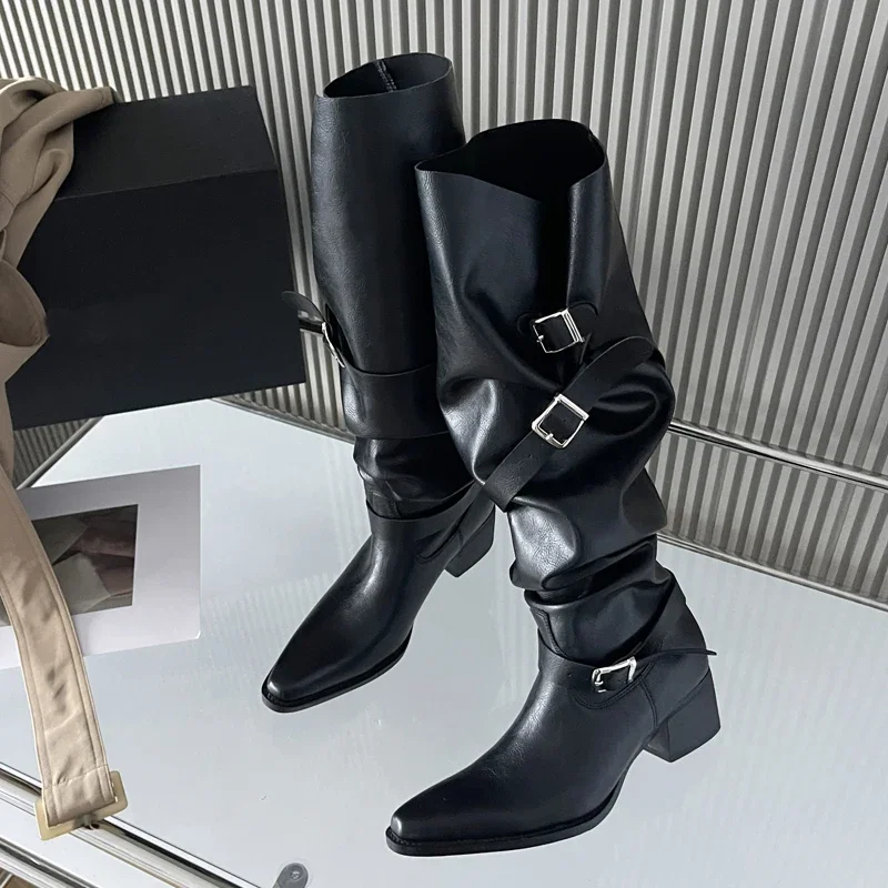 LBSFY -Winter Punk Style Women Knee-High Boots Designer Square Heels Buckle Strap Shoes Ladies Booties Zapatillas De Mujer