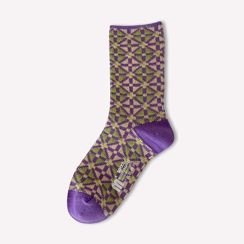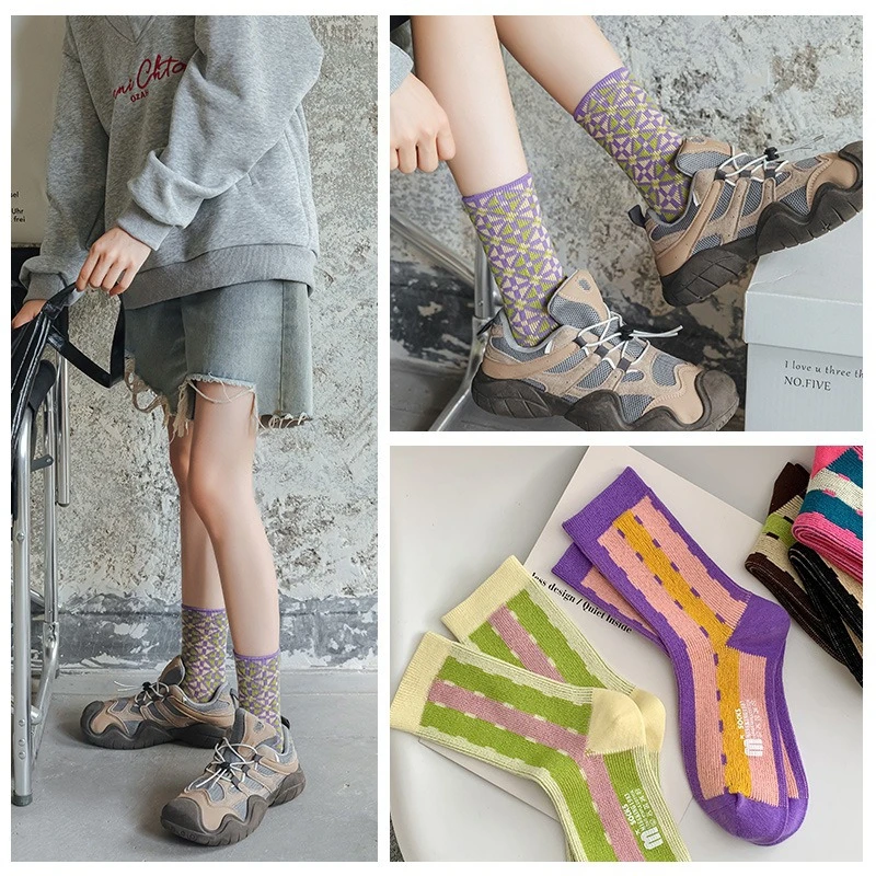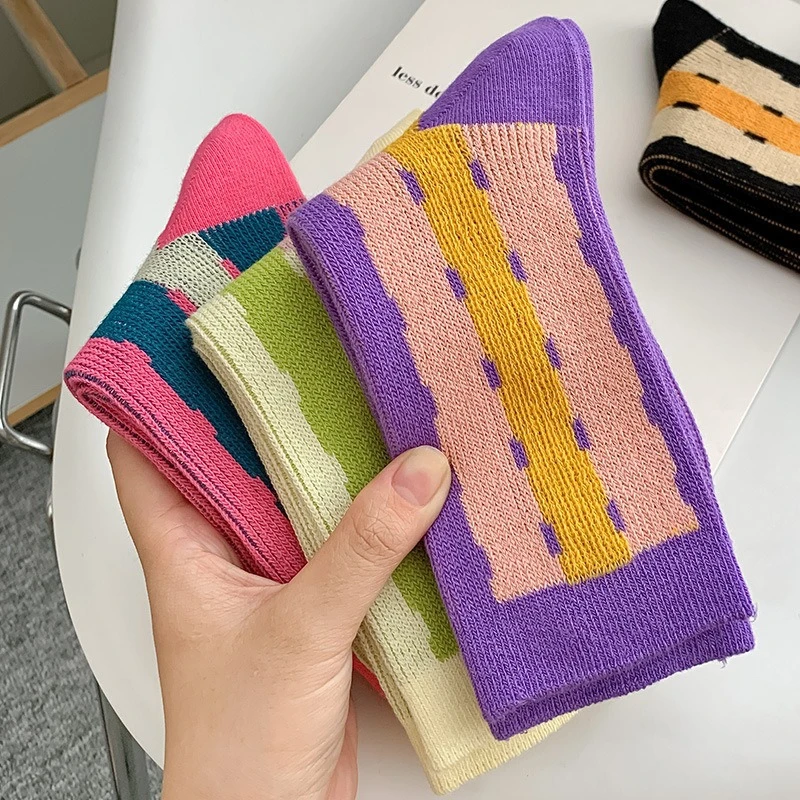 Lbsfy 3 Pairs Men's Retro Socks Ethnic Style Geometric Stripes Cotton Crew Socks Male Breathable and Sweat-absorbing Winter Warm Sock