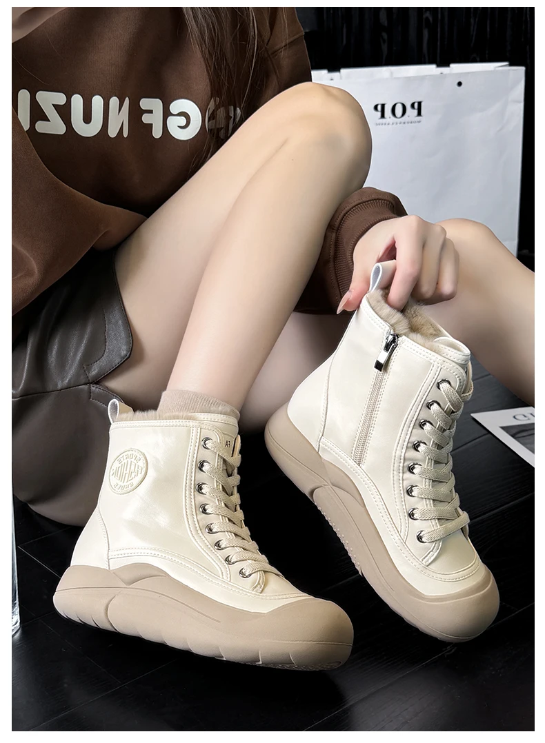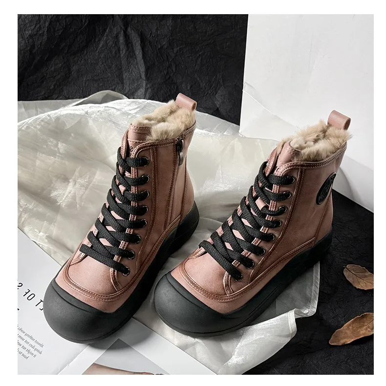 LBSFY - Winter Shoes Women 2024 New Fashion Platform Board Shoes Women's Retro Warm Women's Ankle Boots