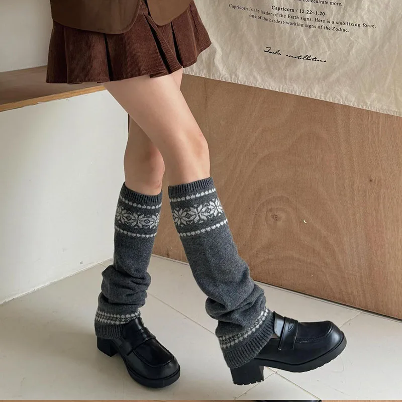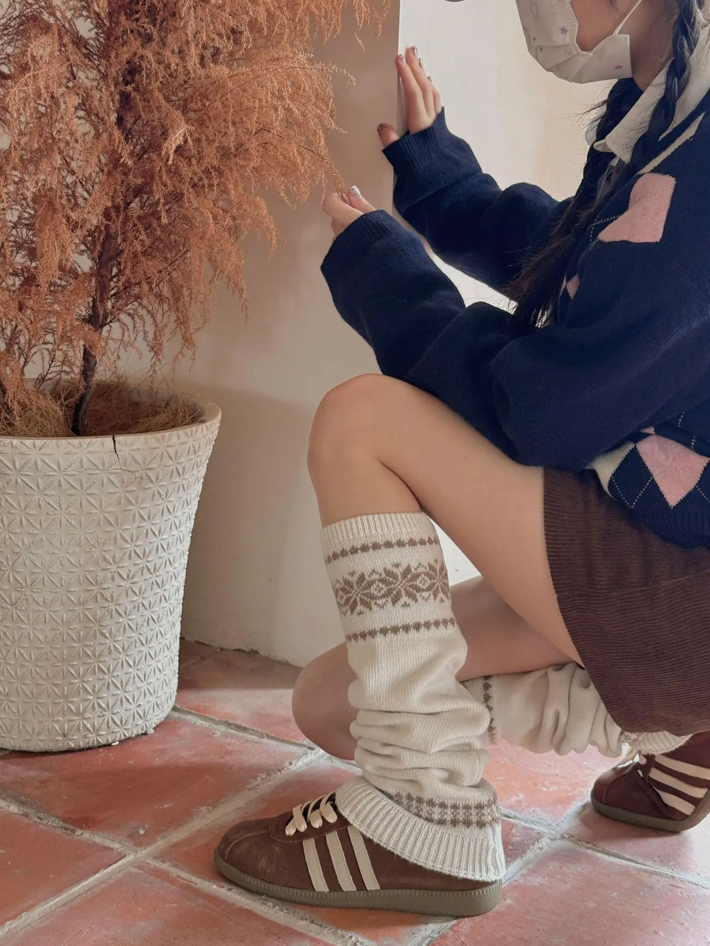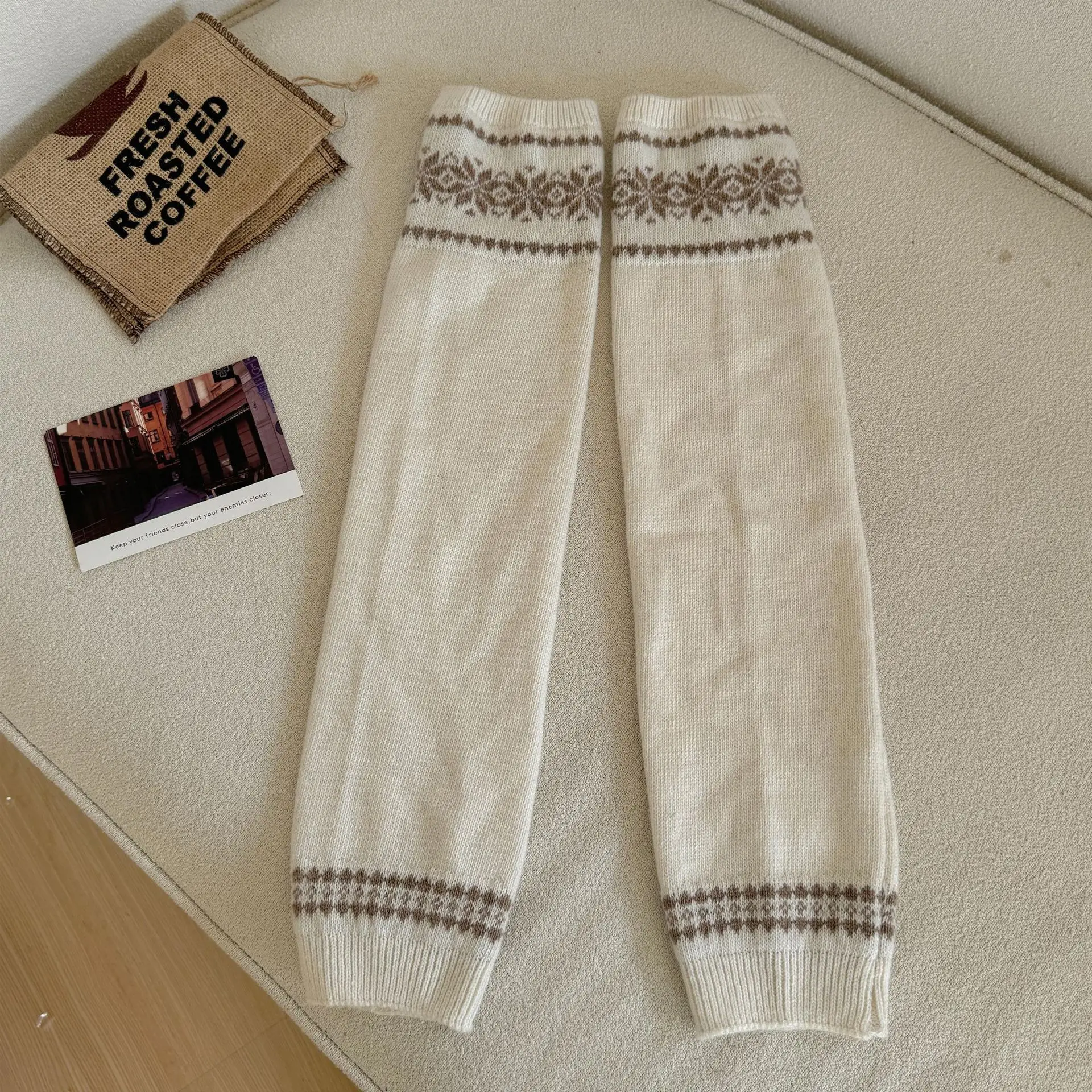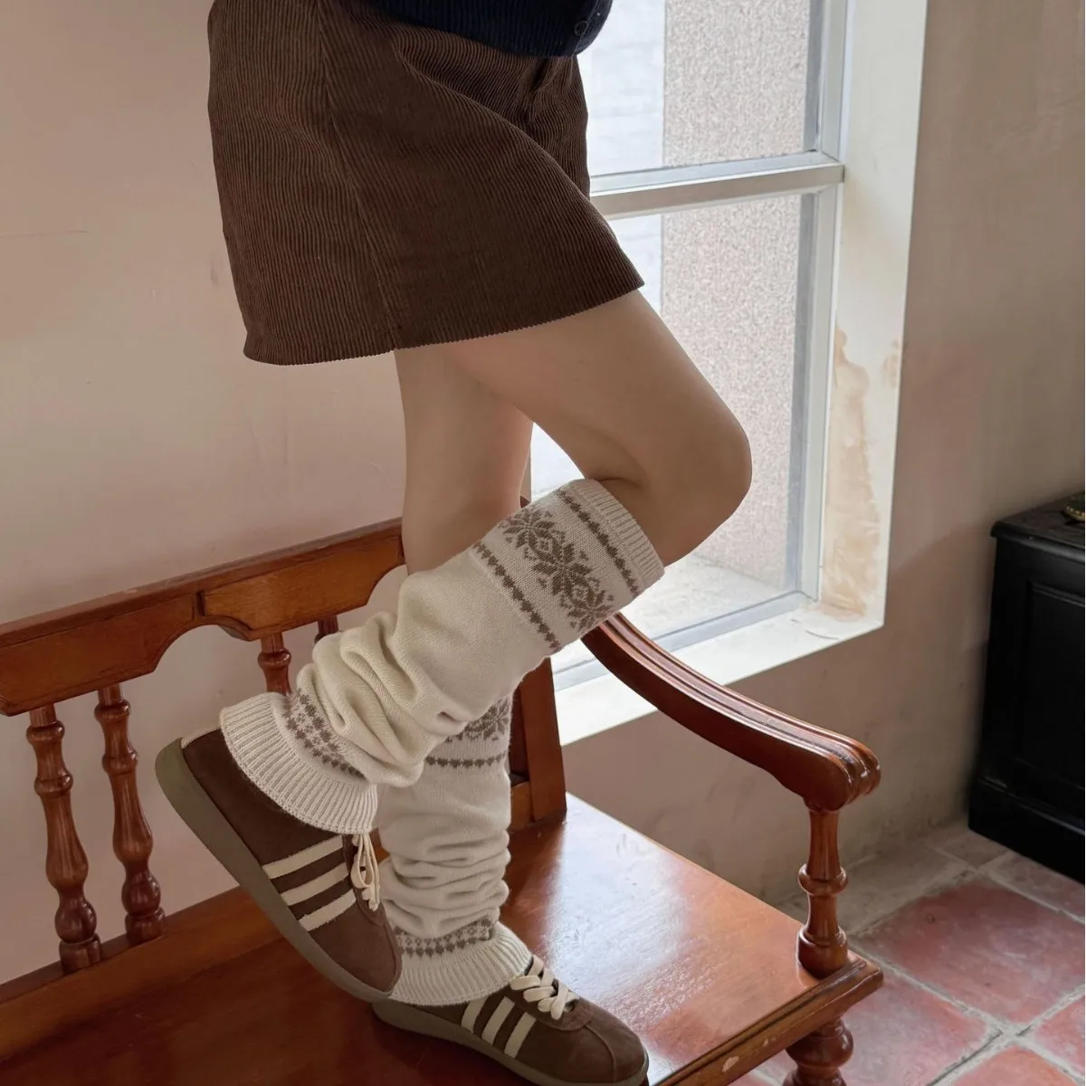 Lbsfy Winter Snowflake Design Mid Calf SocksWool Korea Women Leg Warmers Warm Y2k Knitted Leg Covers Harajuku Boots Cover Cuff Socks