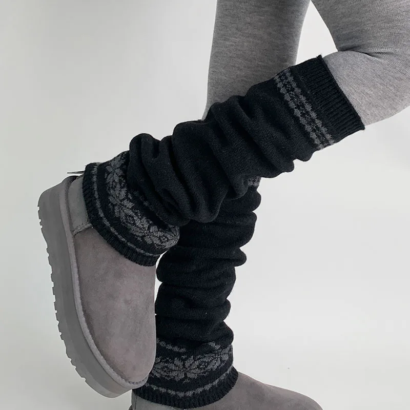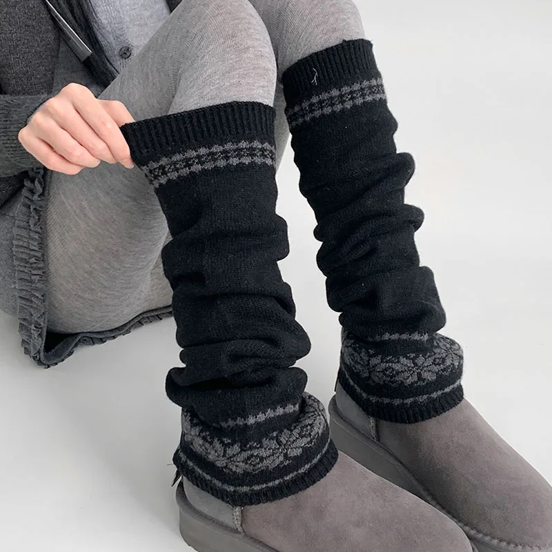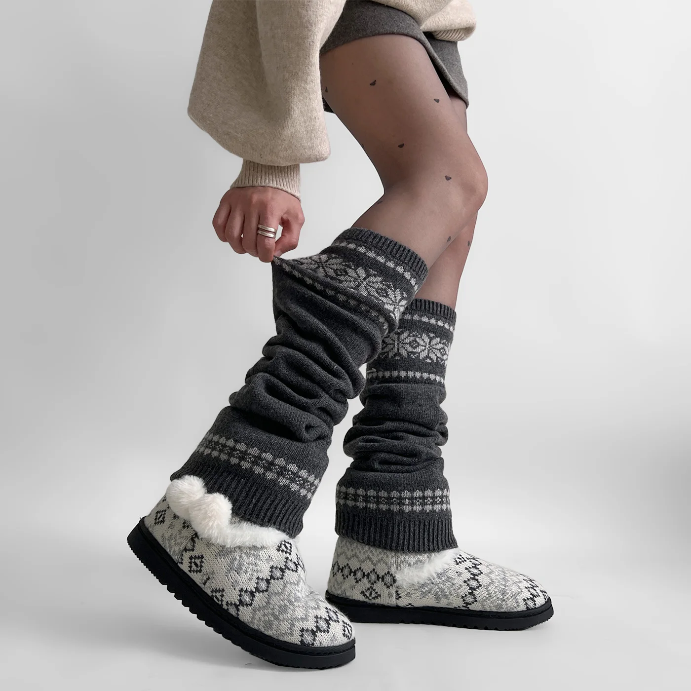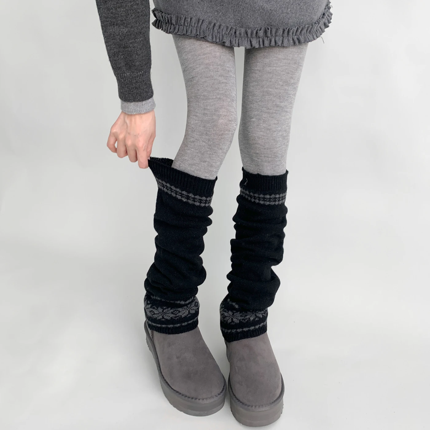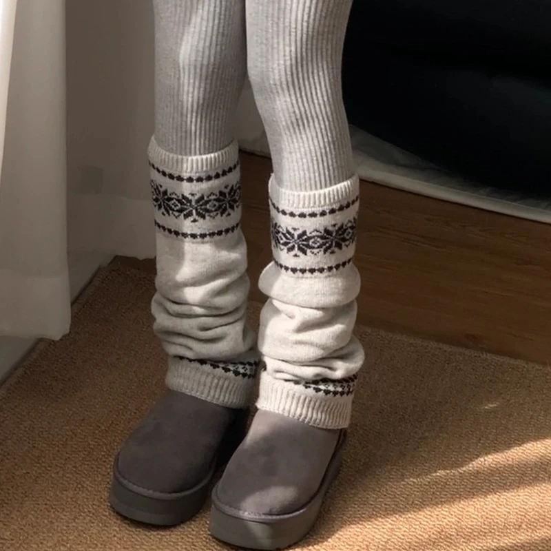 Lbsfy Winter Snowflake Design Mid Calf SocksWool Korea Women Leg Warmers Warm Y2k Knitted Leg Covers Harajuku Boots Cover Cuff Socks