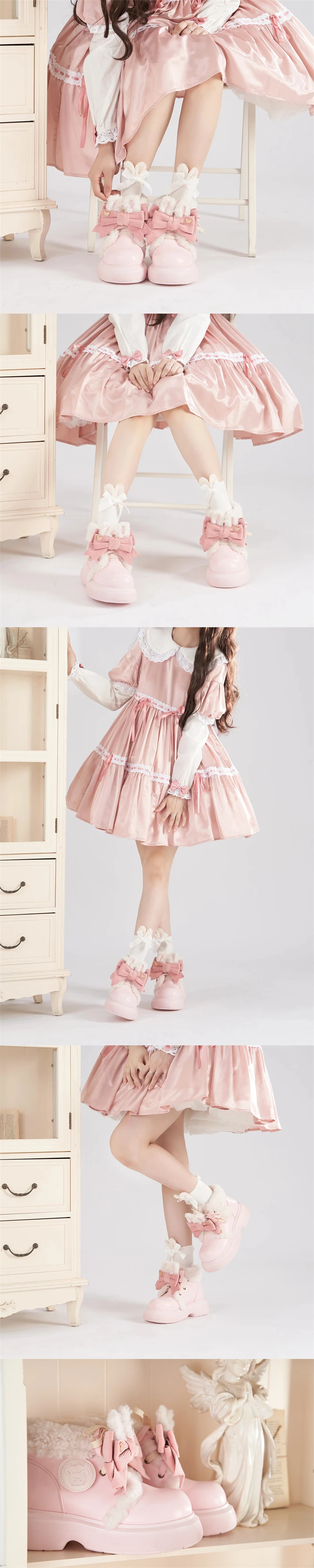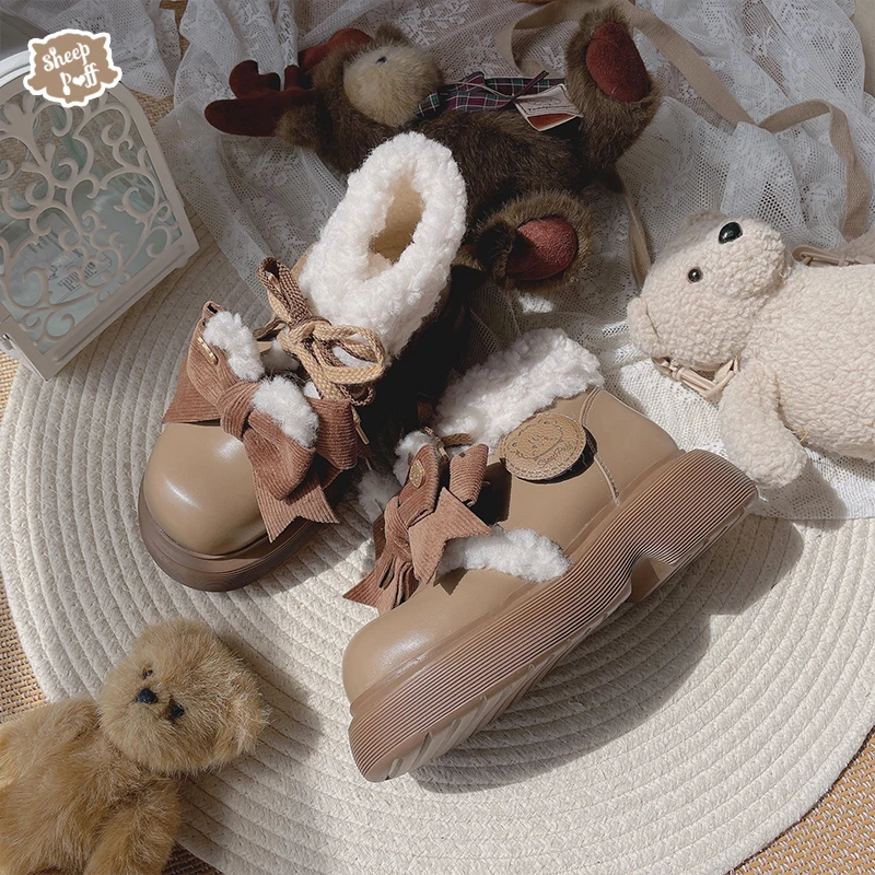 LBSFY - Winter Warm Plush Sweet Lolita Snow Boots Plus Velvet Non-Slip Round Head Women Shoes Cute Kawaii Ankle Boot