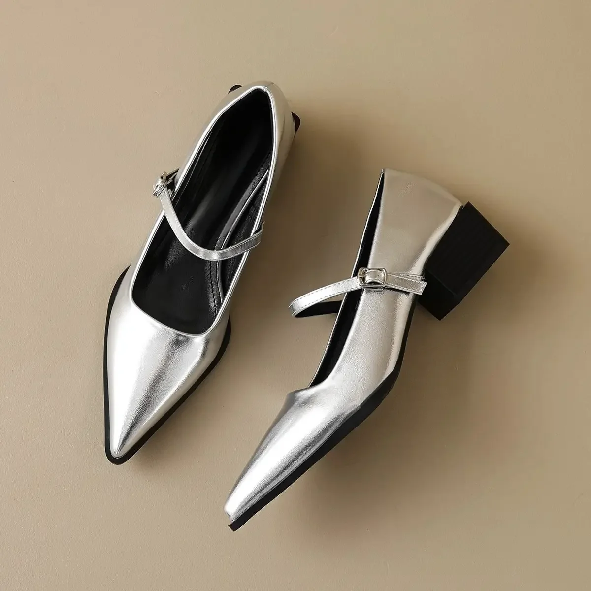 LBSFY -Woman Fashion Pointy Mary Jane Shoes 2025 Spring New Elegant Pumps Female Sexy Pointed Toe High Heels Thick Heel Party Shoes