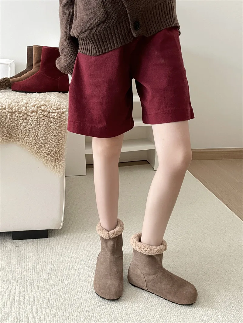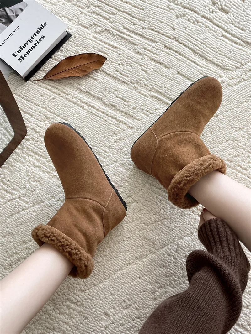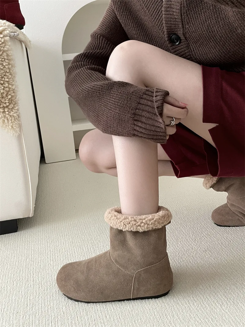 LBSFY - Women Ankle Boots Round Toe Winter Shoes Short Plush Cute Botines Para Mujeres
