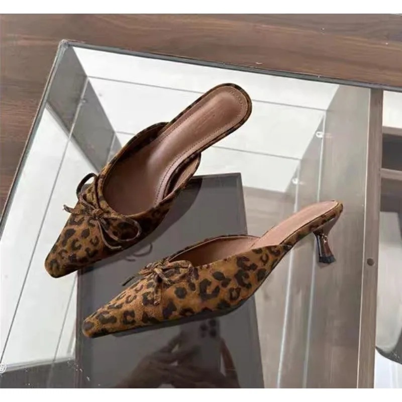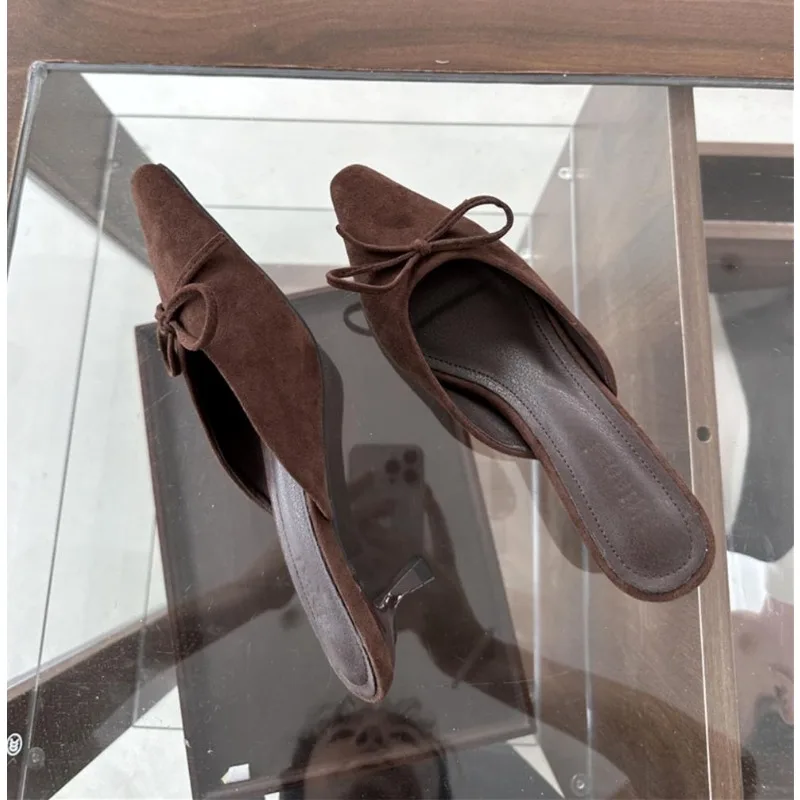 LBSFY -Women Baotou High Heel Half Slippers French Bow Sexy Commuter Pointed Shallow Mouler Shoes Stripper Mules Shoes High Heel Shoes