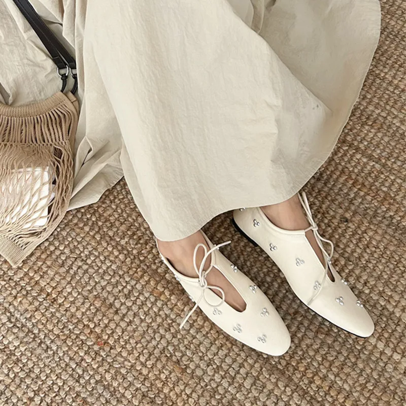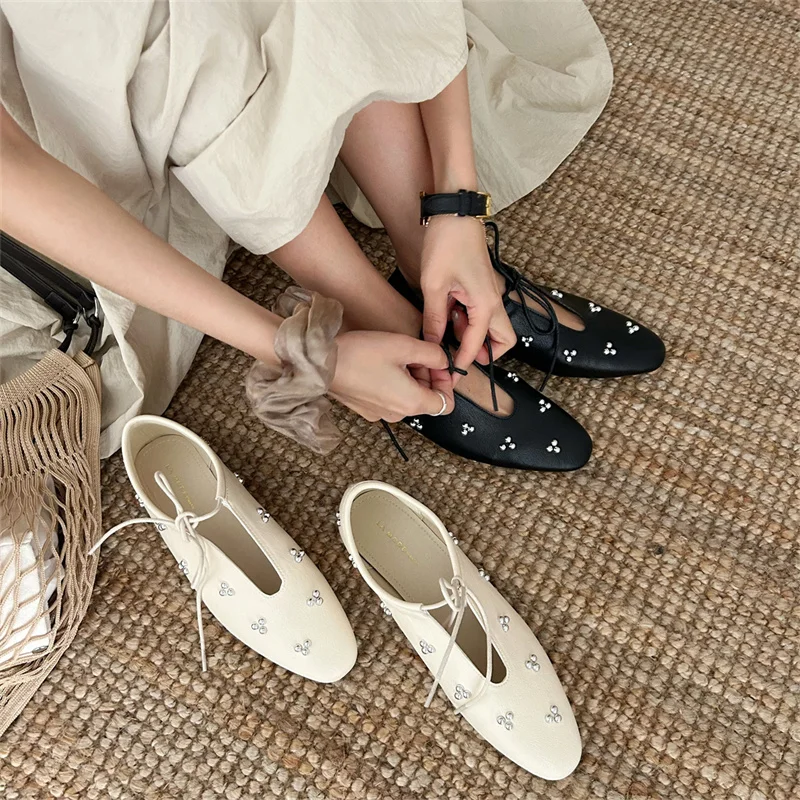 LBSFY -Women Casual Loafers Lace Up Ladies Square Toe Flat Heel Sandals Thick Low Heels Spring Slip On Office Daily Shoes
