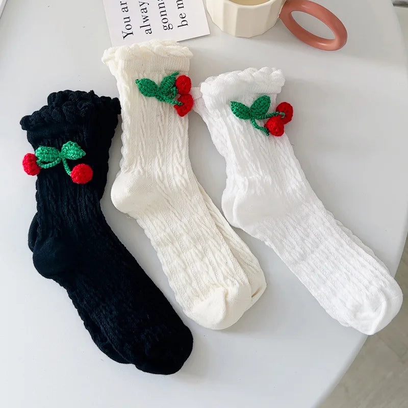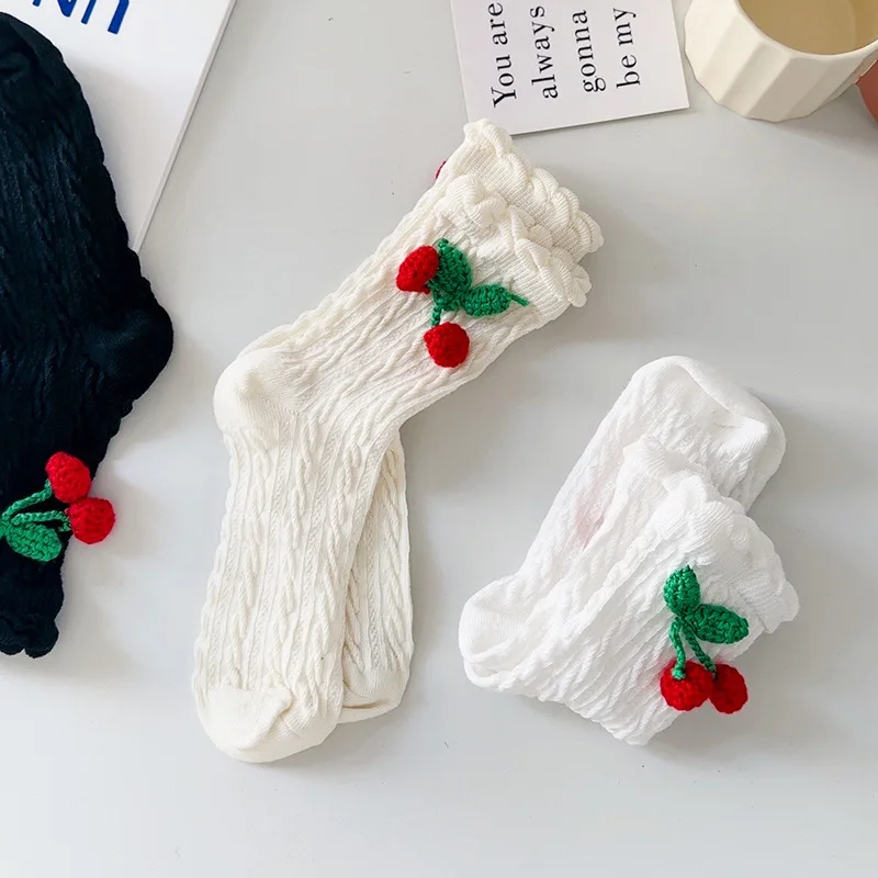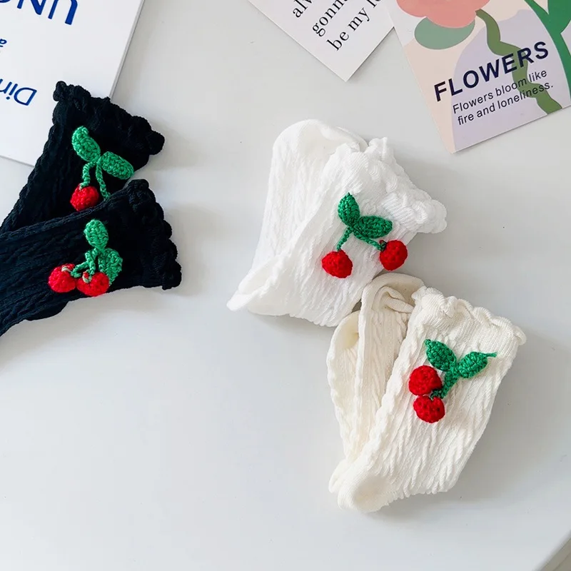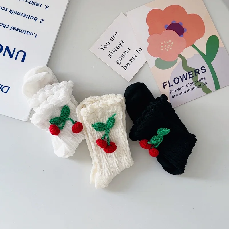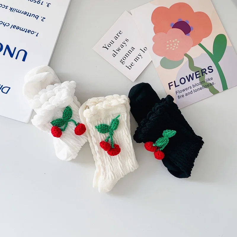 Lbsfy women cotton socks Japanese solid color cherry sweet spring Lolita princess white socks girls gift female