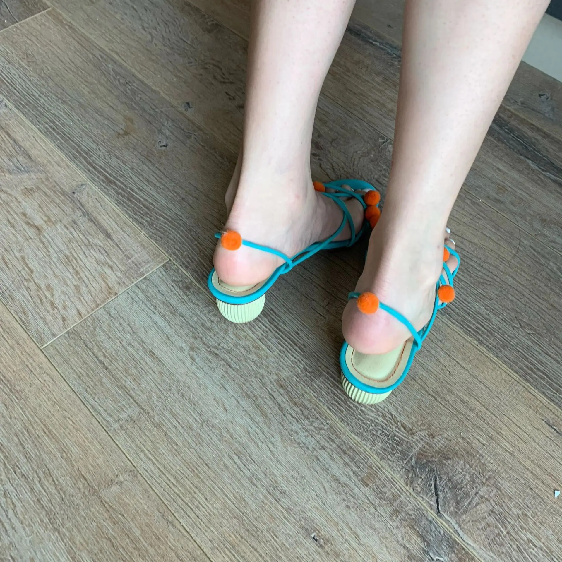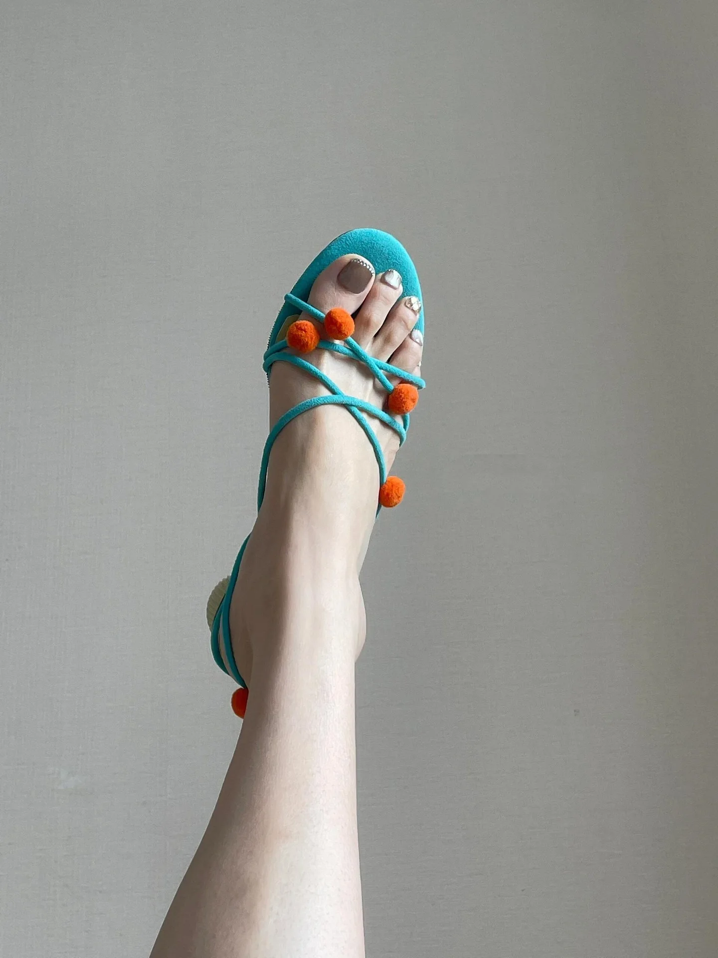 LBSFY -Women Cute Small Ball Strap High-heeled Slippers Summer Open Toe Casual Sandals New Narrow Band Sexy Hollow Slippers