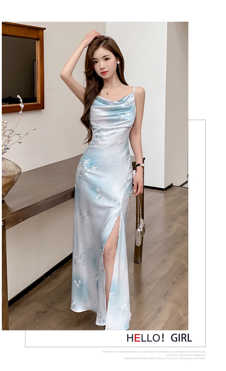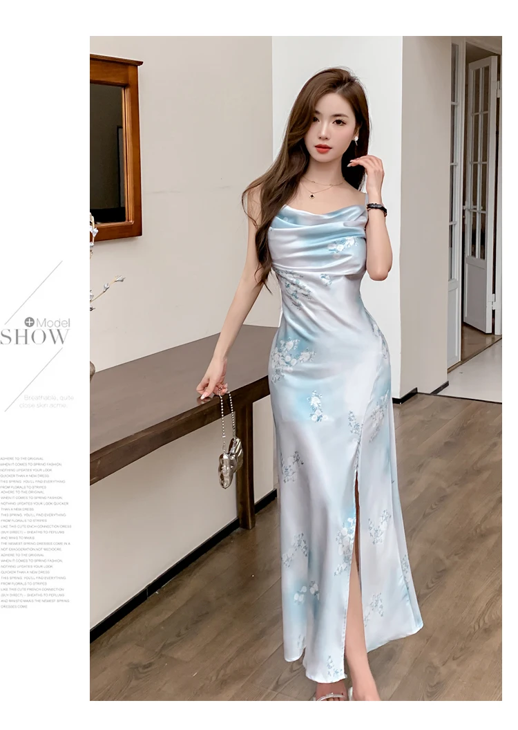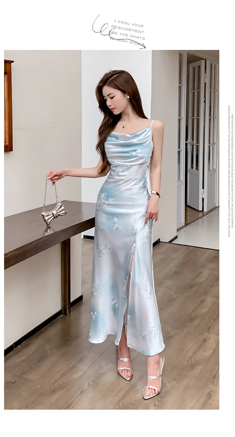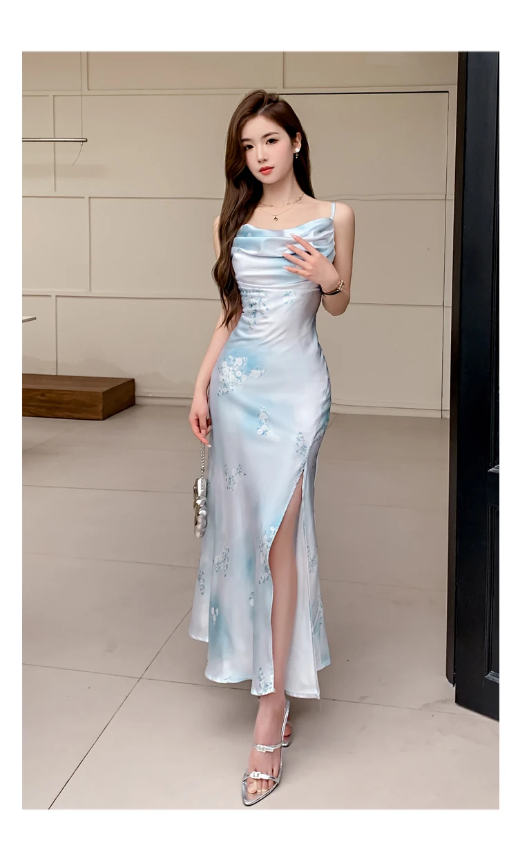 LBSFY -Women Elegant Spaghetti Strap Sexy Dresses Summer New Fashion Sleeveless Slim Slit Midi Dress Female Party Prom Vestidos Clothes