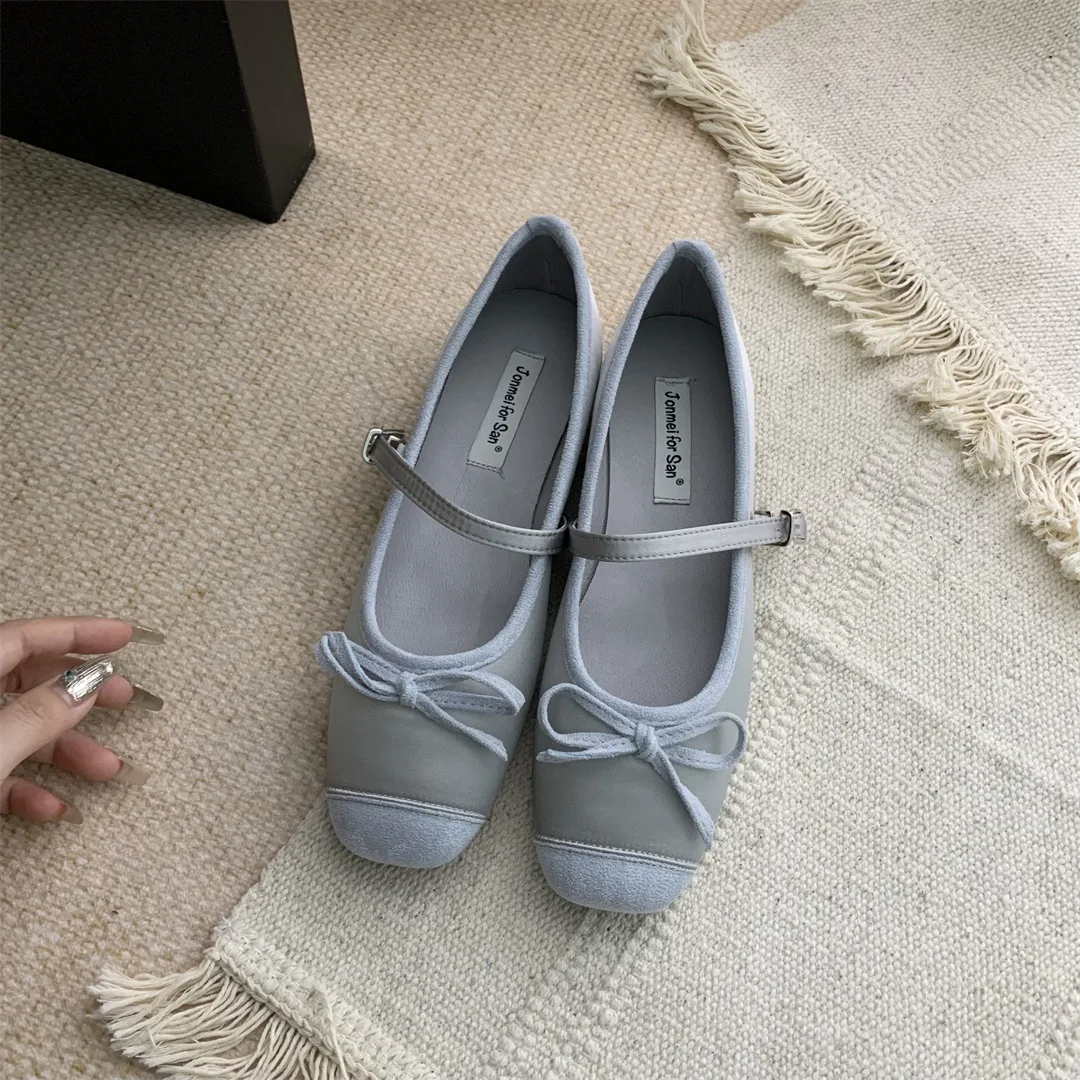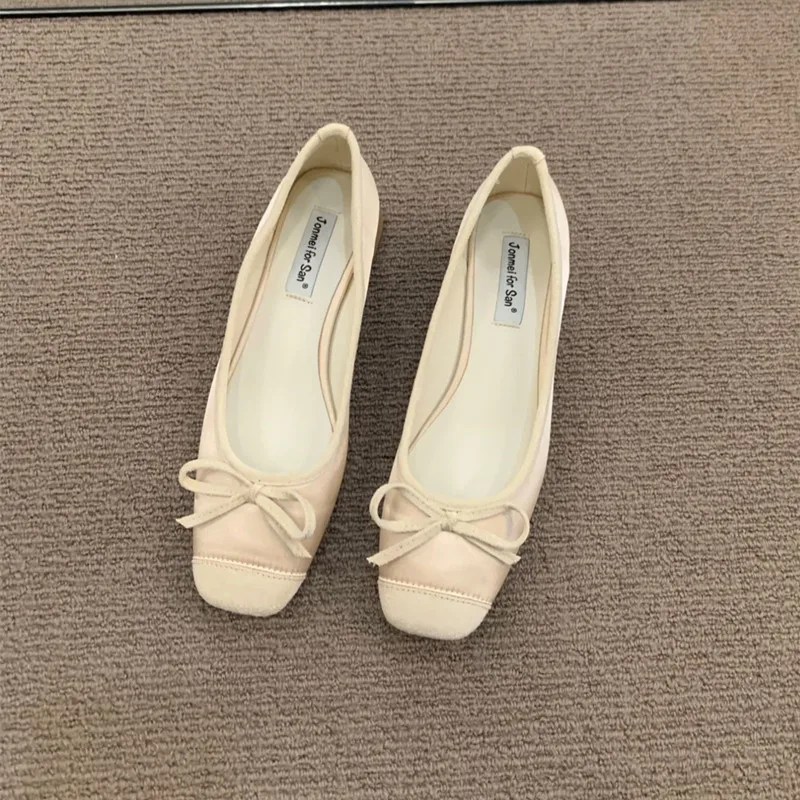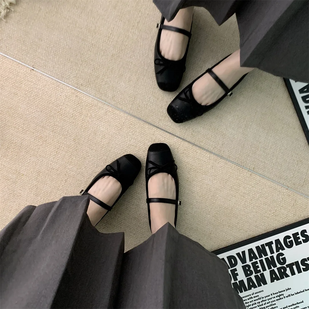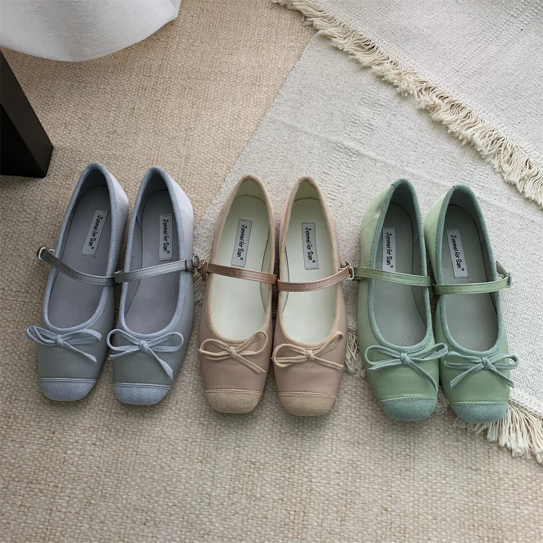 LBSFY - Women Flats Fashion Colored Soft Leather Ballet Shoes Square Toe Bow Low Heels Shoes Shallow Mouth Casual Shoes Mu