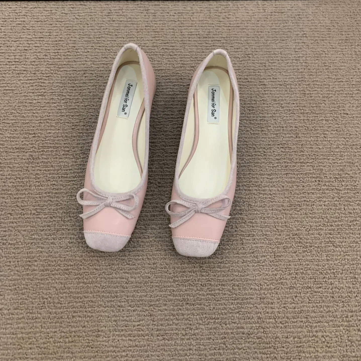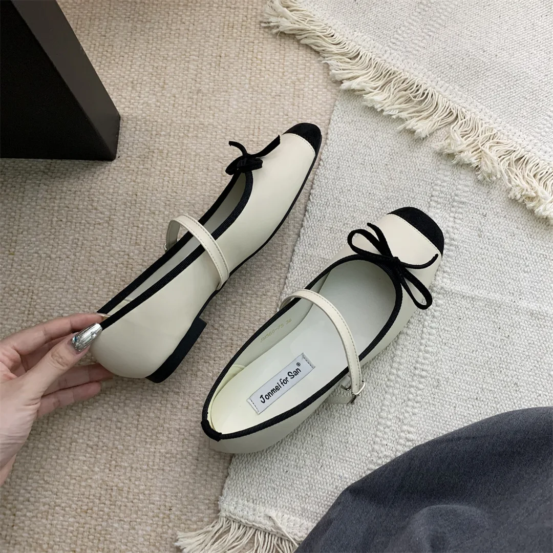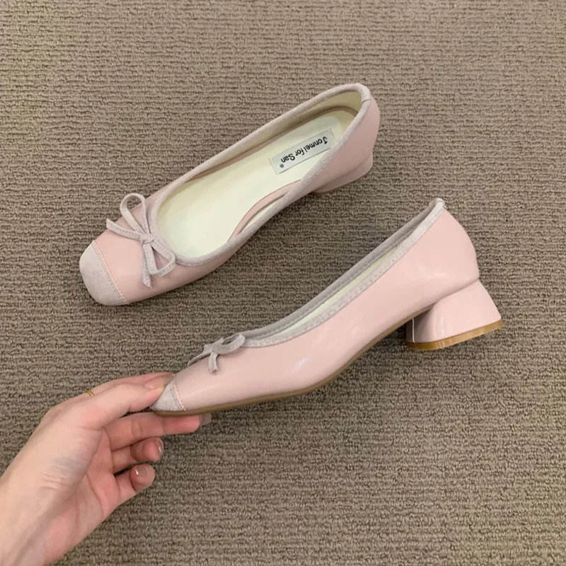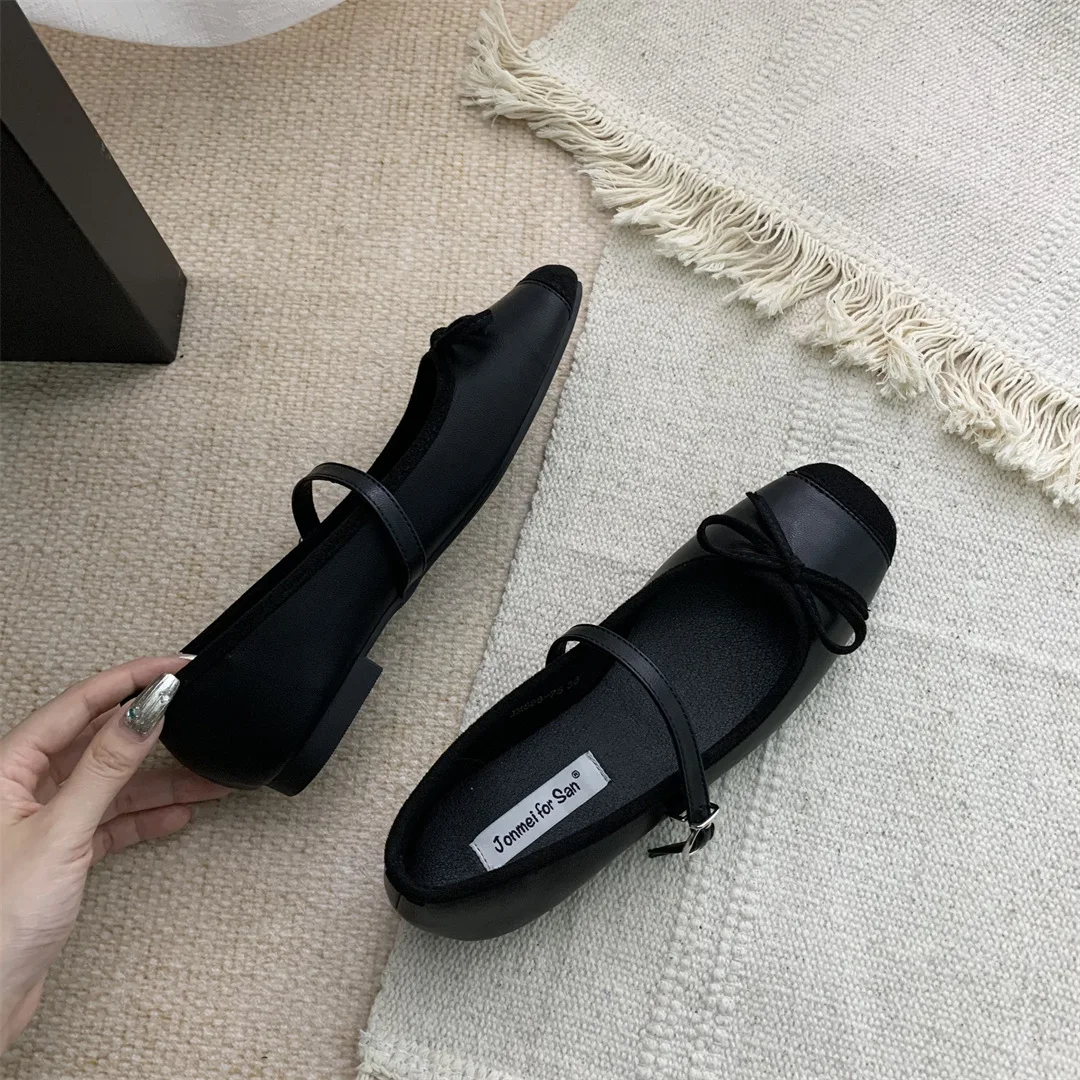 LBSFY - Women Flats Fashion Colored Soft Leather Ballet Shoes Square Toe Bow Low Heels Shoes Shallow Mouth Casual Shoes Mu