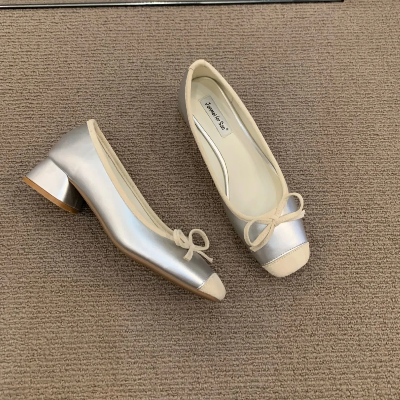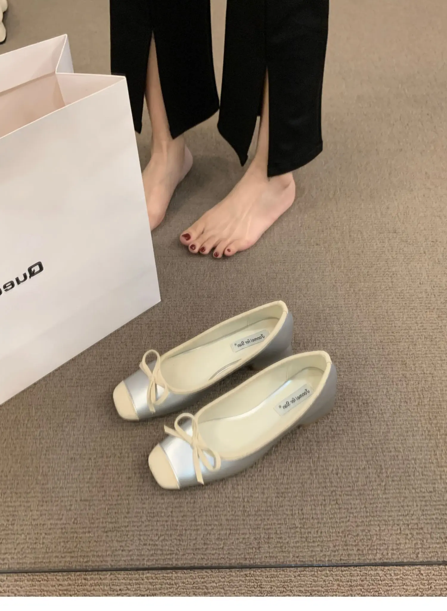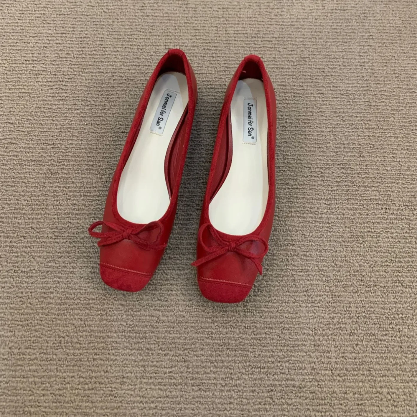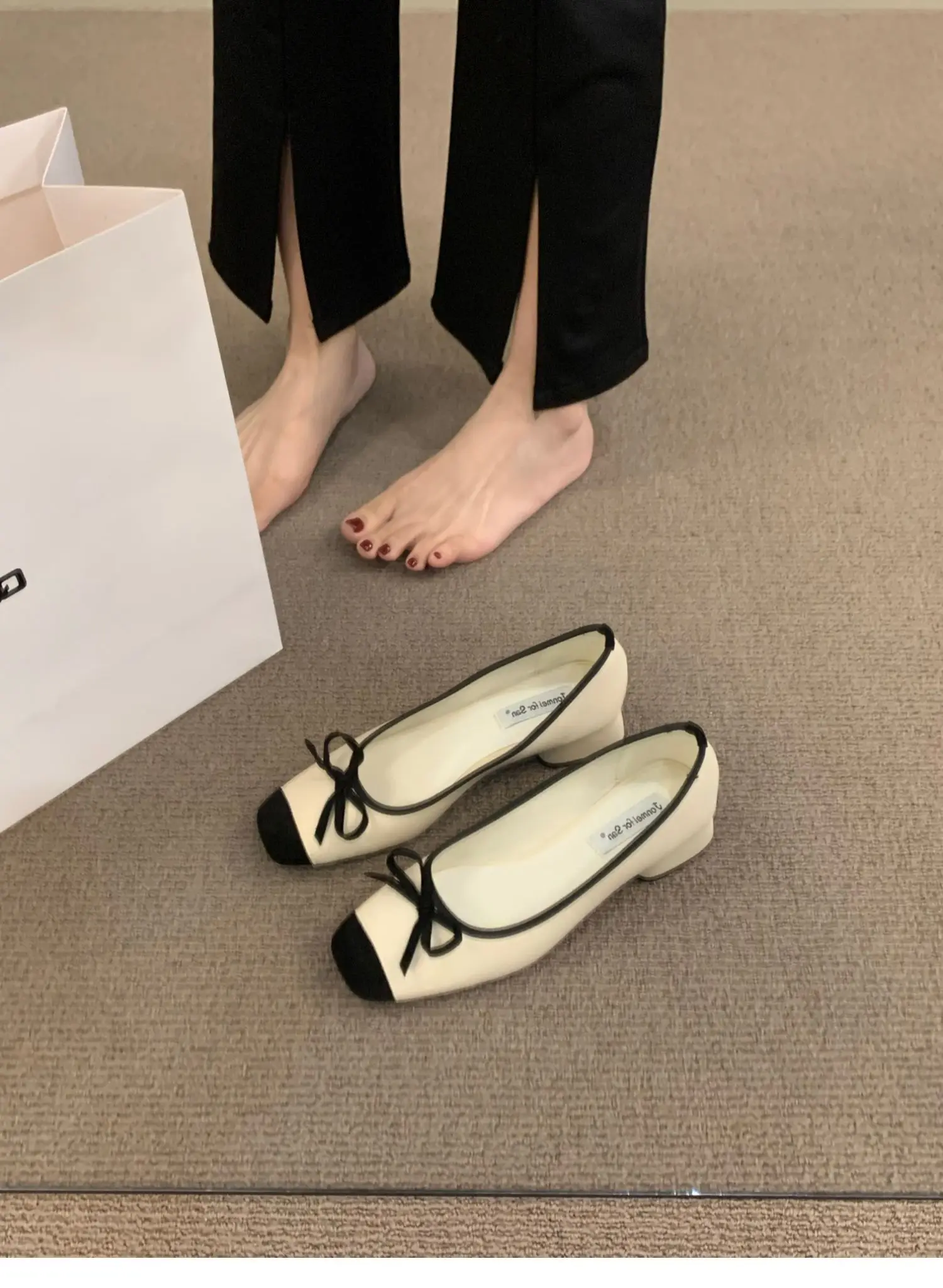 LBSFY - Women Flats Fashion Colored Soft Leather Ballet Shoes Square Toe Bow Low Heels Shoes Shallow Mouth Casual Shoes Mu