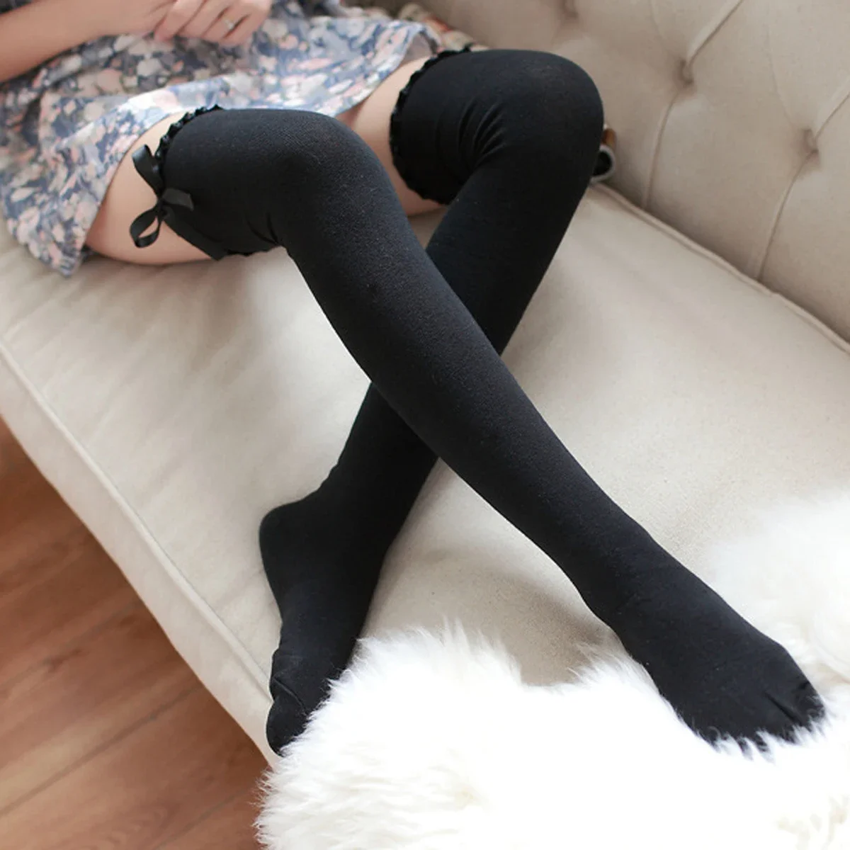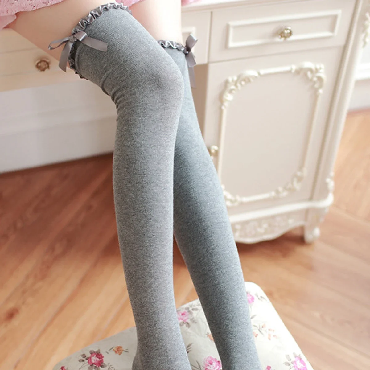 Lbsfy Women Long Stockings Women Over Knee Socks Stylish Cozy Women's Over Knee Thigh Socks with Wave Trim Bowknot for Comfortable