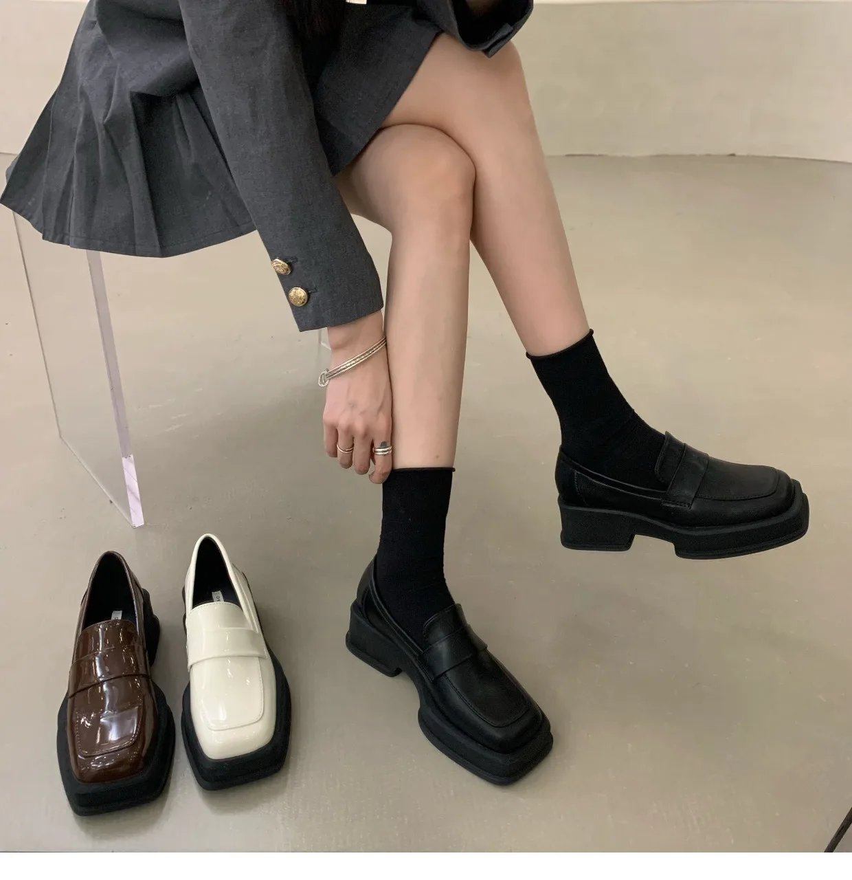 LBSFY - Women Luxury Loafers Fashion Square Toe Platform Moccasins Ladies Pumps Design Evening Party Heel Shoes Ladies Casual Solid Shoe