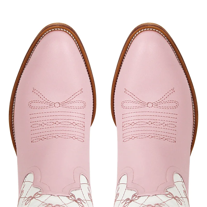 LBSFY - Women Pink Pull-on Knee High Cowgirl Boots with Bow Comfy Women Big Size Cowboy Boots