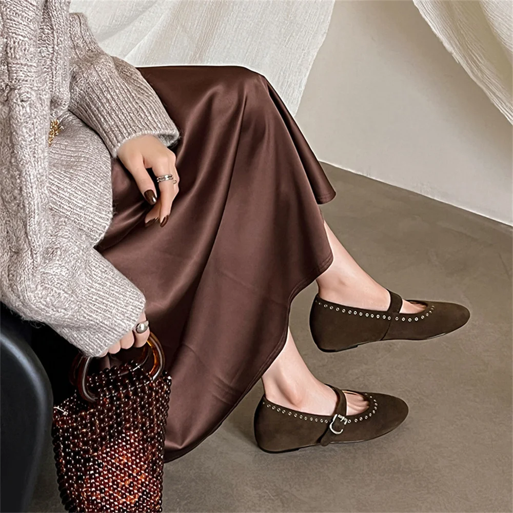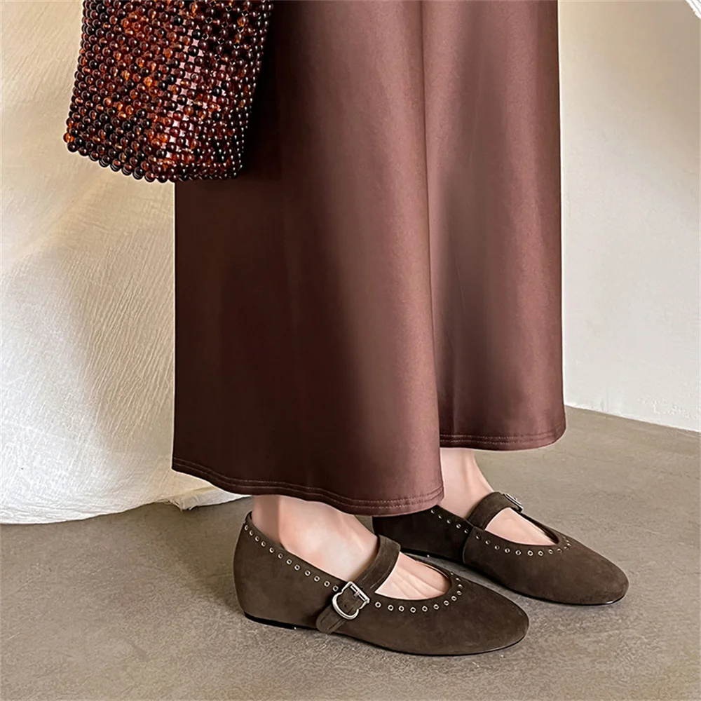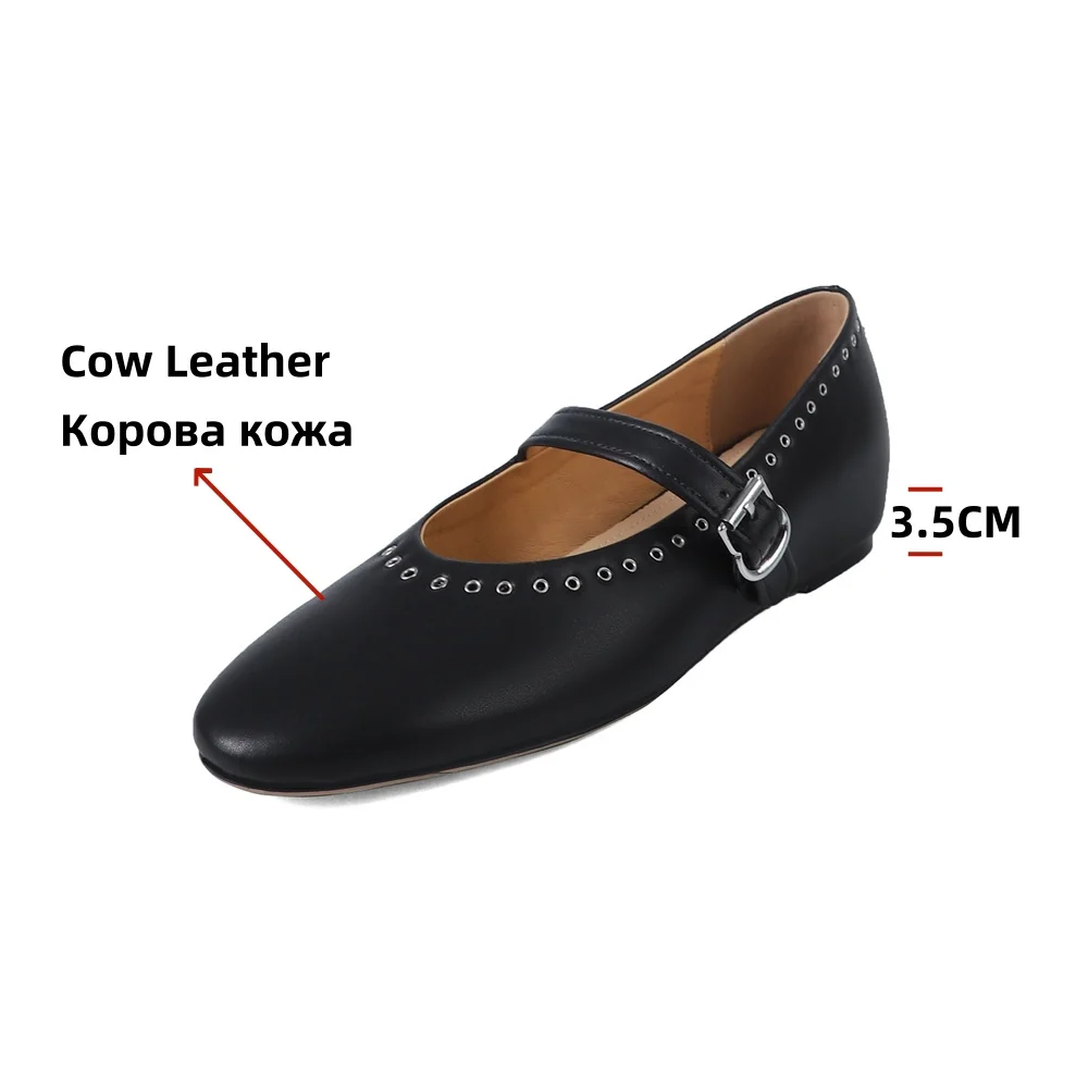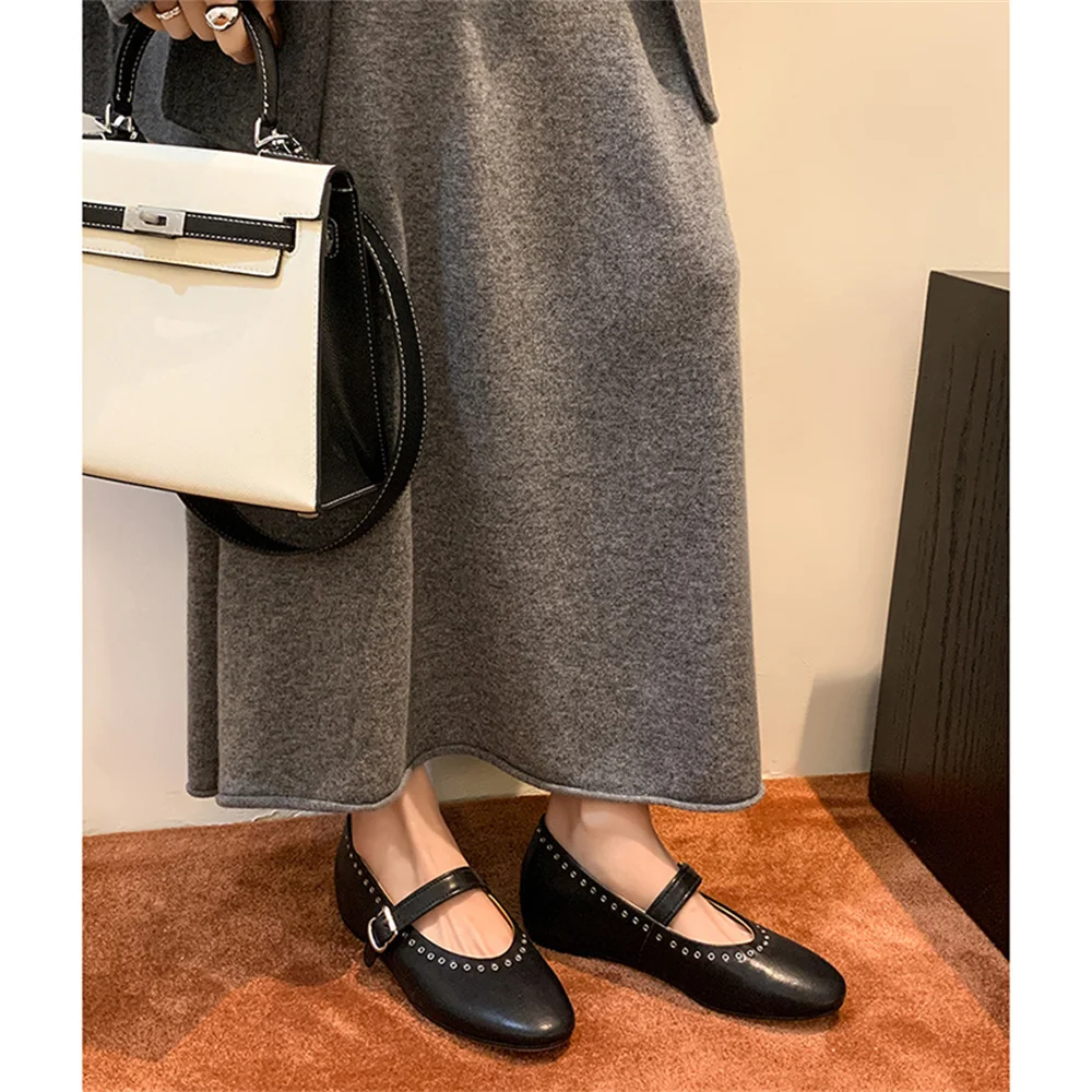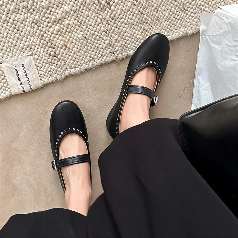 LBSFY - Women Rivets Pumps Cute Mary Jane Low Heel 3.5cm Casual Loafers Leather Buckles Moccasins Shoes Woman Casual Shoes
