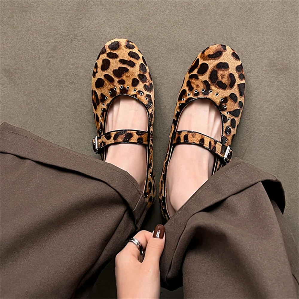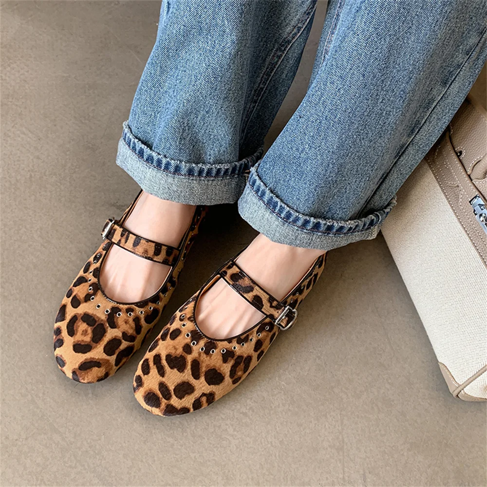 LBSFY  -  Women Rivets Pumps Cute Mary Jane Low Heel 3.5cm Casual Loafers Leather Buckles Moccasins Shoes Woman Casual Shoes