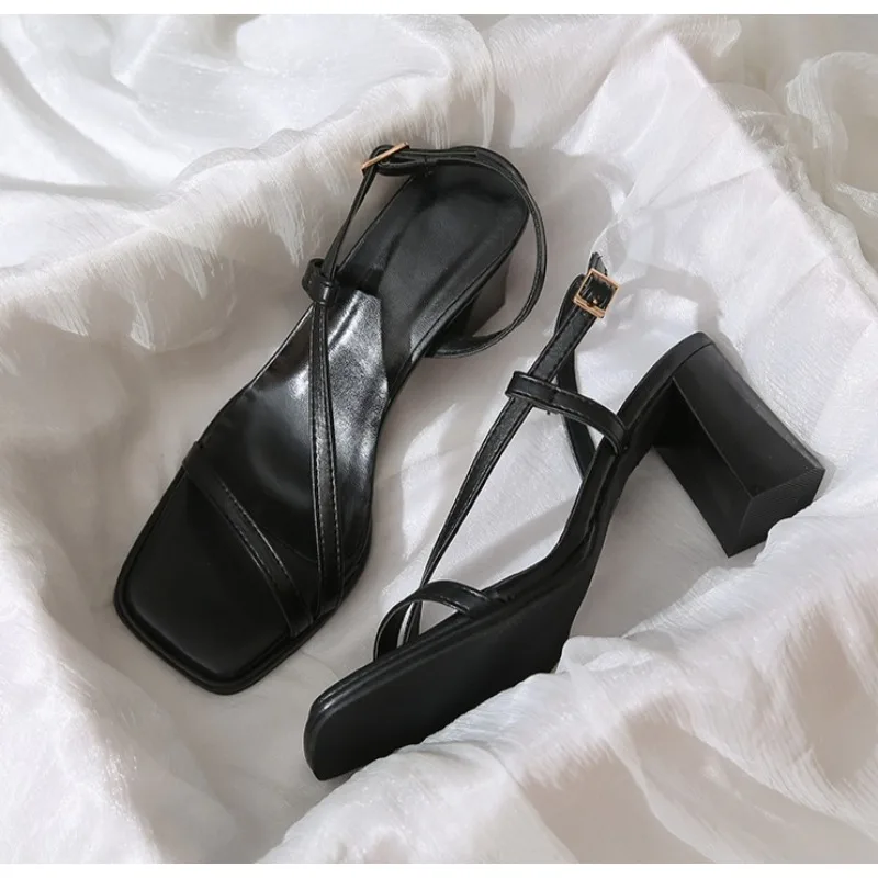 LBSFY -Women Sandals Ladies Square Heels Elegant Summer Slippers Outside Cross Tied Leather Female Slides 2025 Fashion Woman Sandals
