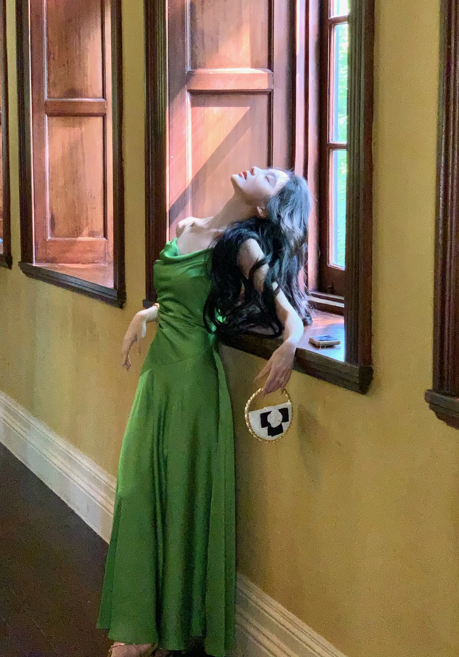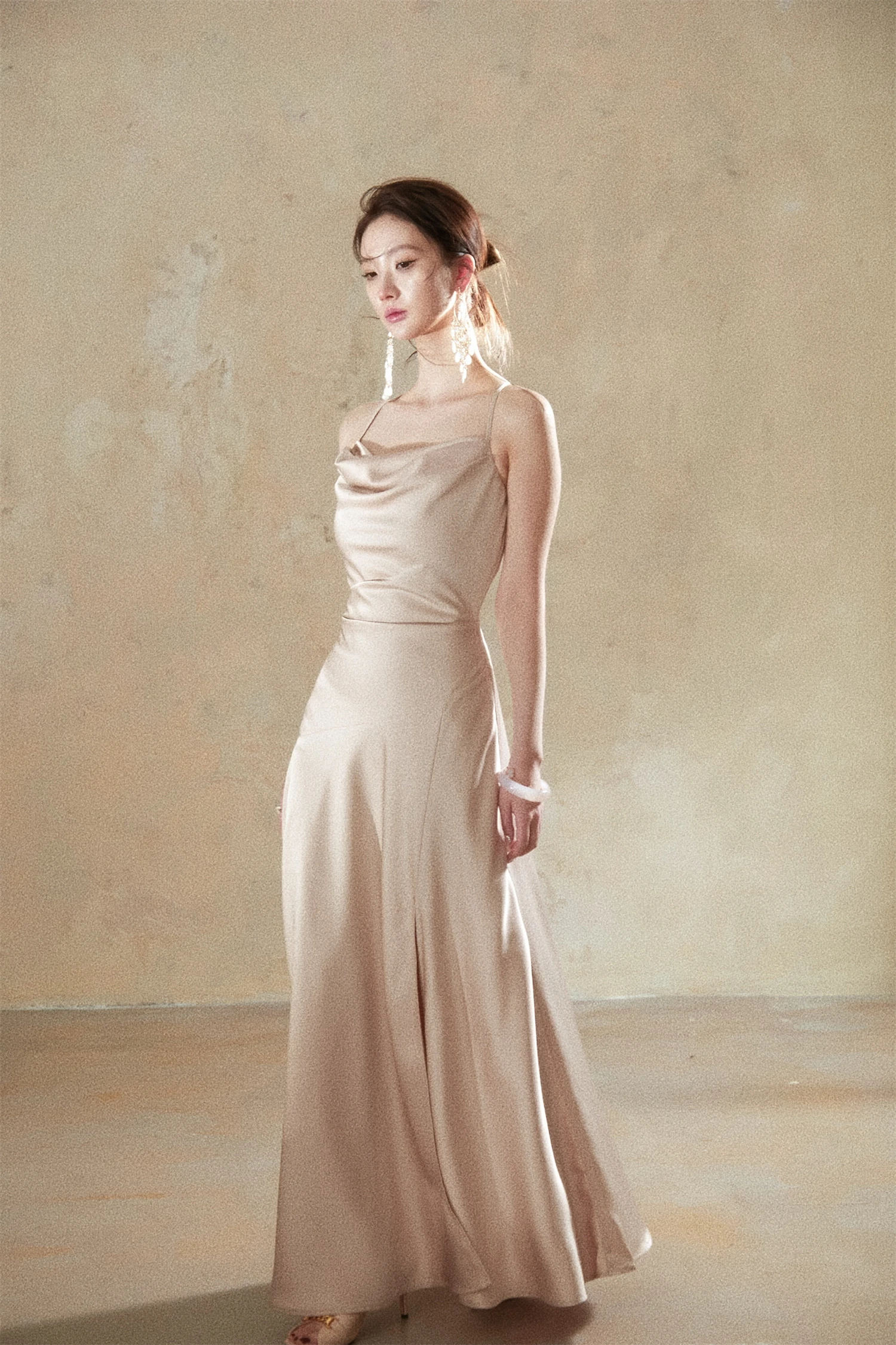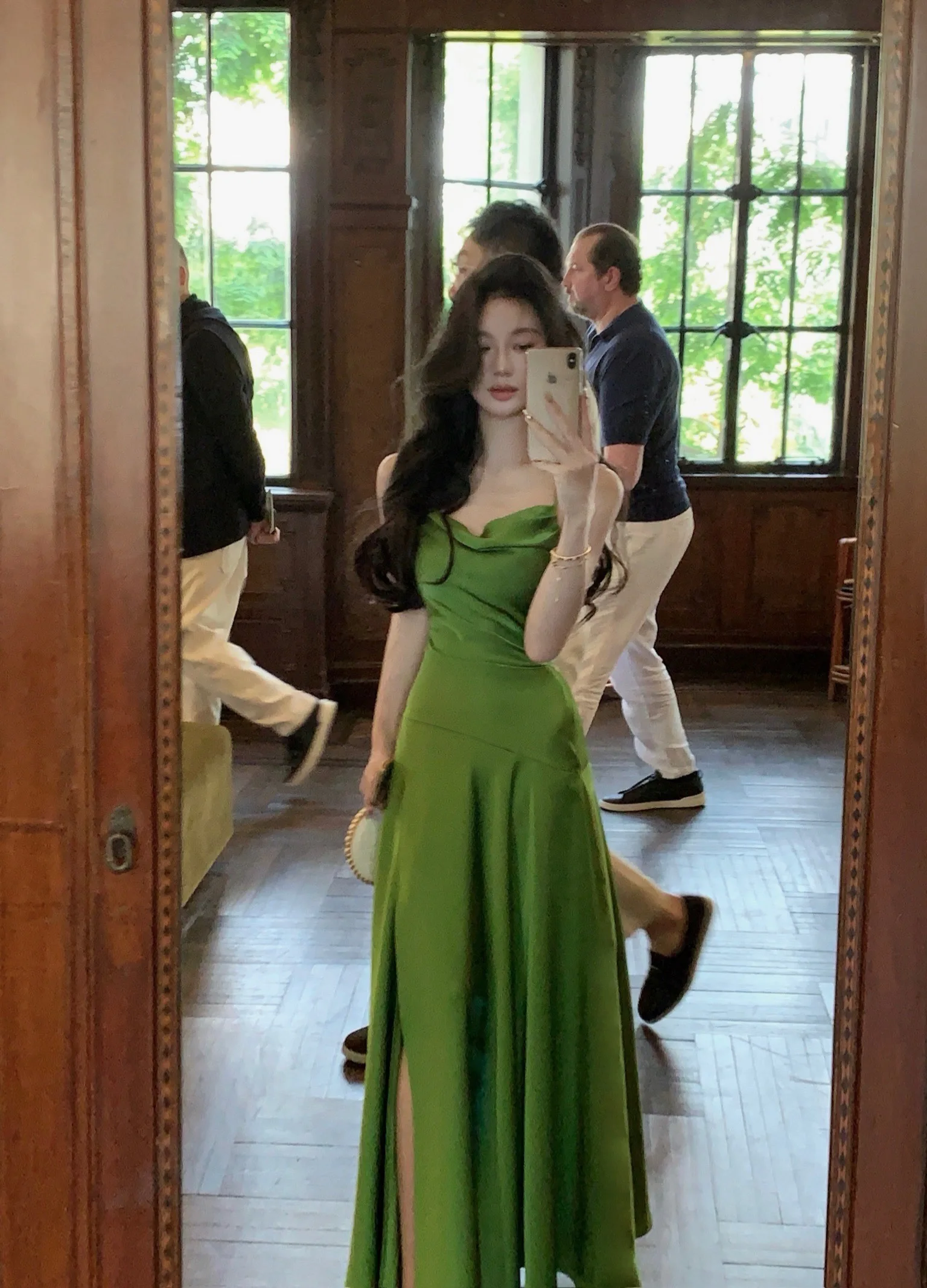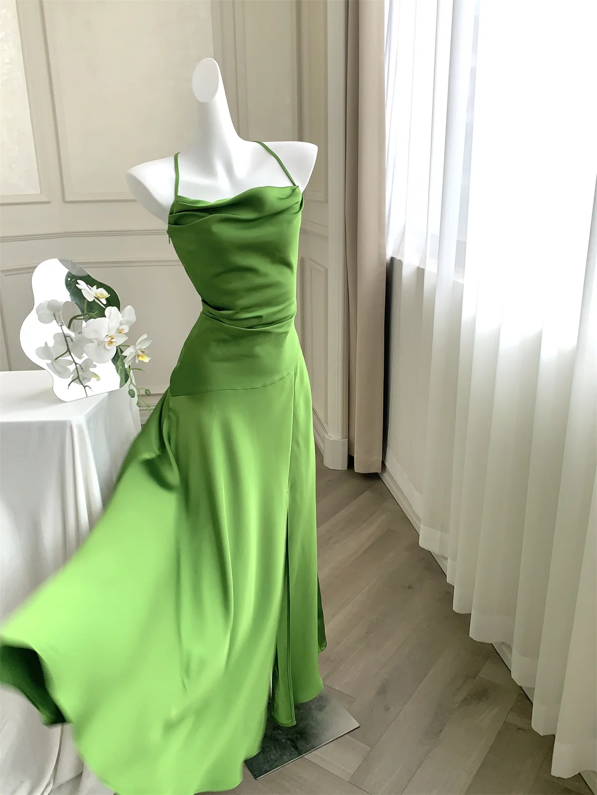 LBSFY -Women Sexy Party Elegant Pleated Dress 2025 French New Fashion Vacation Evening Solid Satin Split Sleeveless Long Dress Summer
