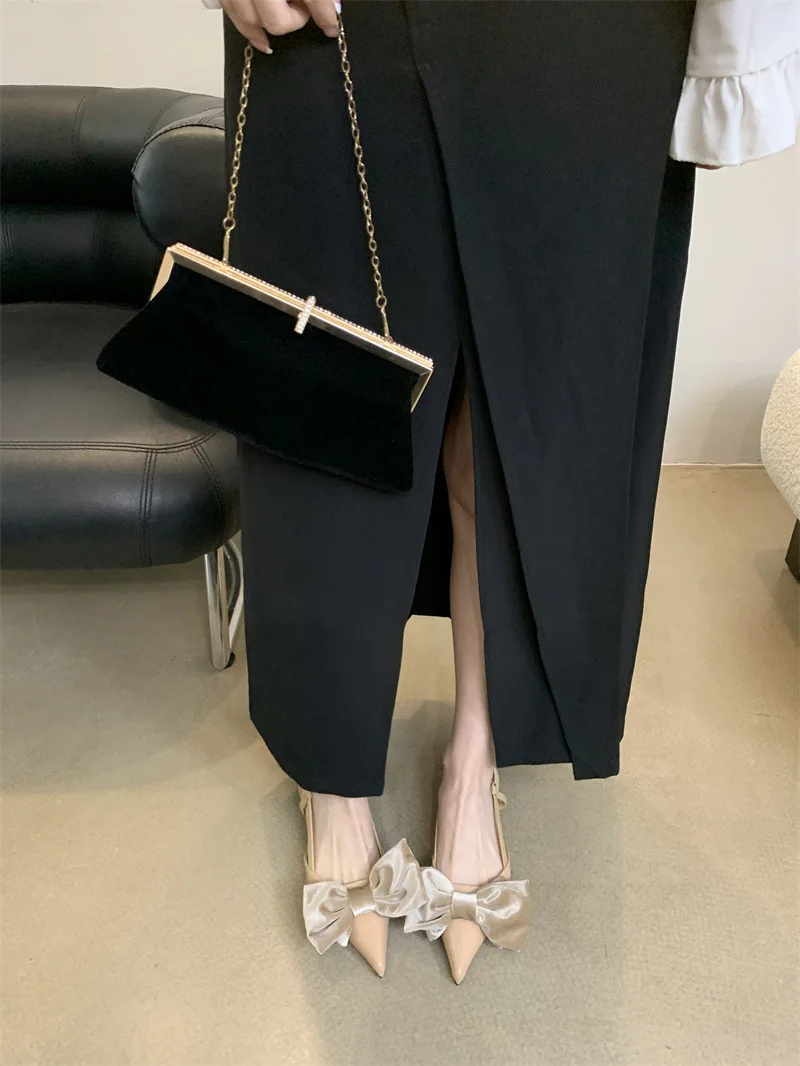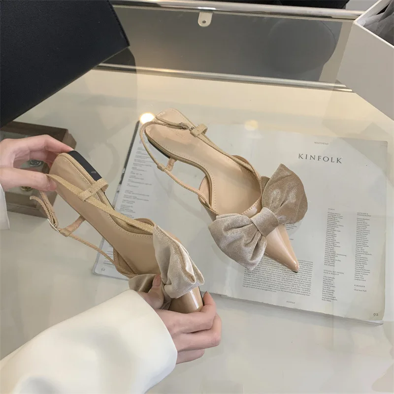 LBSFY - Women Shoes 2024 Summer Flat Sandals Ladies Fashion Designers Elegant Party Dress Bow Tie Pointed Slingback Sandals Women Pumps