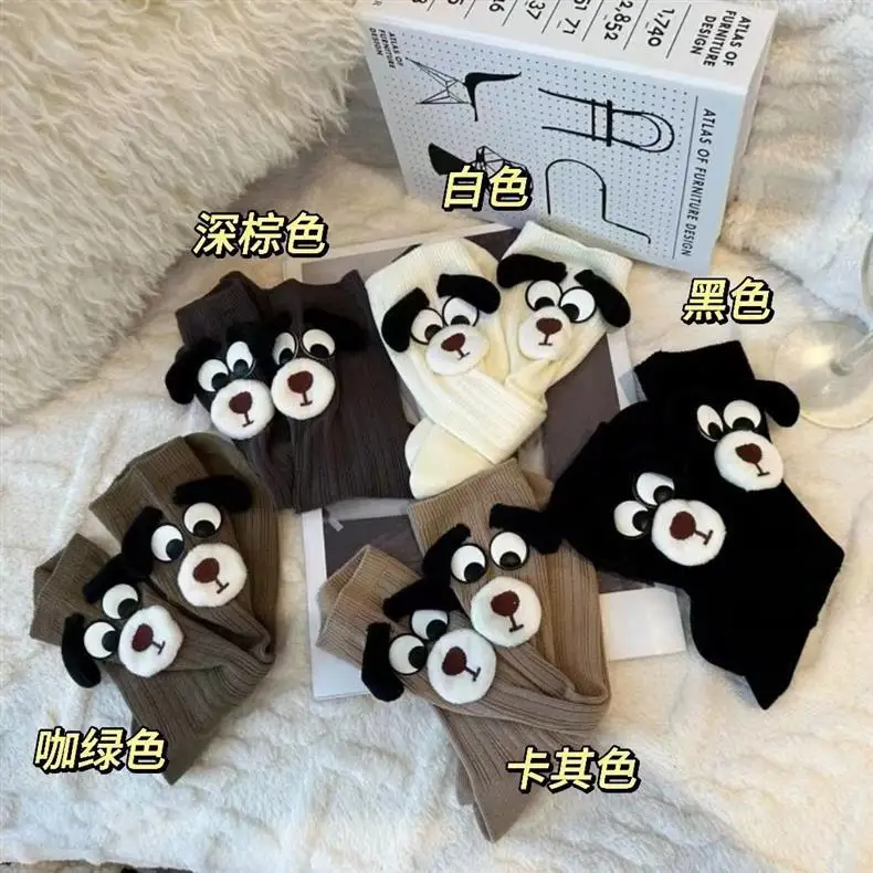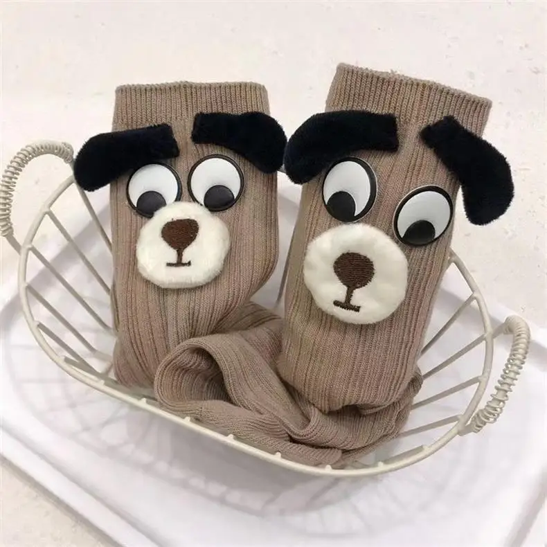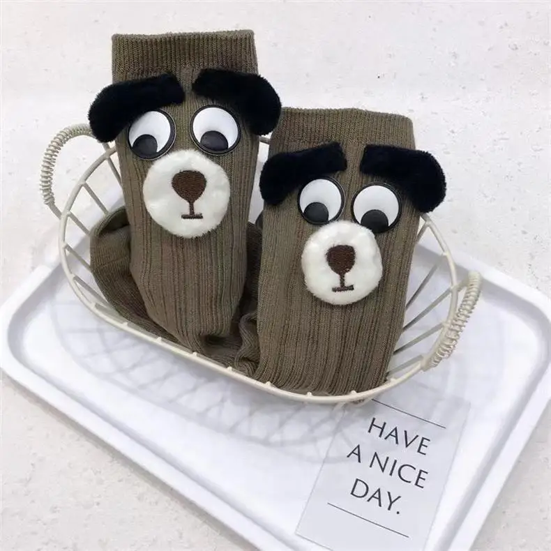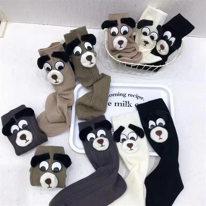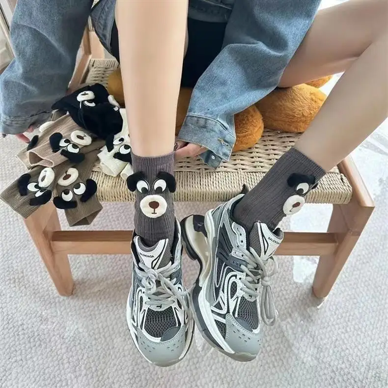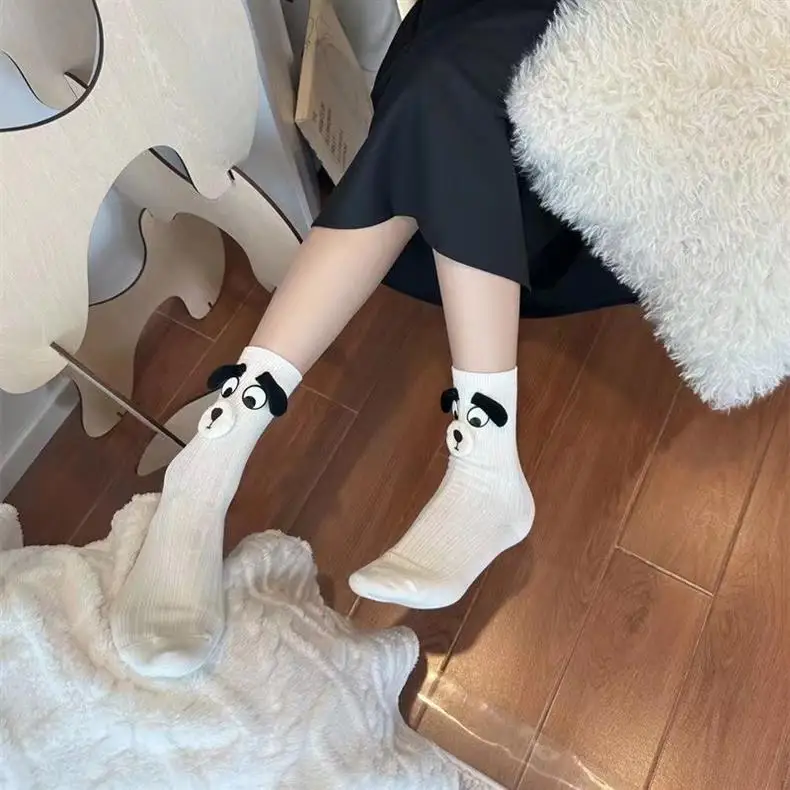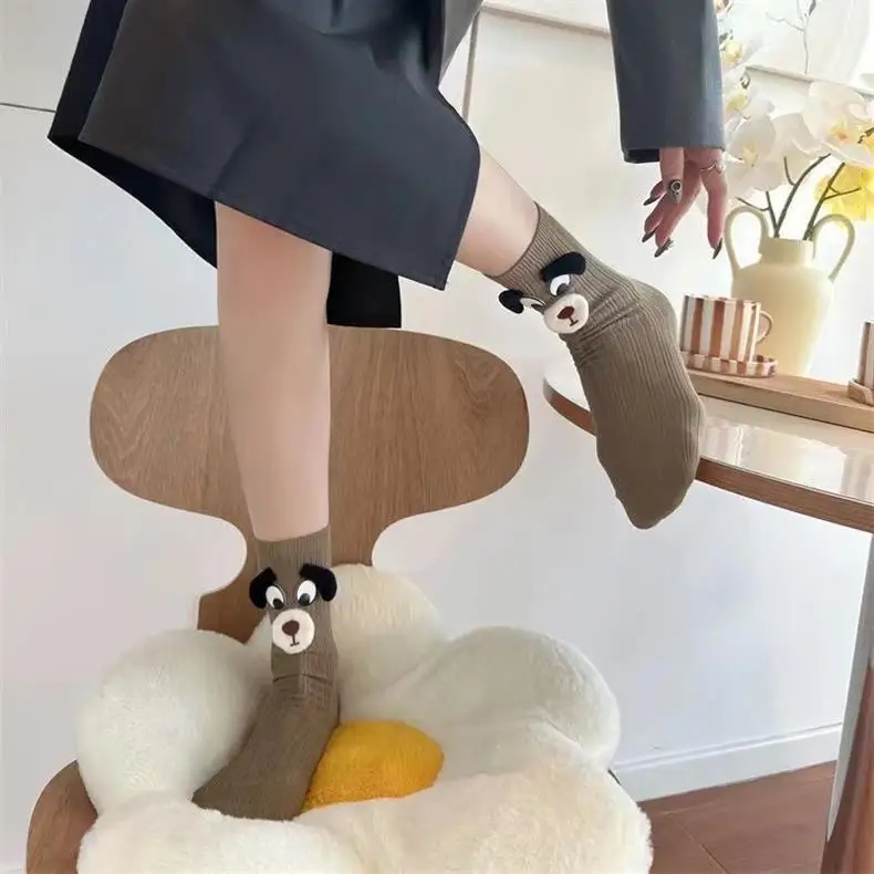 Lbsfy Women Socks Cotton Female Spring Autumn Harajuku Stereoscopic Cute Kawaii Cartoon Puppy Sweet Style Middle Tube Short Crew Socks