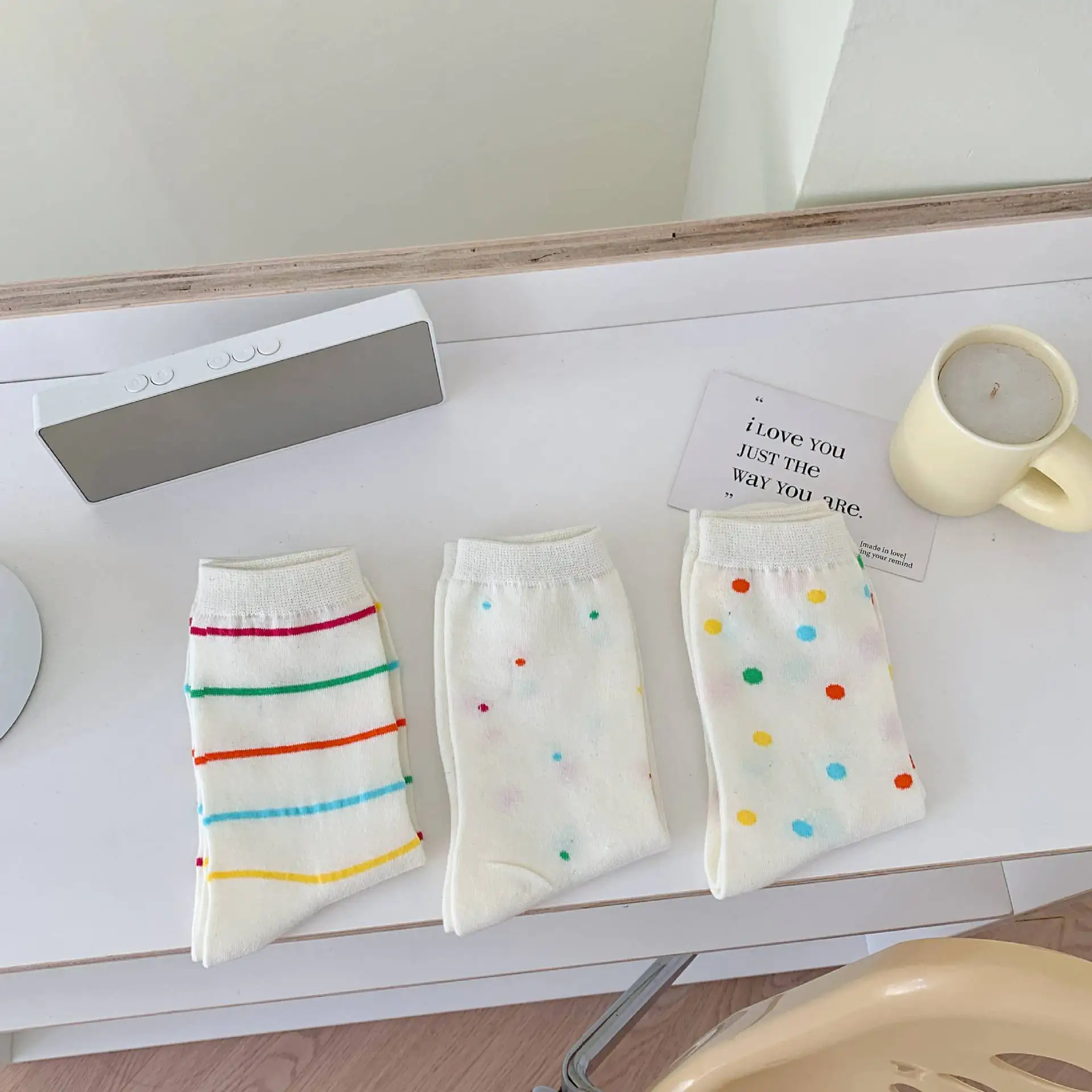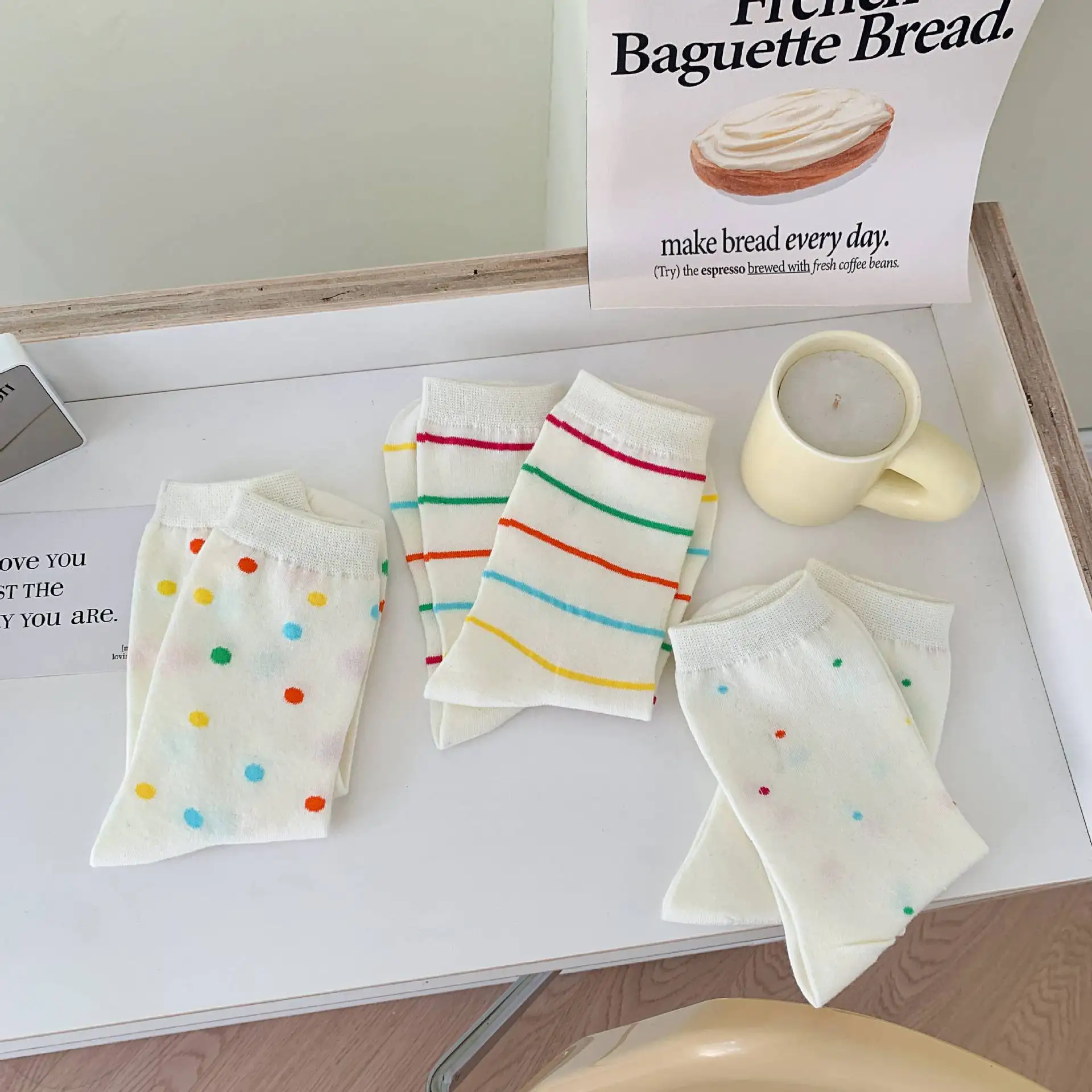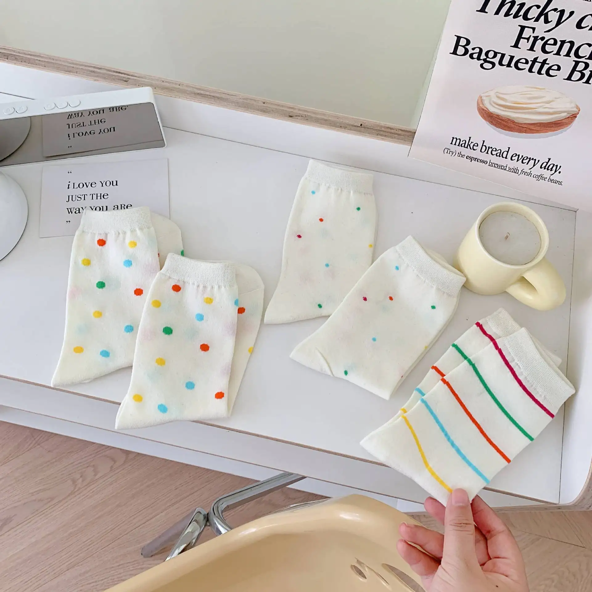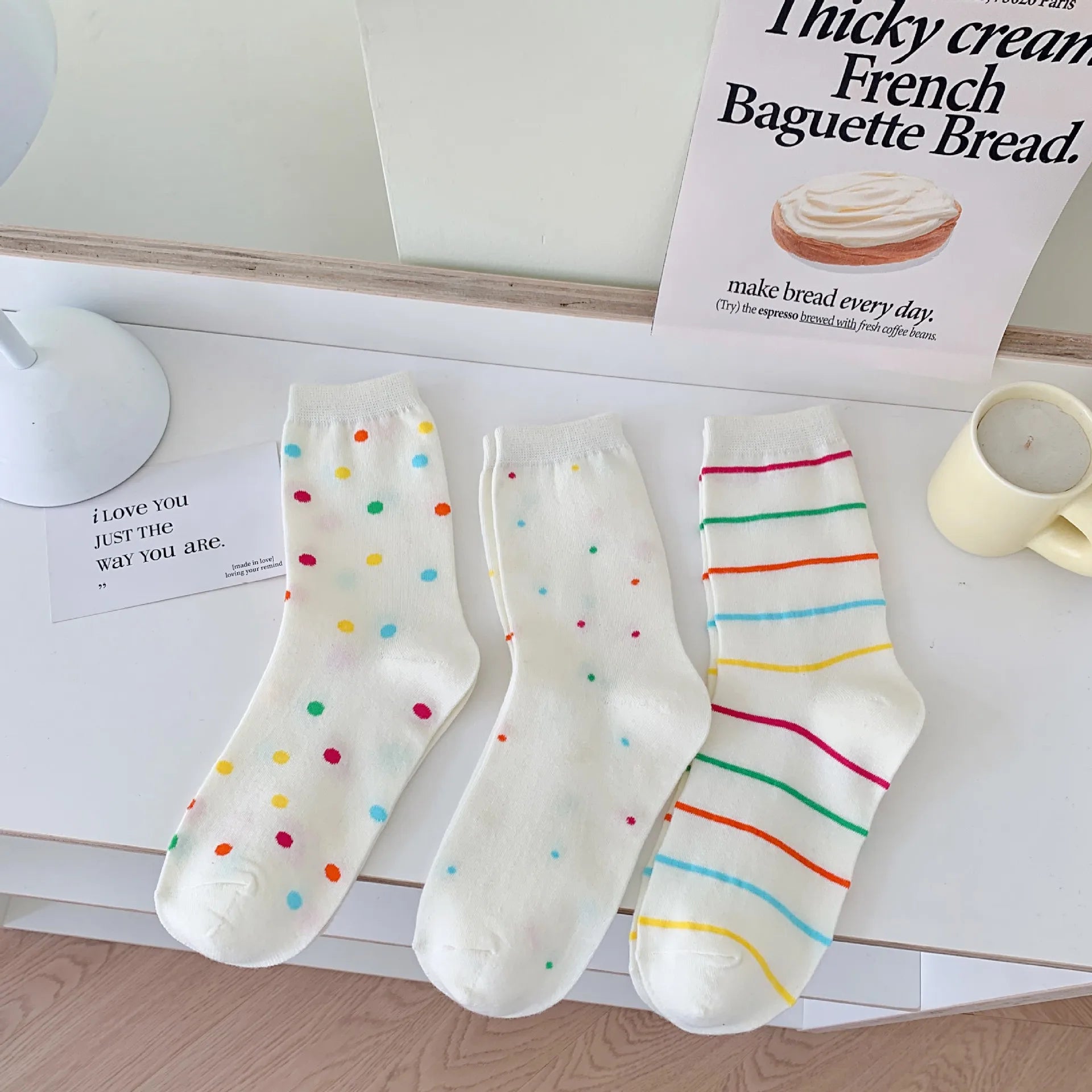 Lbsfy Women Socks Cotton Spring Autumn Female Polka Dot Striped Girls Gift White Sweet Style Simple Lovely Cute Kawaii Mid-tube Socks