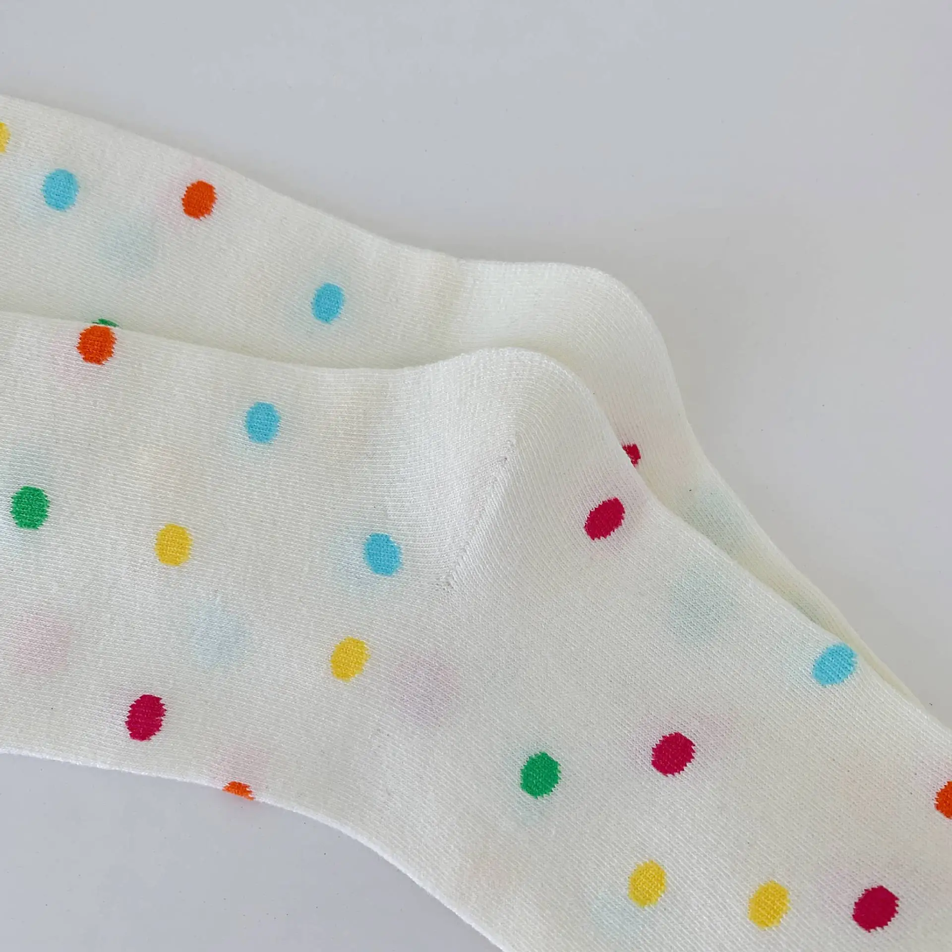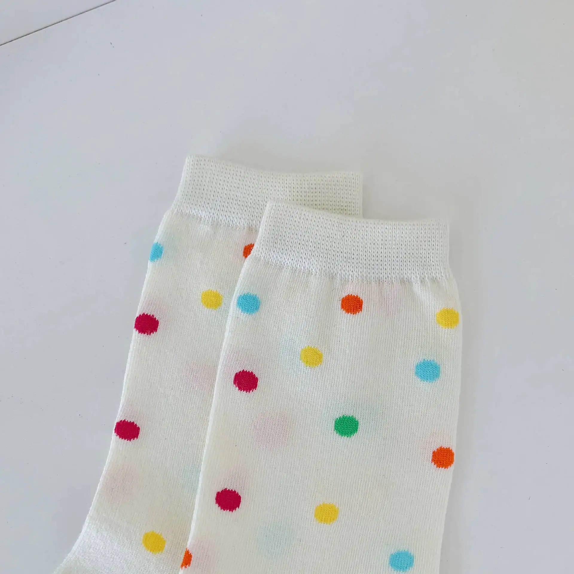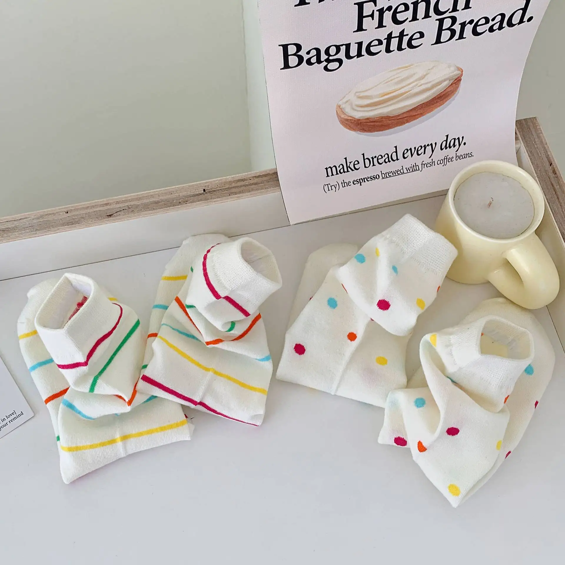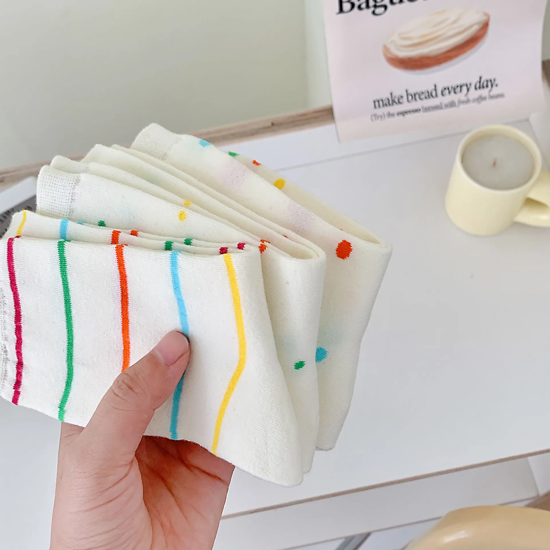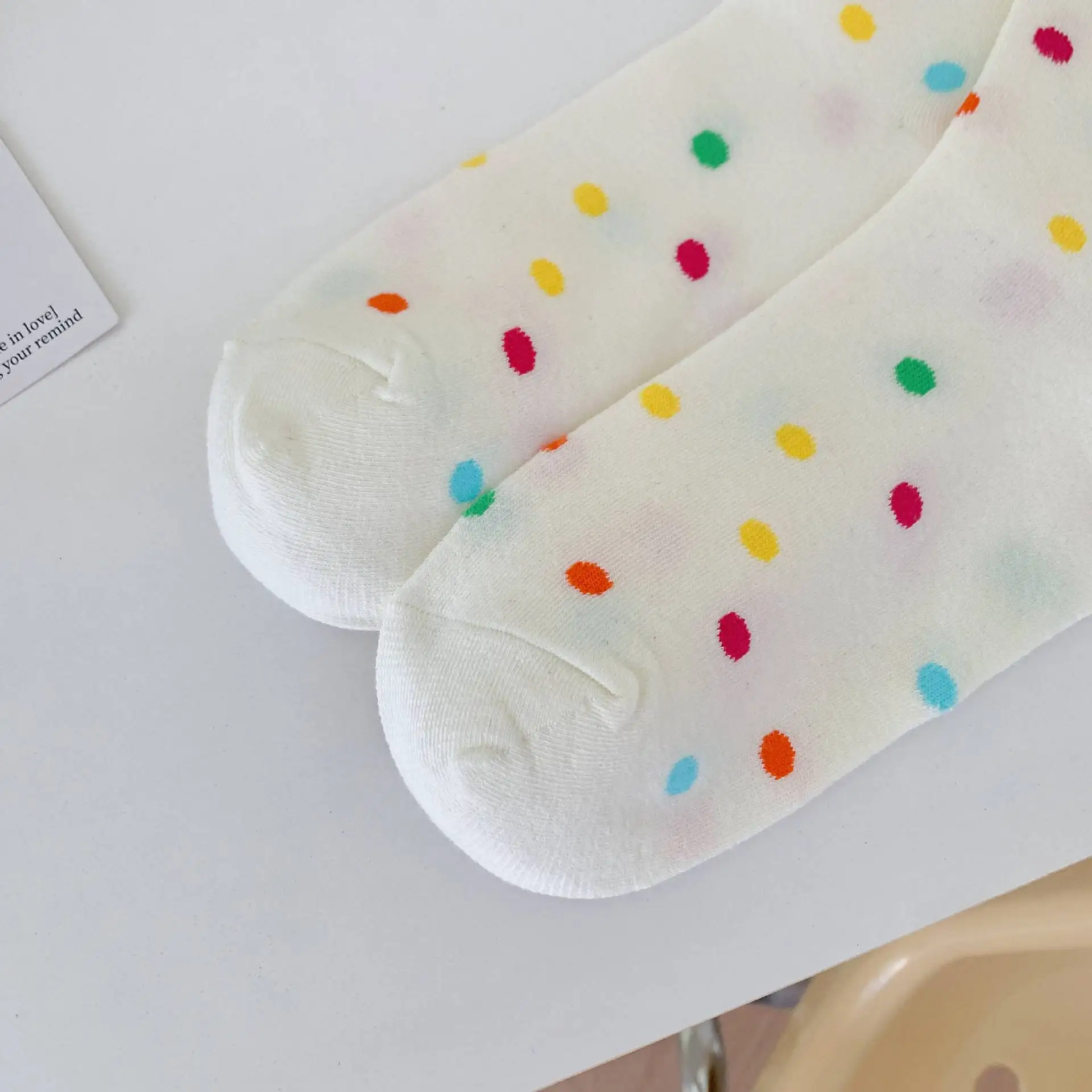 Lbsfy Women Socks Cotton Spring Autumn Female Polka Dot Striped Girls Gift White Sweet Style Simple Lovely Cute Kawaii Mid-tube Socks