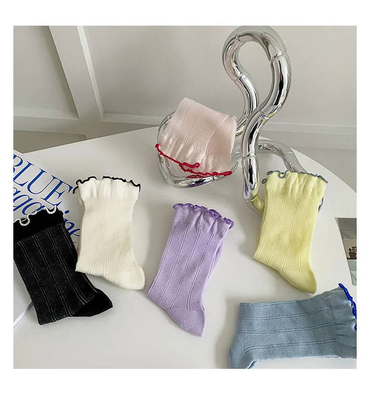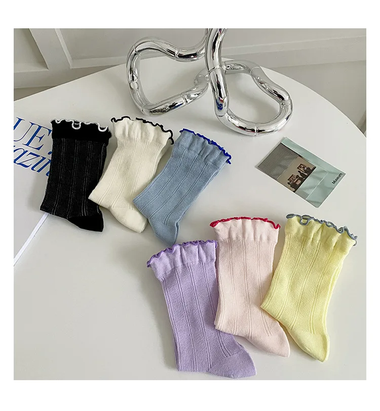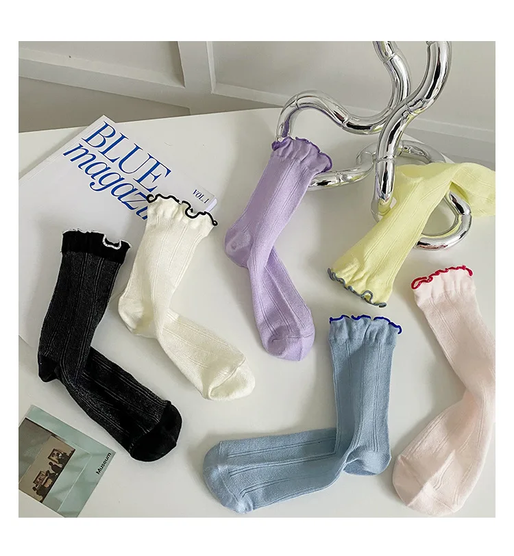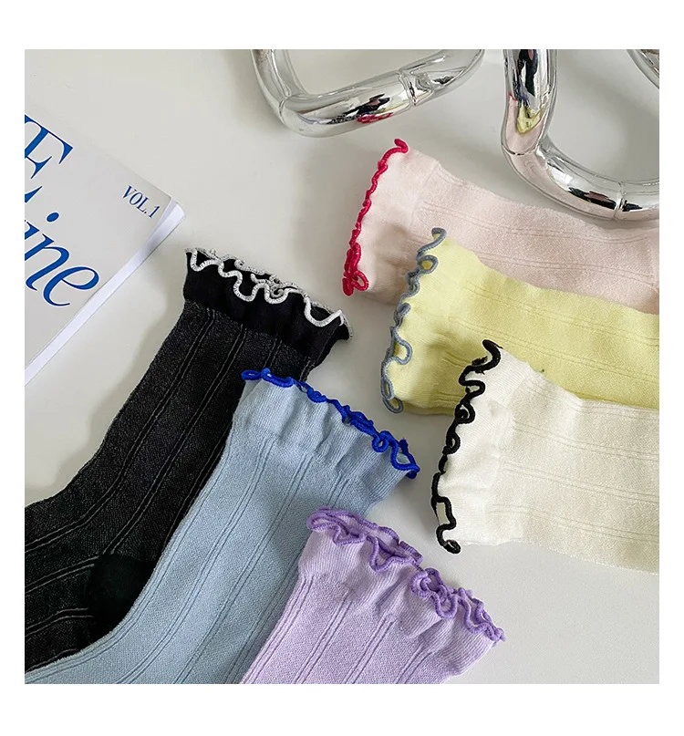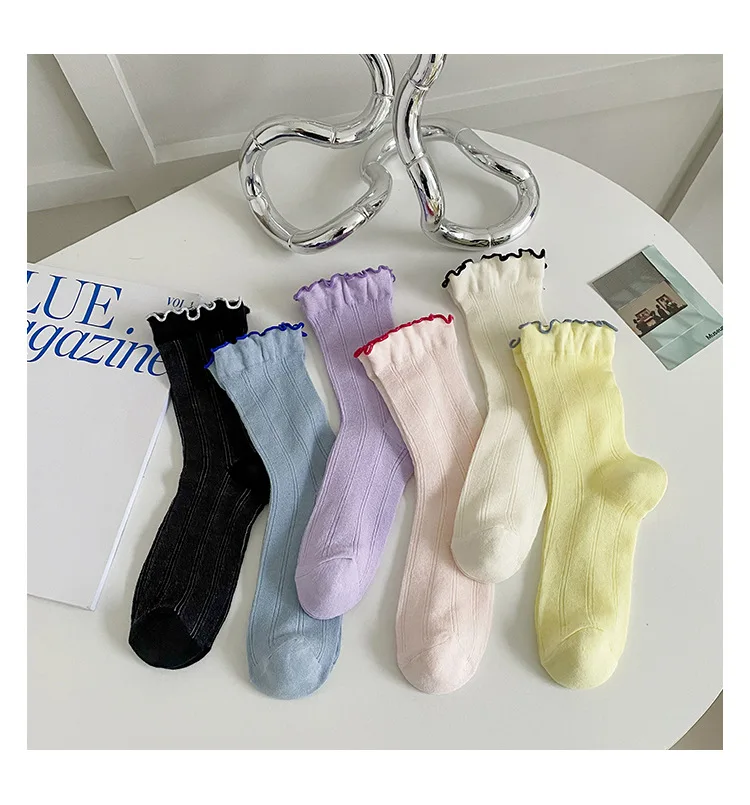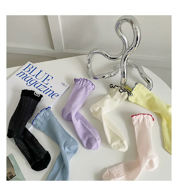 Lbsfy Women Socks High Quality Summer Fashion Casual Long Socks Solid Color Korean Style Waveselvedge Mesh Breathable Simple Thin