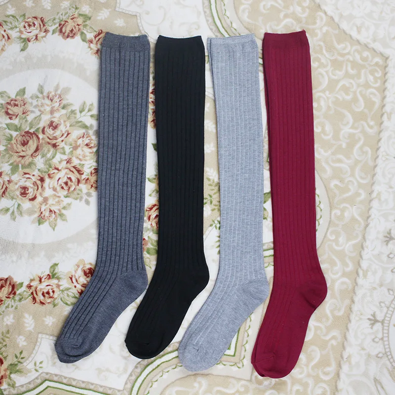Lbsfy Women Solid Color Cotton Thigh High Over The Knee Stockings for Lady Girl Black White Grey Warm Long Stocking Sexy JK Y2K Medias