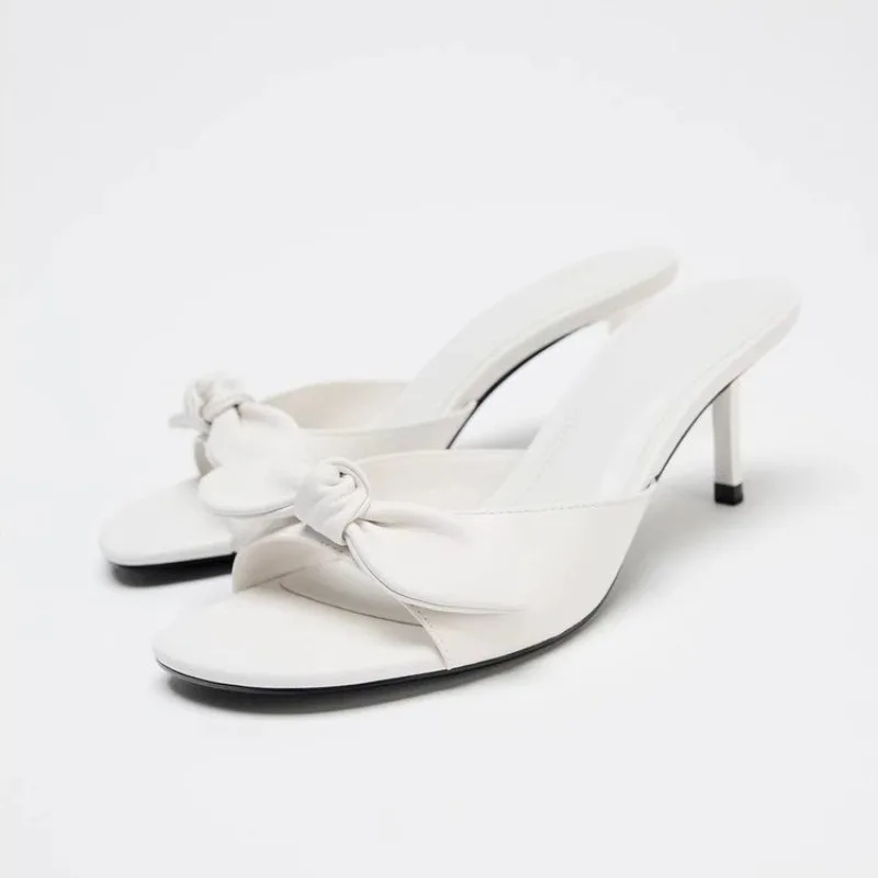 LBSFY -Women Summer New Luxury Brand White High Heel Sandals Versatile Simple Slim Heel Sandals Slippers