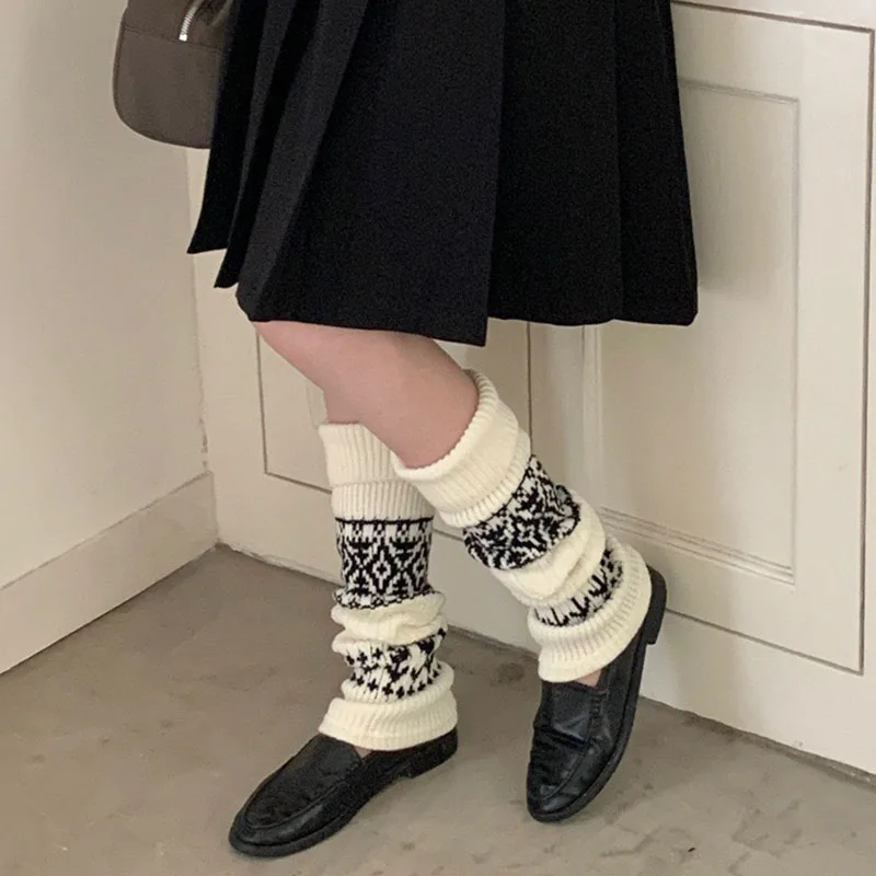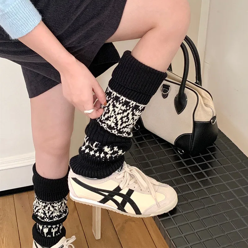 Lbsfy Women Vintage Knit Wool Leggings Covers Socks Korea Women Y2K Tulip Calf Socks Winter Thickened Leg Warmers Harajuku Leg Covers