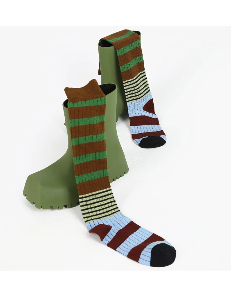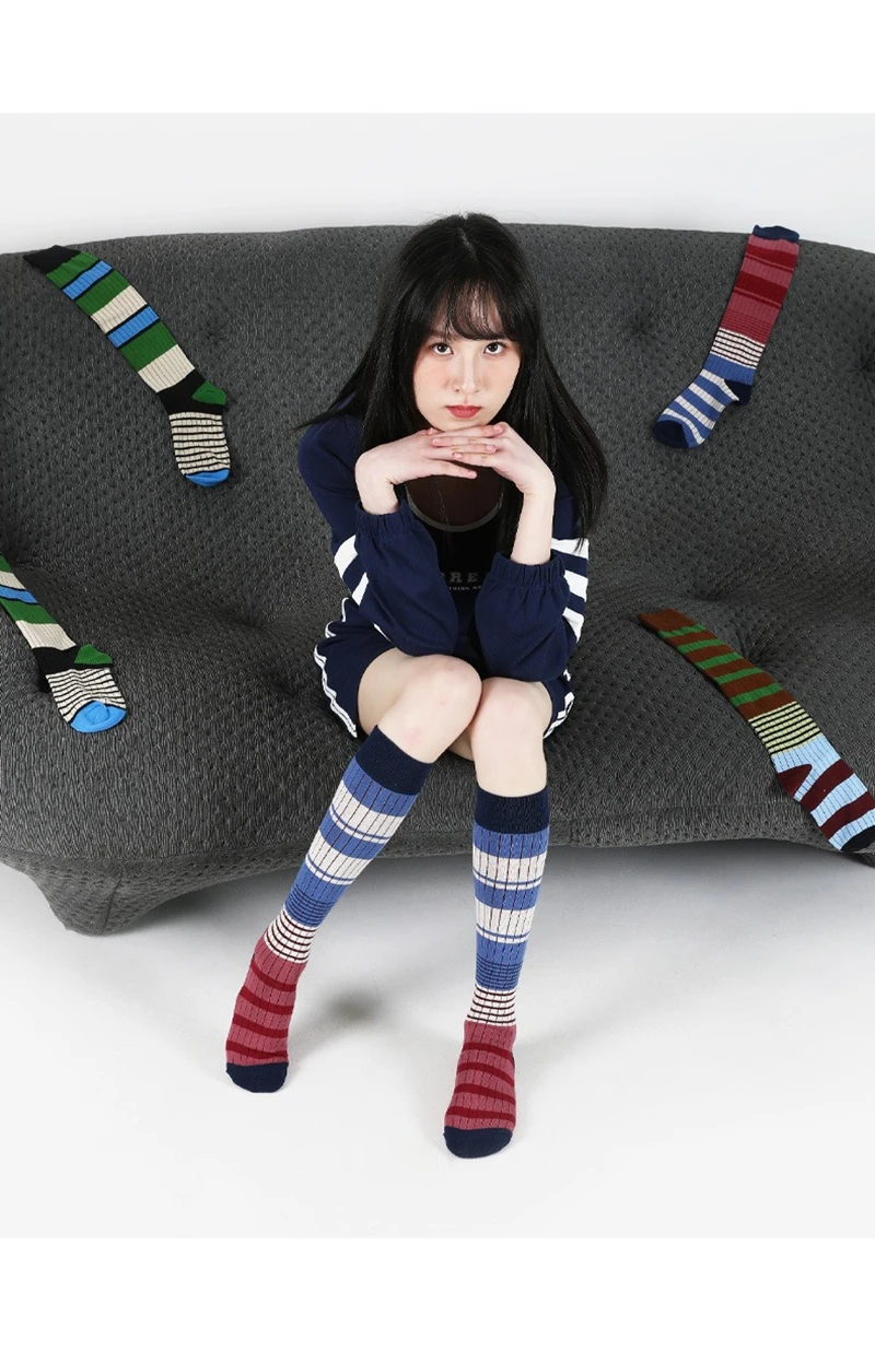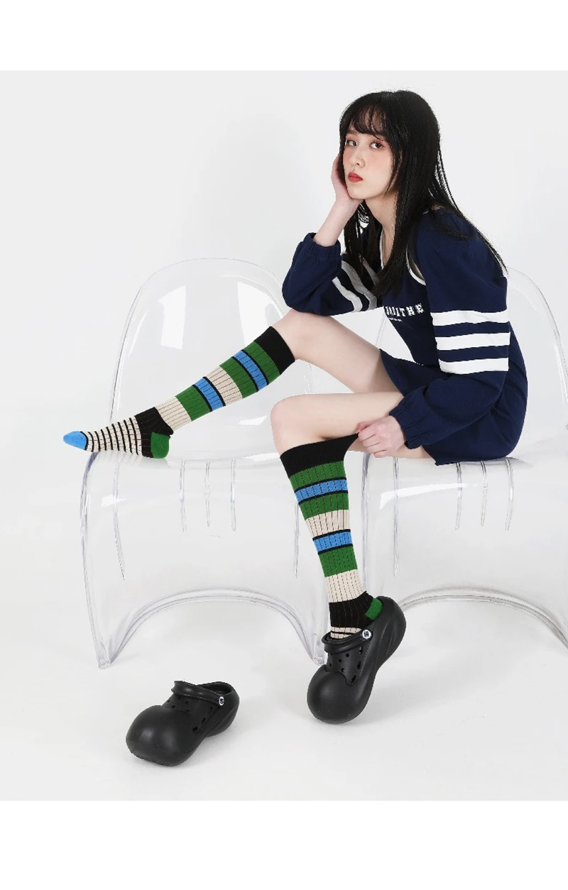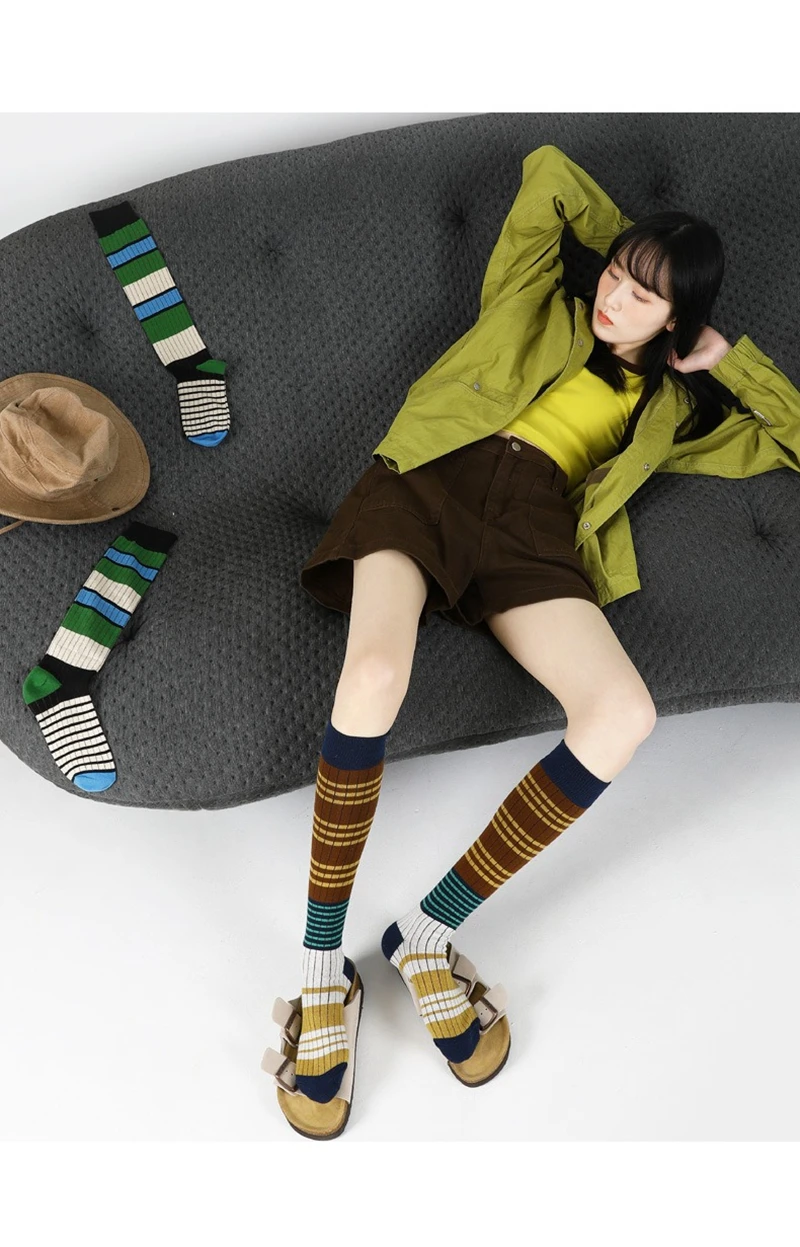 Lbsfy Women Winter Knee-high Stockings Fashion Colorful Stripes Long Sock Female Sports Cotton Stocking Japanese Student Socks Woman