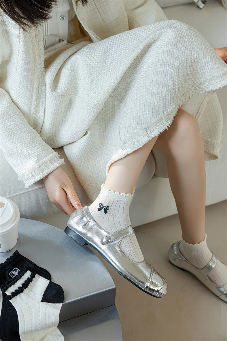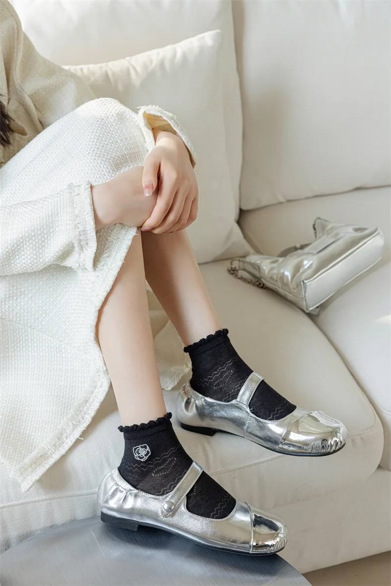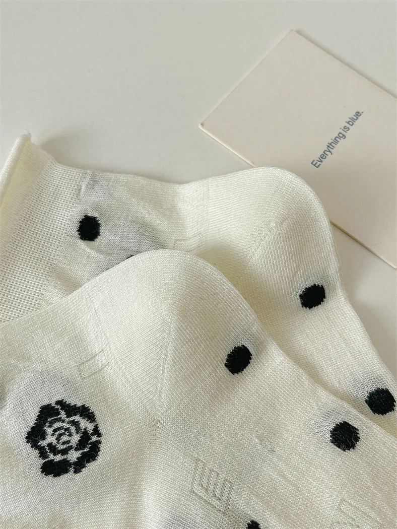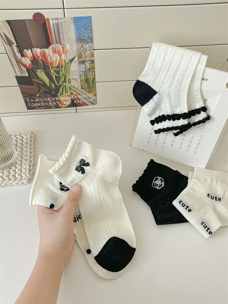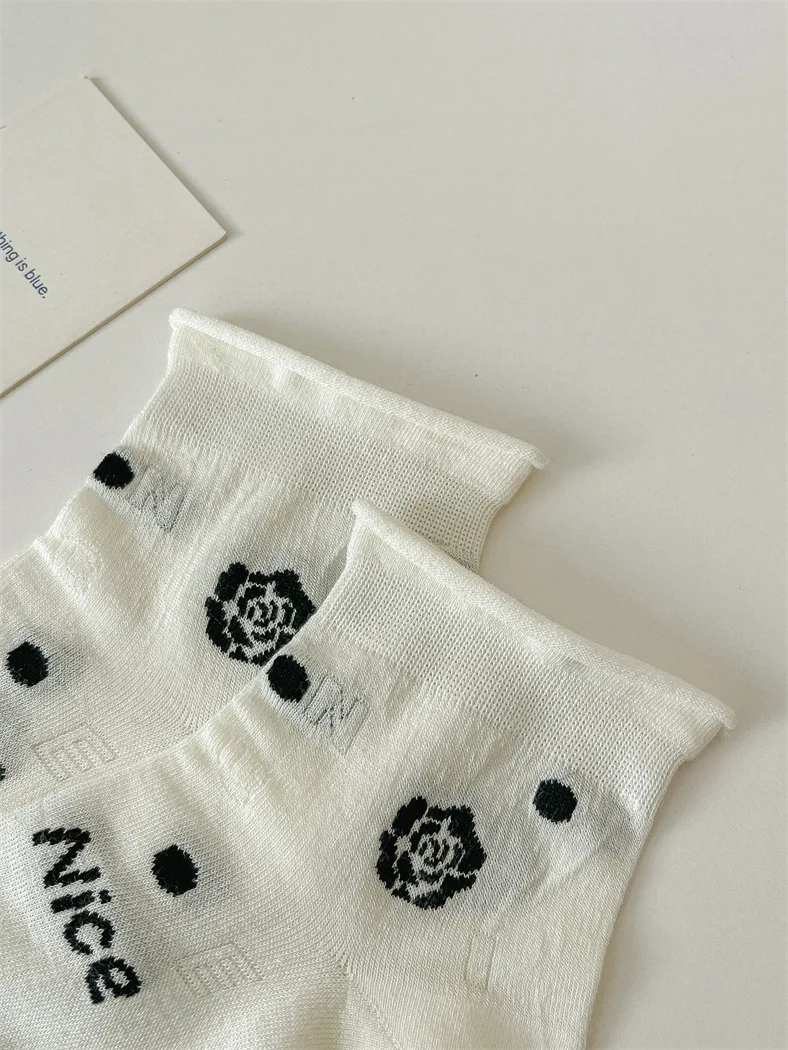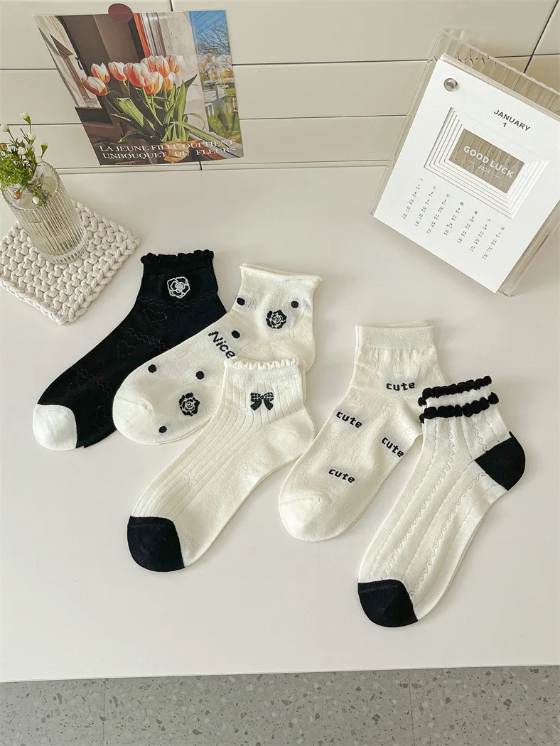 Lbsfy Women's Ankle Socks Spring Summer Black White Fashion Cute Kawaii Lolita Thin Cotton Mesh Breathable Low Tube Socks Calcetines
