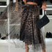 LBSFY - Women's Fashion Club Party Slim Half Skirts New Autumn Leopard Print Pleated Skirts Elegant Elastic High Waist Mesh Long Skirt