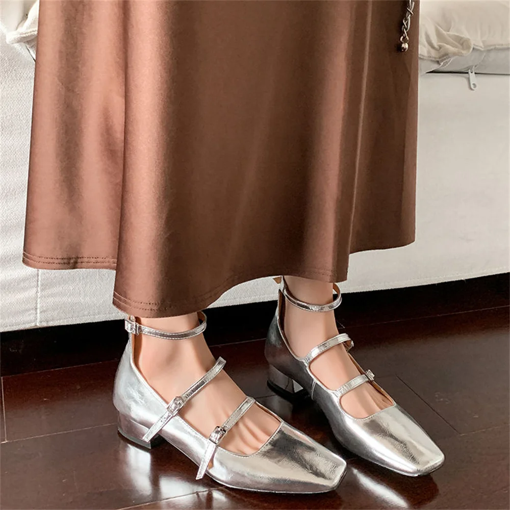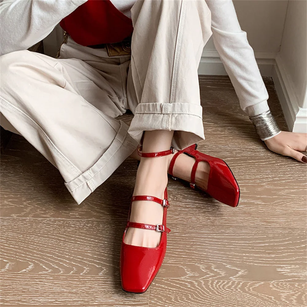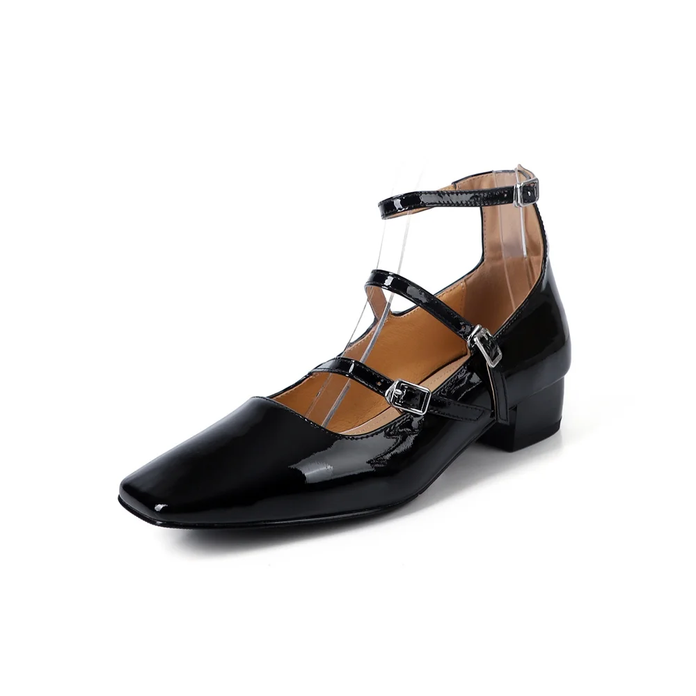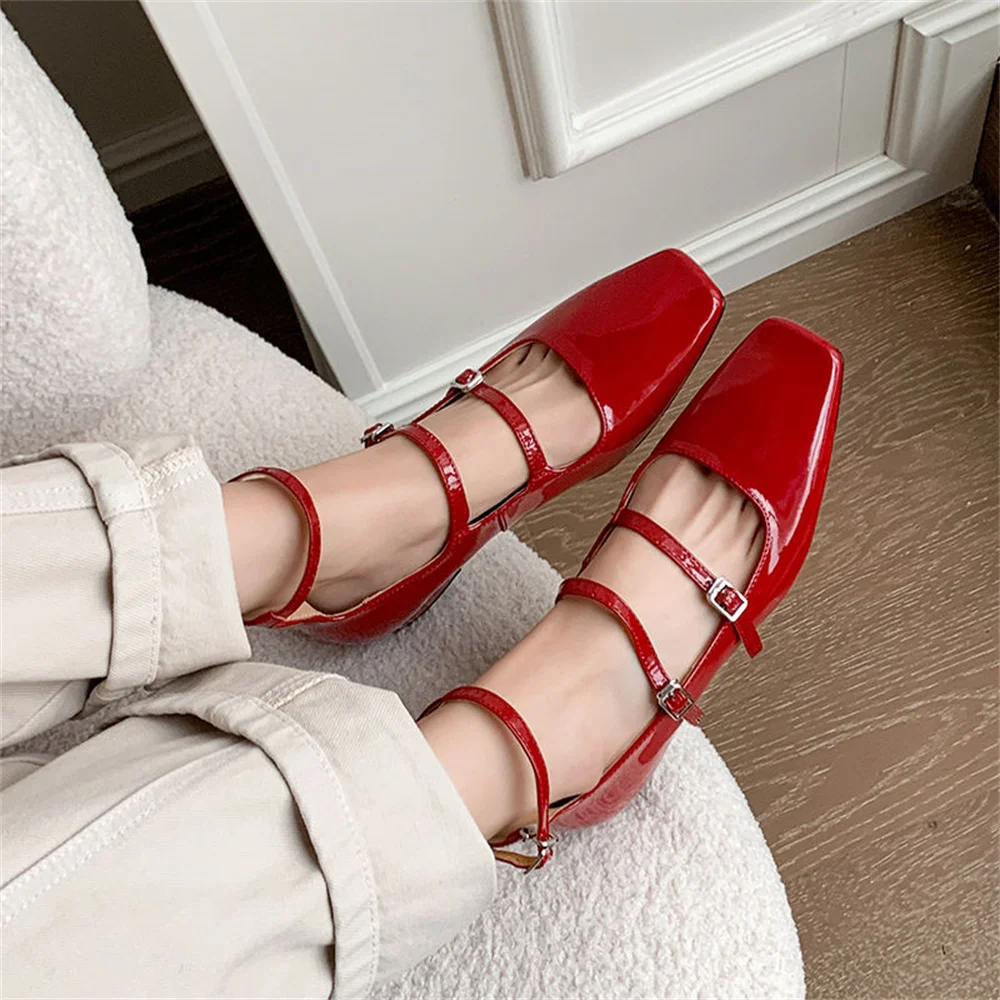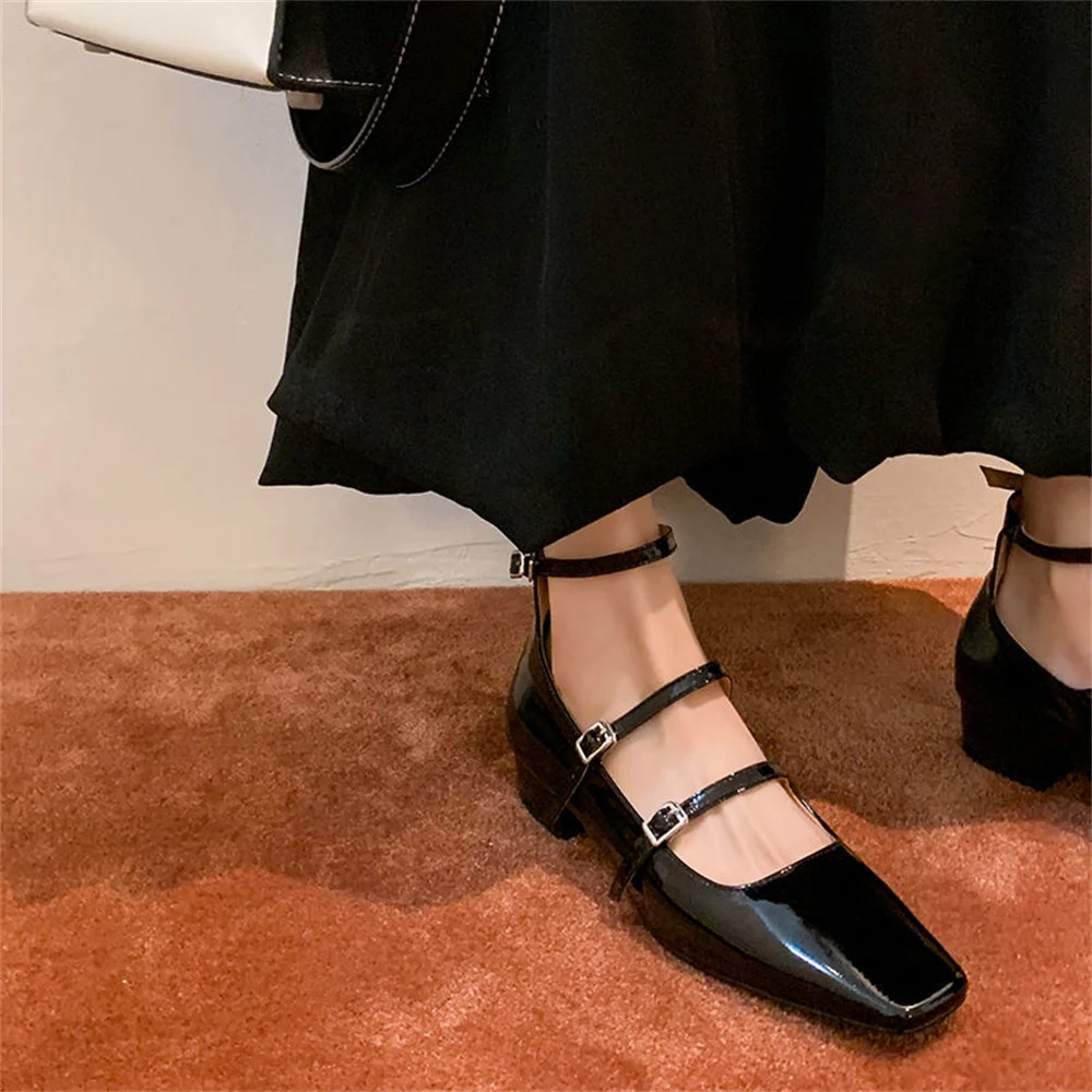 LBSFY  -  Women's High Heels Casual Shoes Mary Jane Patent Leather Thick Heels Spring Summer Party Buckles Wedding Shoes Woman