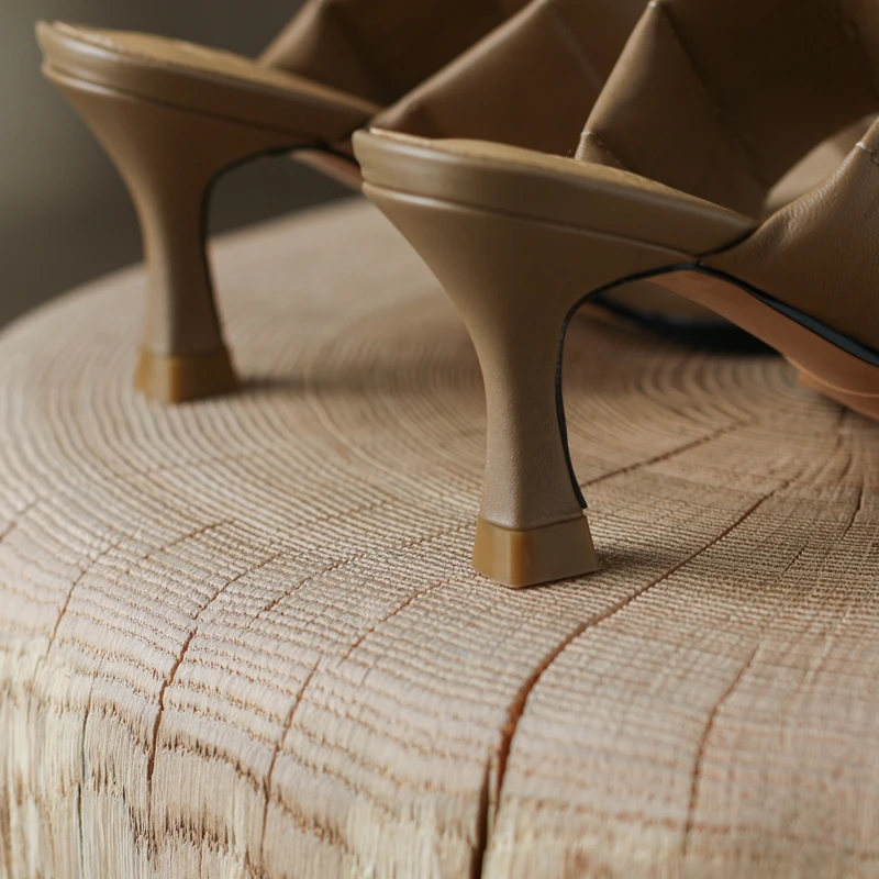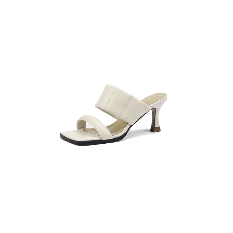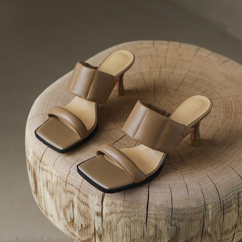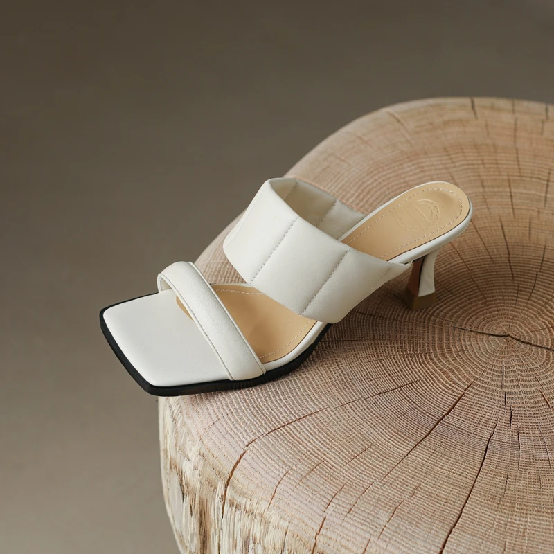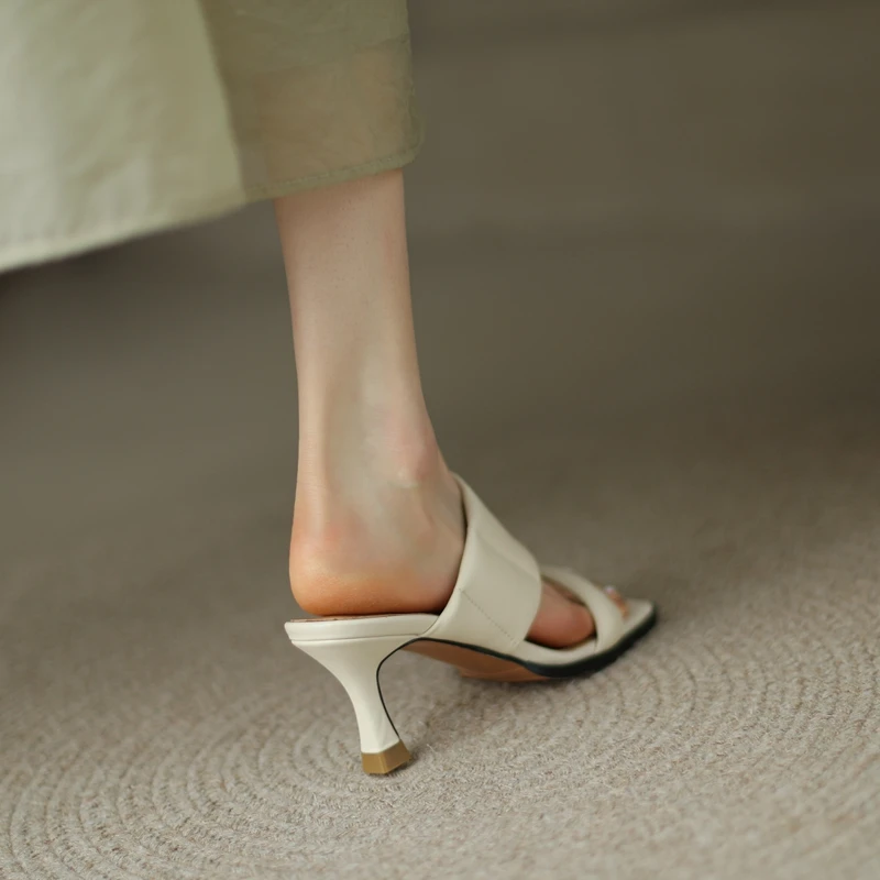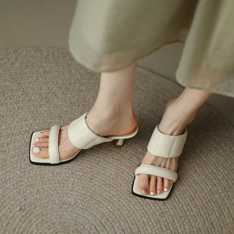 LBSFY - Women's New Summer European and American Leather Sheepskin Embroidered Thread Open Toe High Heel Large Slippers
