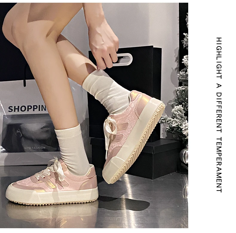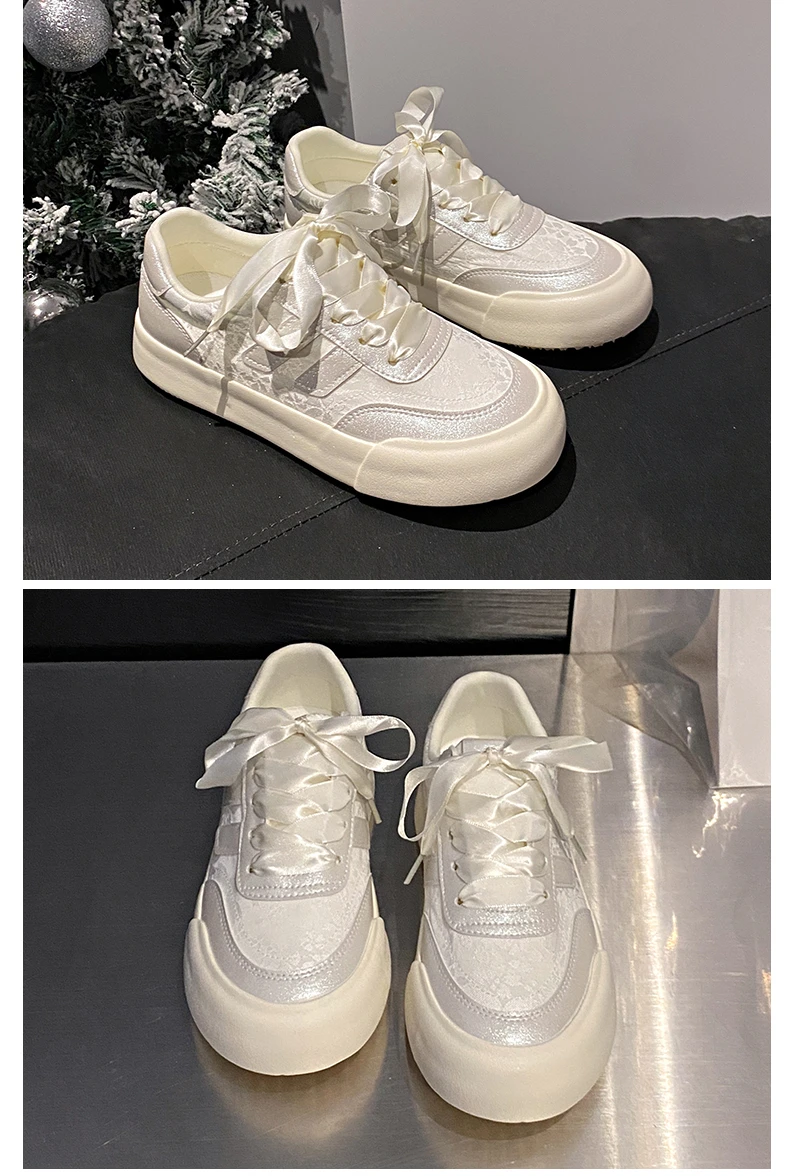 LBSFY - Women's Platform Sneakers White Comfort Play Fashion Shoes Casual Lace Up Cute Low Top Walking Tennis Flats for Ladies