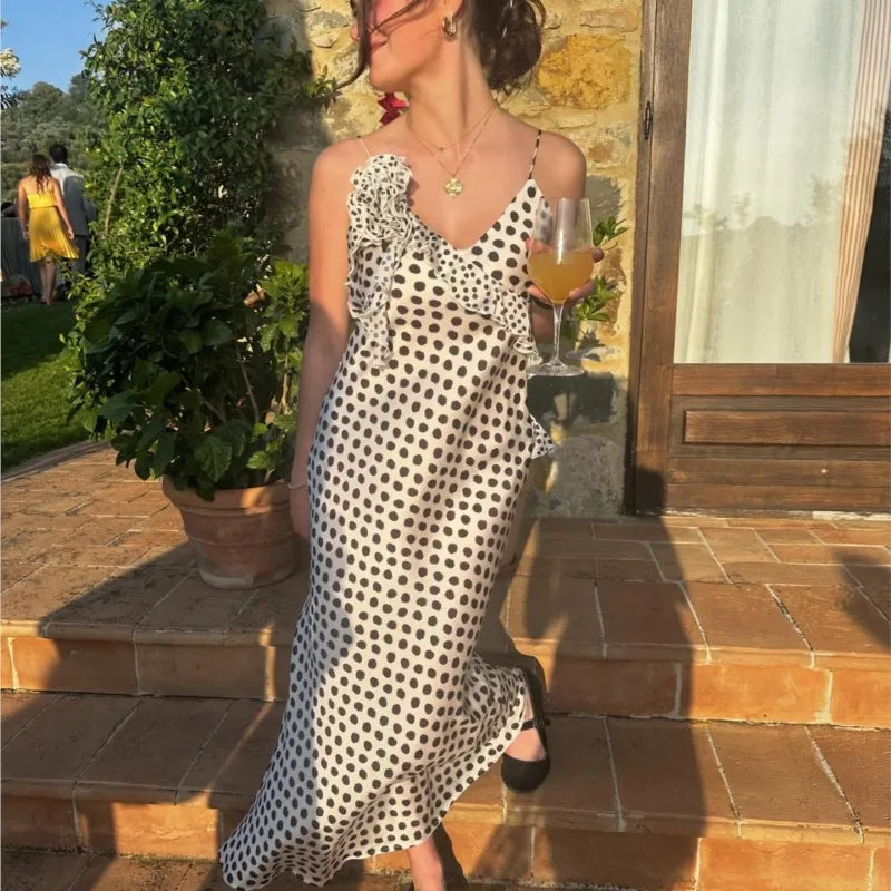 LBSFY -Women's Polka Dot Layered Decorative Satin Sleeveless Suspender Dress Ruffle Slim Chic Party Dress Fashion Female Clothing