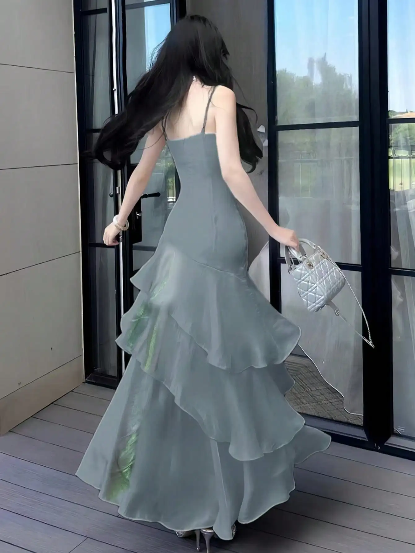 LBSFY -Women's Ruffles Elegant Sexy Mermaid Dresses French Princess Slim Fit Zipper Party Long Dress 2025 New Fashion Prom Evening Robe