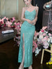 LBSFY -Women's Sexy Green Evening Dresses Slim Backless V-Neck Split Gown Long Dress Fashion Robe Birthday Party Vestidos Spring Autumn