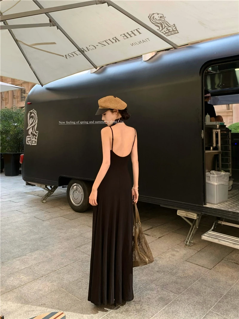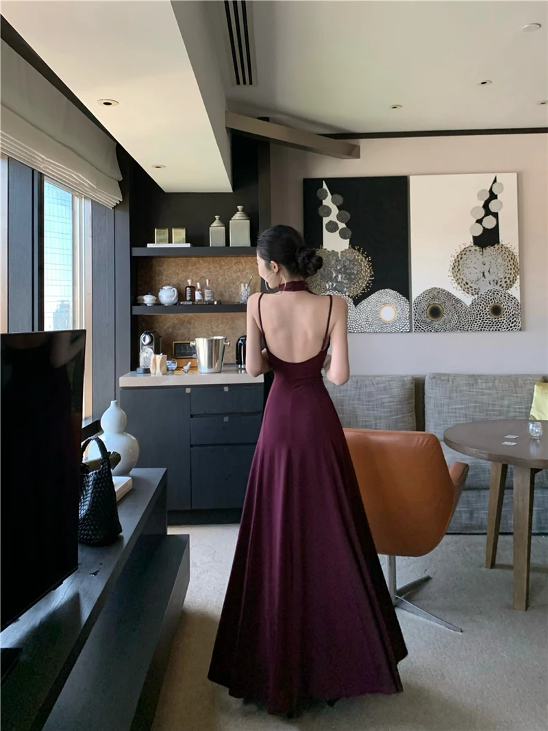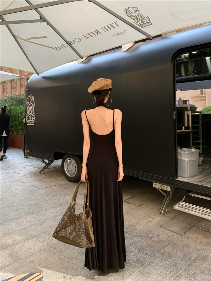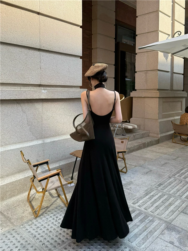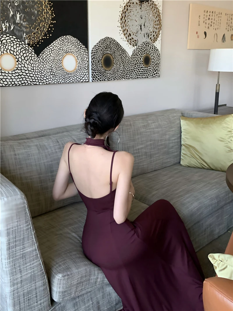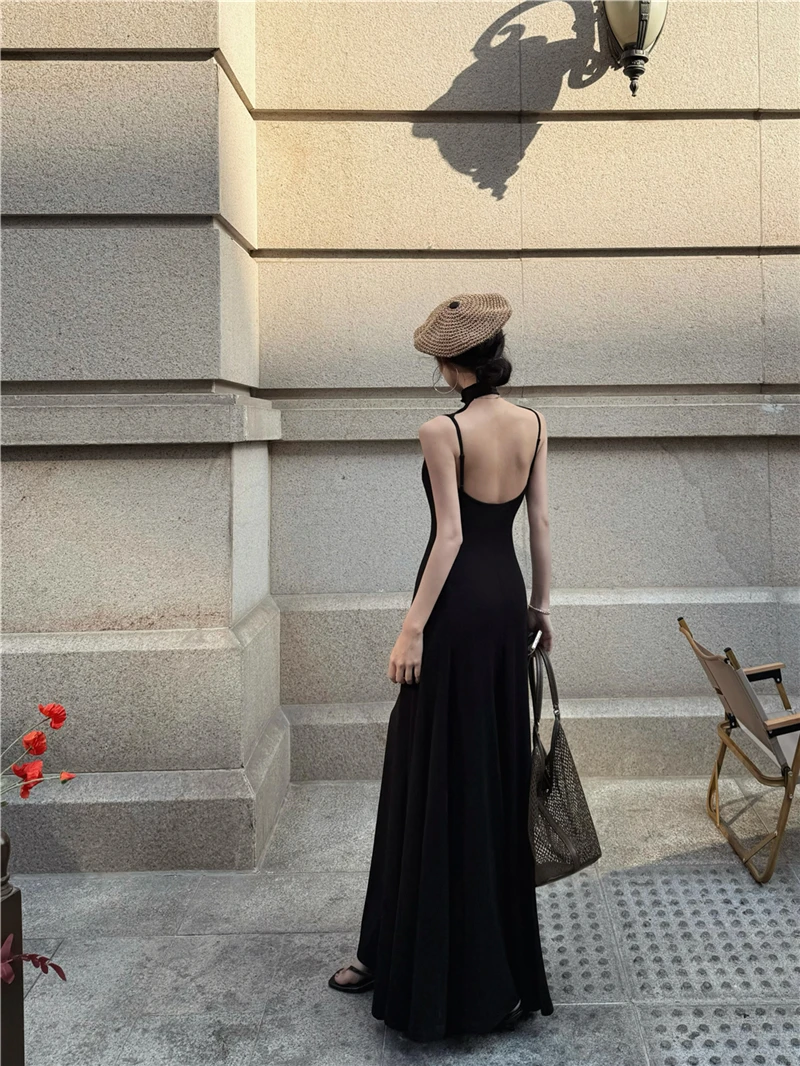 LBSFY -Women's Sexy Vintage Summer Backless Dresses Slit Fit Sleeveless Spaghetti Strap Halther Evening Dress Club Party Prom Chic New