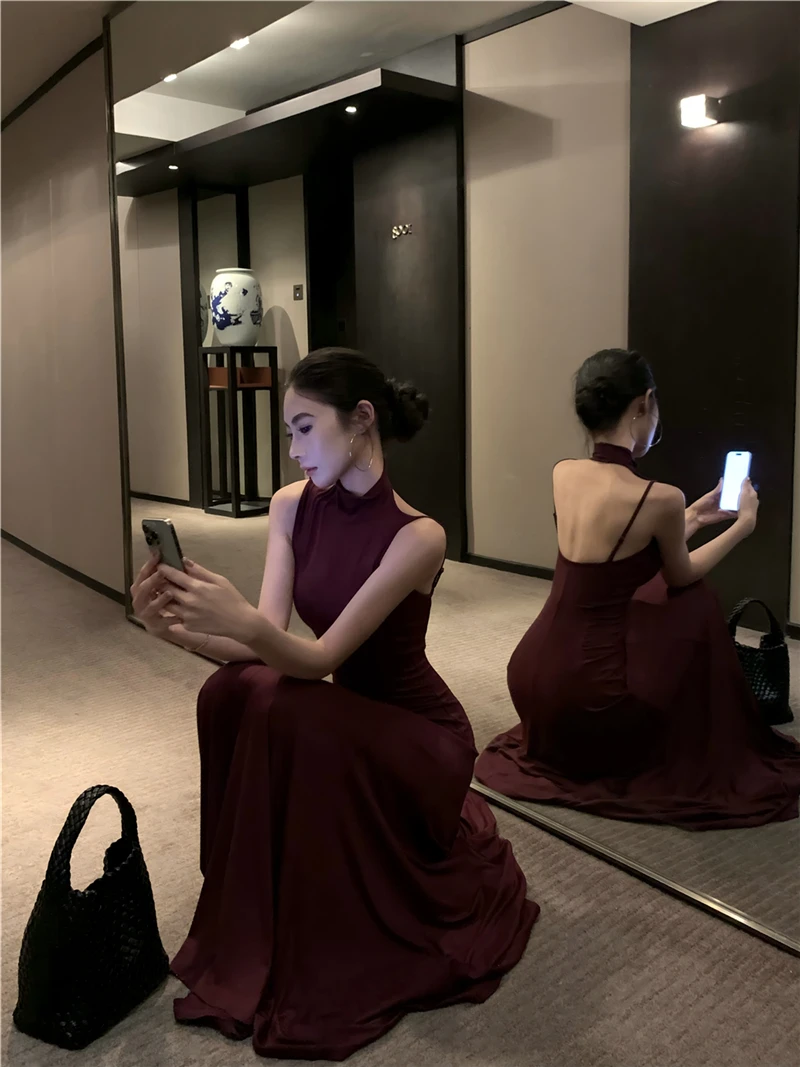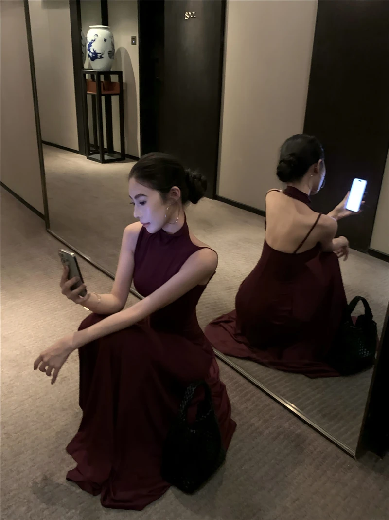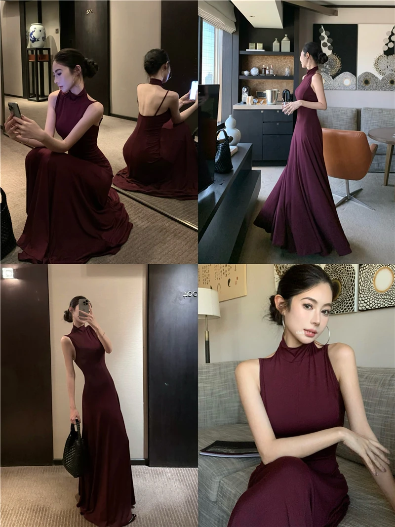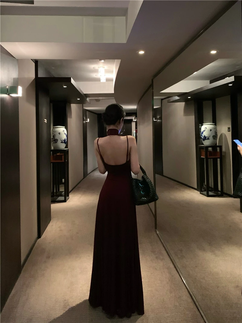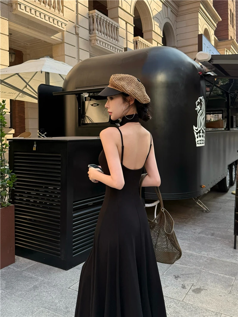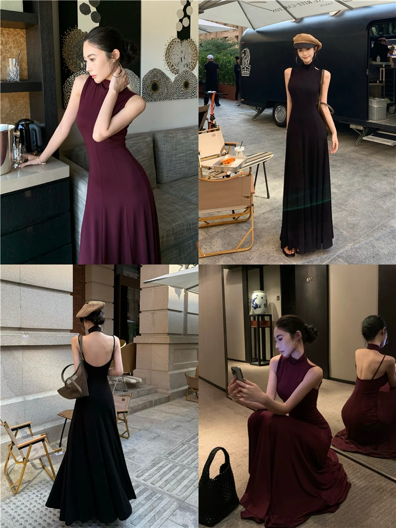 LBSFY -Women's Sexy Vintage Summer Backless Dresses Slit Fit Sleeveless Spaghetti Strap Halther Evening Dress Club Party Prom Chic New